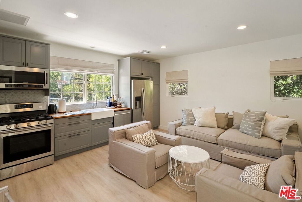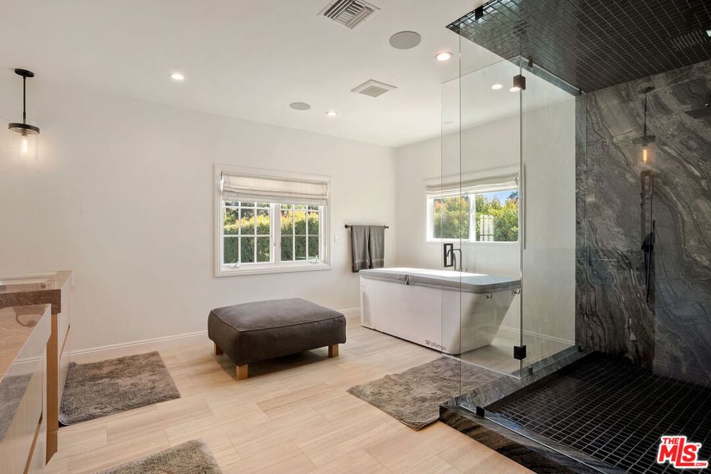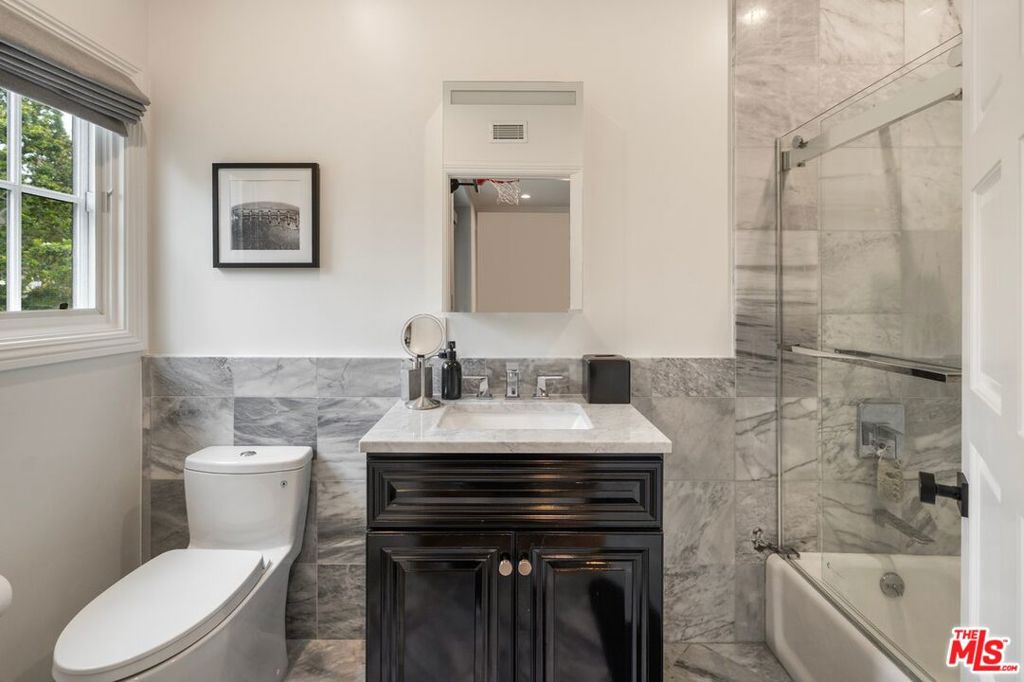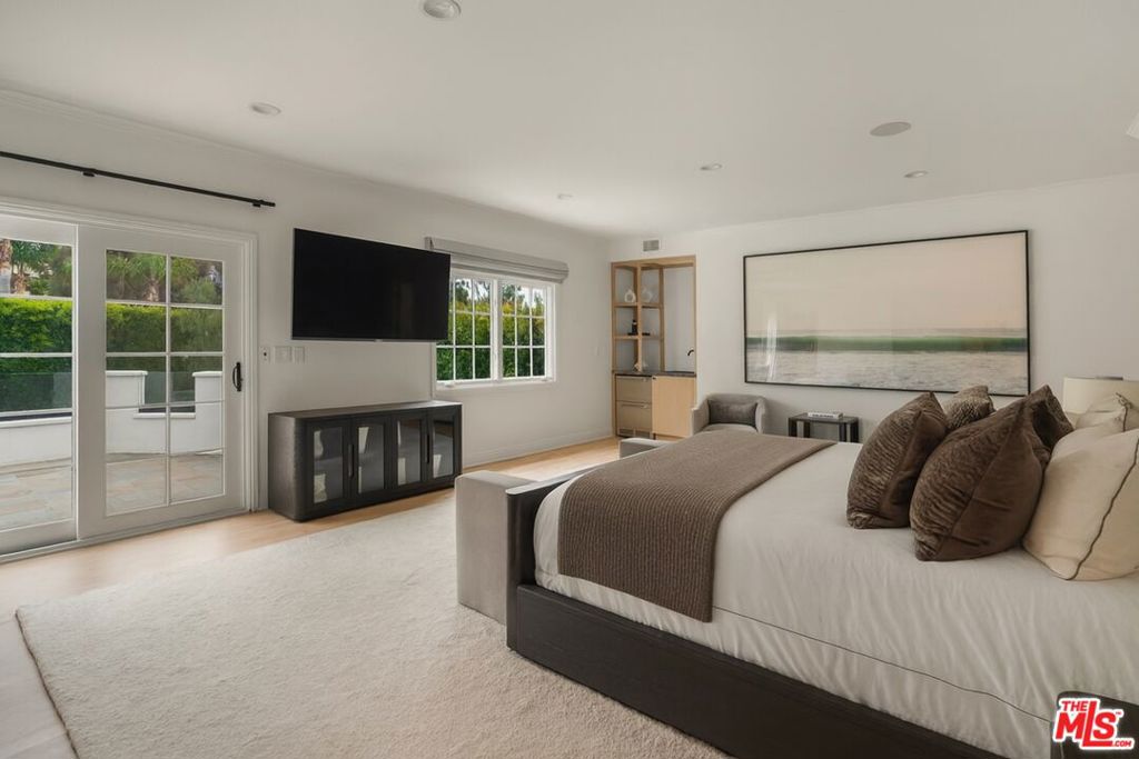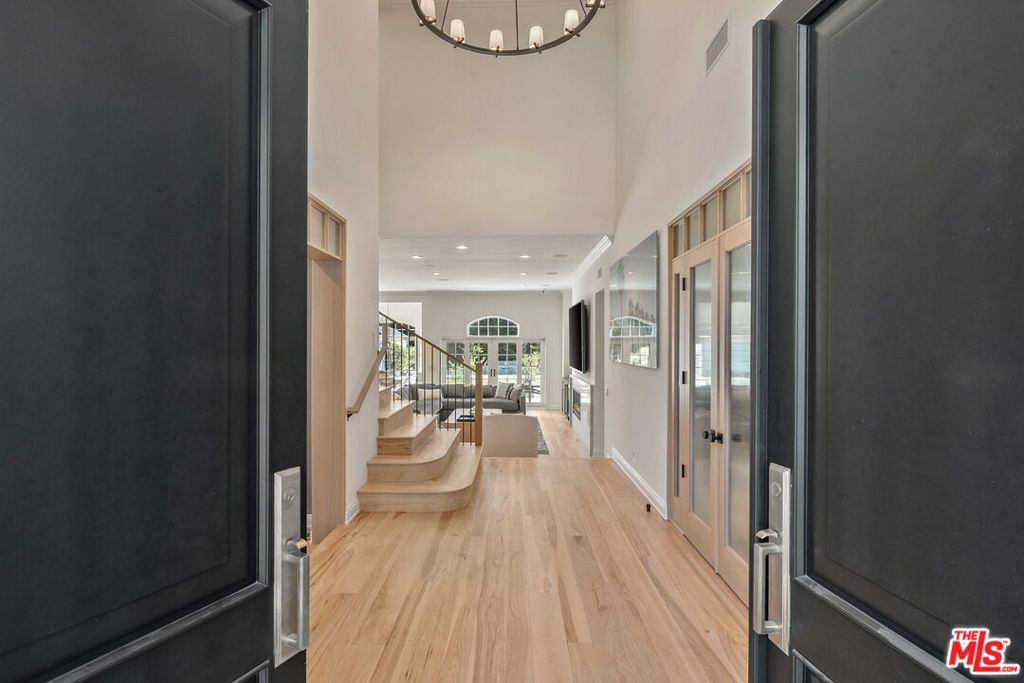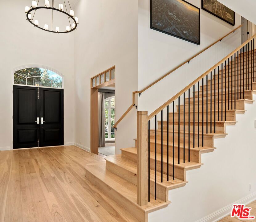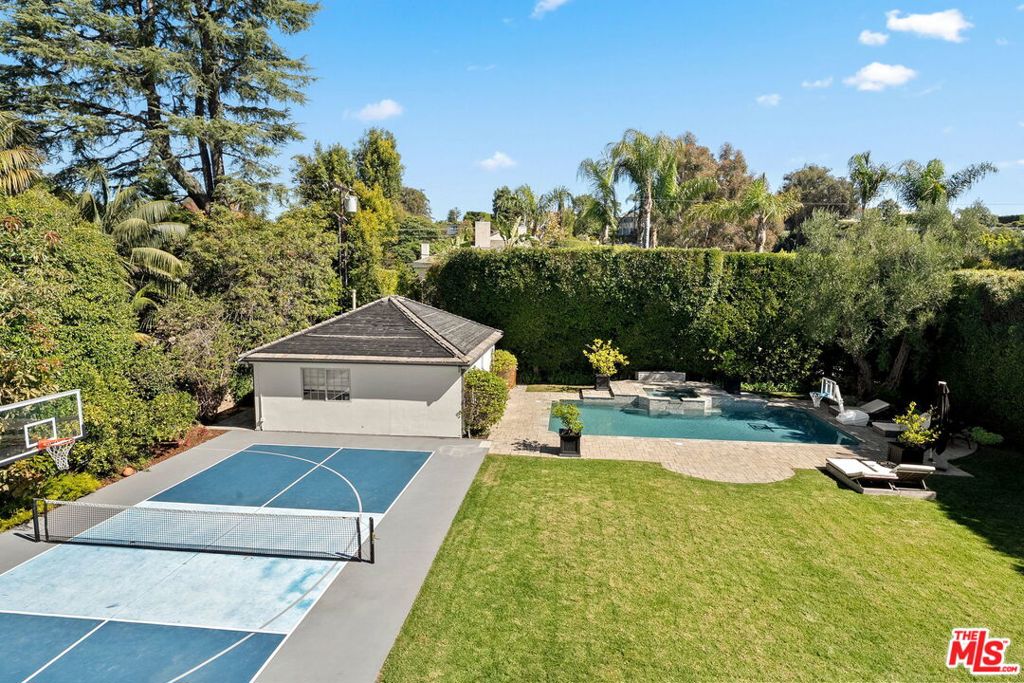 Located on one of Brentwood's most desirable streets, Homewood Road, this newly reimagined estate combines refined design with relaxed California living. Extensively renovated by the current owner, the residence offers approximately 6,800 sq. ft. of living space on an expansive 18,359 sq. ft. flat lot. A grand double-door entry opens to a light-filled foyer with soaring 23-ft ceilings, setting the tone for the home's bright and open layout. The main level features a formal dining room with garden views, a dedicated theater, and a stunning great room where a double-island chef's kitchen flows seamlessly to the family room and outdoors. The kitchen is outfitted with custom wood cabinetry, marble countertops, professional-grade appliances, and a walk-in pantry. A breakfast nook surrounded by windows overlooks the pool and gardens. Two spacious bedrooms and a full laundry room complete the main floor. Upstairs are four en-suite bedrooms, each with walk-in closets, including a luxurious primary suite with private sitting area, office, and dual walk-in closetsone currently used as a fitness studio. The resort-style backyard offers a sparkling pool and spa, multiple lounging areas, lush landscaping, and a generous lawn. Additional highlights include a private pickleball court and a fully permitted two-bedroom, one-bath guest house with its own laundry. Situated within the Kenter Canyon Elementary district and surrounded by Brentwood's finest estates, this exceptional property embodies timeless elegance, modern comfort, and an desirable place to call home.