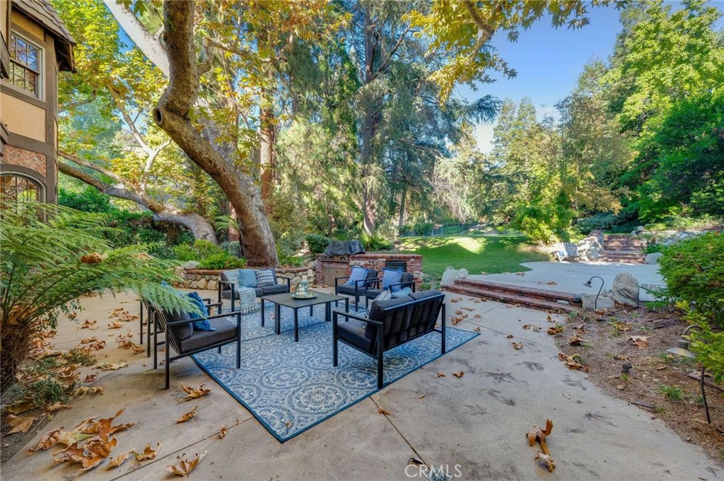 The home offers five spacious bedrooms, including an elegant primary suite with a cozy sitting area, fireplace, and access to an expansive balcony shared by most of the upstairs bedrooms. The luxurious en suite bathroom features a jetted soaking tub, separate tiled shower, double sinks with marble countertops, custom cabinetry, and a private vanity area—creating a serene retreat within the home. Outdoors, enjoy resort-style living with a sparkling pool and spa, outdoor BBQ island, lighted pathways, and expansive lawns for entertaining or play. A long, gated circular driveway leads to two separate two-car garages with direct access to the home, and a spacious walk-in attic located above the garage provides additional storage or future potential. Ideally located close to shopping, dining, entertainment, and freeways, and within an award-winning school district, this remarkable estate offers a rare combination of elegance, comfort, and privacy. A truly "one of a kind" property.