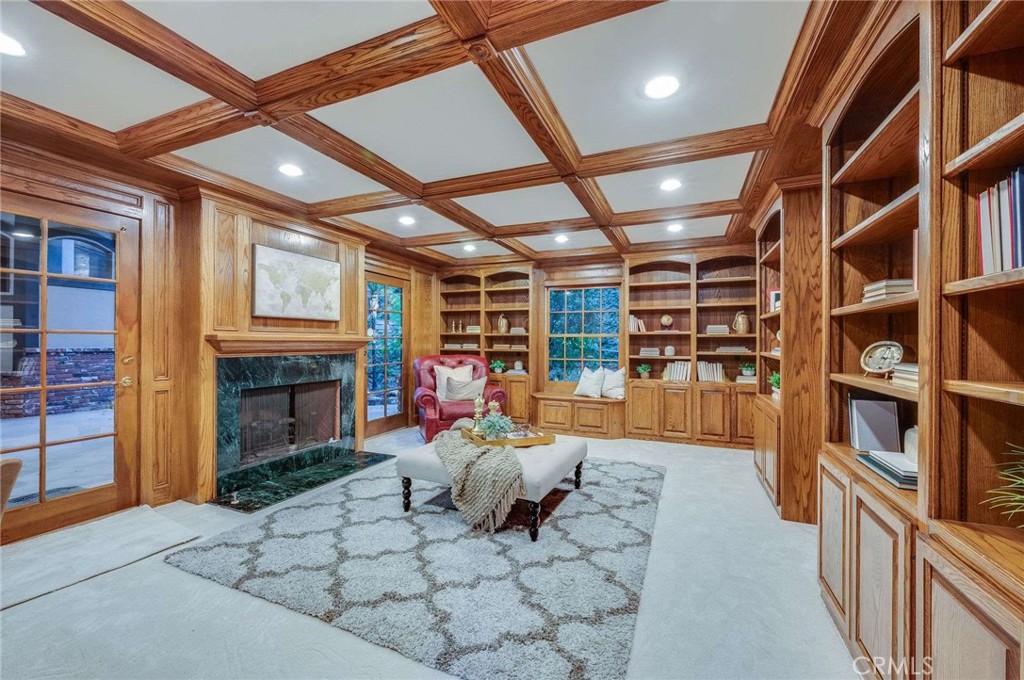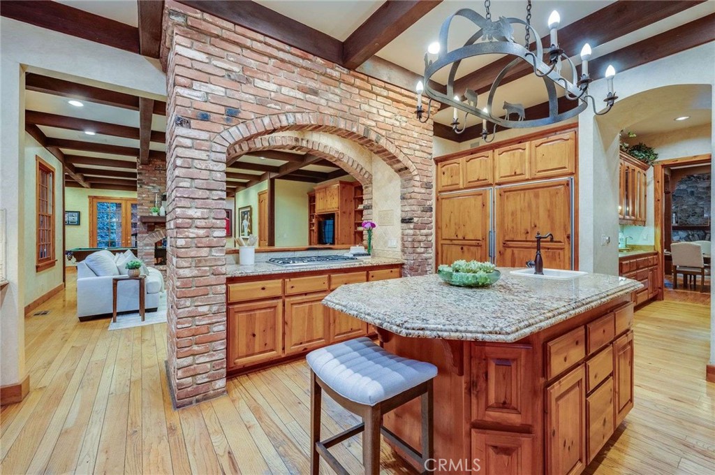 Beamed Ceilings, Wet Bar, Breakfast Bar, Built-in Features, Brick Walls, Balcony, Crown Molding, Central Vacuum, Coffered Ceiling(s), Separate/Formal Dining Room, Eat-in Kitchen, Granite Counters, High Ceilings, Open Floorplan, Pantry, Recessed Lighting, Storage, Sunken Living Room, Tile Counters, Bar, Wired for Sound