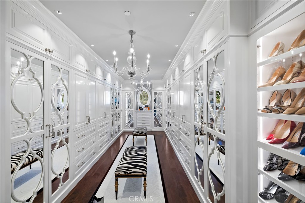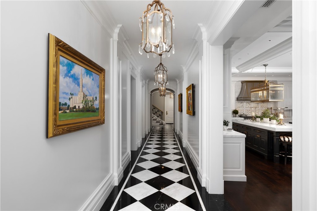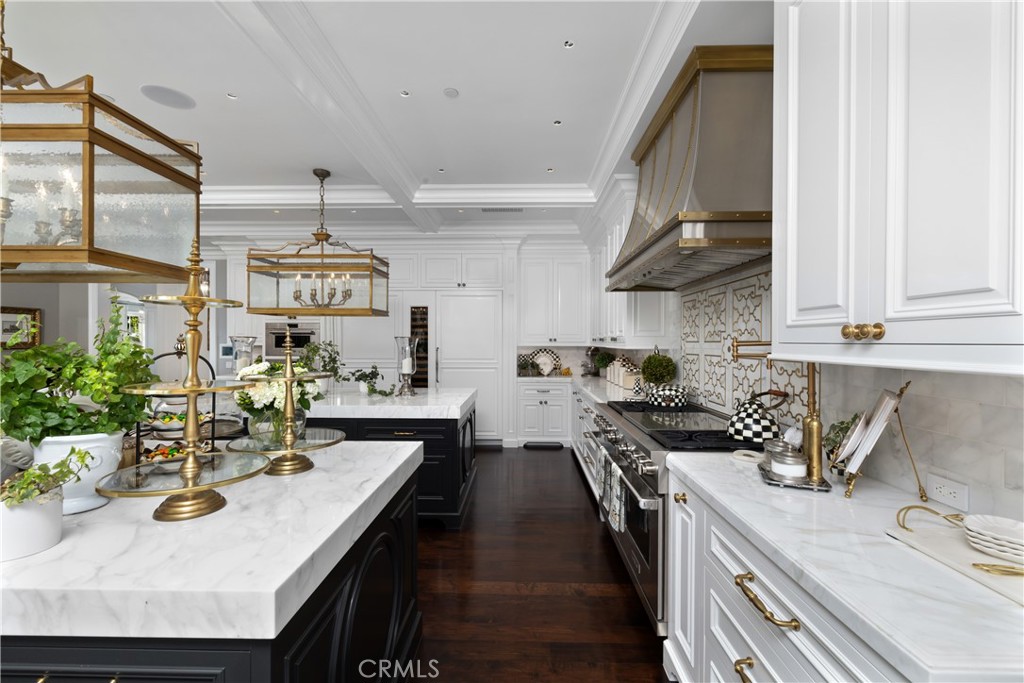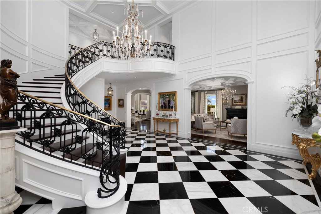 Set behind the gates of Glendora’s only 24-hour guard-gated community, this extraordinary custom estate embodies architectural mastery, timeless elegance, and modern innovation. Poised on an elevated lot with panoramic city-light views, the residence has been meticulously crafted with the finest materials, advanced technologies, and impeccable attention to detail. A grand motor court framed by solid iron gates and in-ground motors welcomes you to the home, where gas lanterns, copper flashings, dormers, and chimney caps highlight its refined exterior. The beautifully landscaped grounds showcase the owner’s pride of care, thoughtfully curated with limestone walkways, lush greenery, and elegant lighting that enhances the estate’s natural beauty both day and night. Inside, a striking floating staircase, walnut flooring, and intricate wood paneling anchor interiors adorned with rock crystal chandeliers, Calcutta marble finishes, and custom brass-accented iron railings. State-of-the-art systems include Lutron lighting, Control4 automation, hidden motorized shades, custom AC vents, and full-home insulation for year-round comfort. The gourmet kitchen is a culinary showpiece with dual marble islands, Wolf and Sub-Zero appliances, a dedicated wok kitchen, and extensive custom cabinetry with pull drawers throughout. Additional features include a private theater with acoustic sound boards, a custom sauna, and two finished attics offering versatile functional space. The primary suite serves as a tranquil sanctuary, featuring a fireplace sitting area, spa-like en suite bath, and a large balcony capturing sweeping city-light views. Its designer walk-in closet boasts custom cabinetry, built-in drawers, and a sparkling chandelier centerpiece. Outdoors, the property evokes the essence of a private resort with an infinity pool, rim-flow spa, deck jets, custom fire pit, and ceiling-mounted heaters for year-round enjoyment. Entertain under the covered pavilion with built-in BBQ, hidden hydronic TV, and expansive limestone patios framed by solid iron railings and ambient lighting. An attached four-car garage and an extended gated driveway provide ample parking for automobile enthusiasts. Located within the award-winning Glendora Unified School District, and close to scenic trails, parks, and fine dining, this home redefines luxury living in a secure, 24-hour guard-gated enclave where architectural integrity, smart-home innovation, and timeless beauty converge in perfect harmony