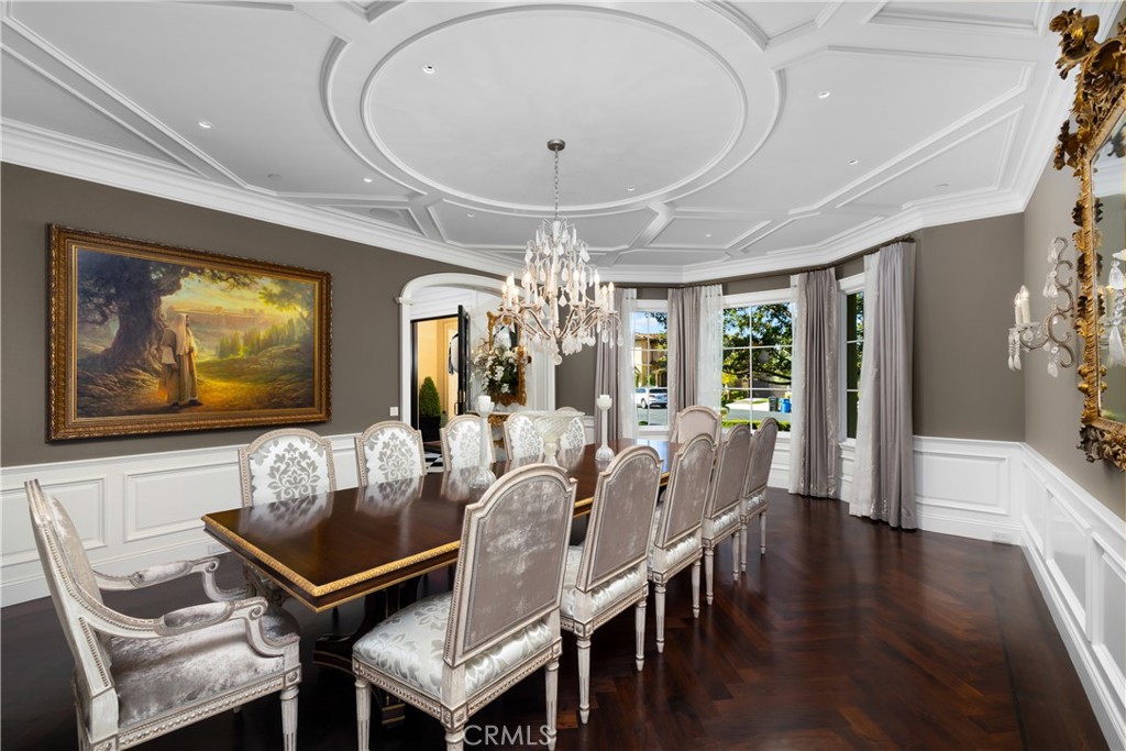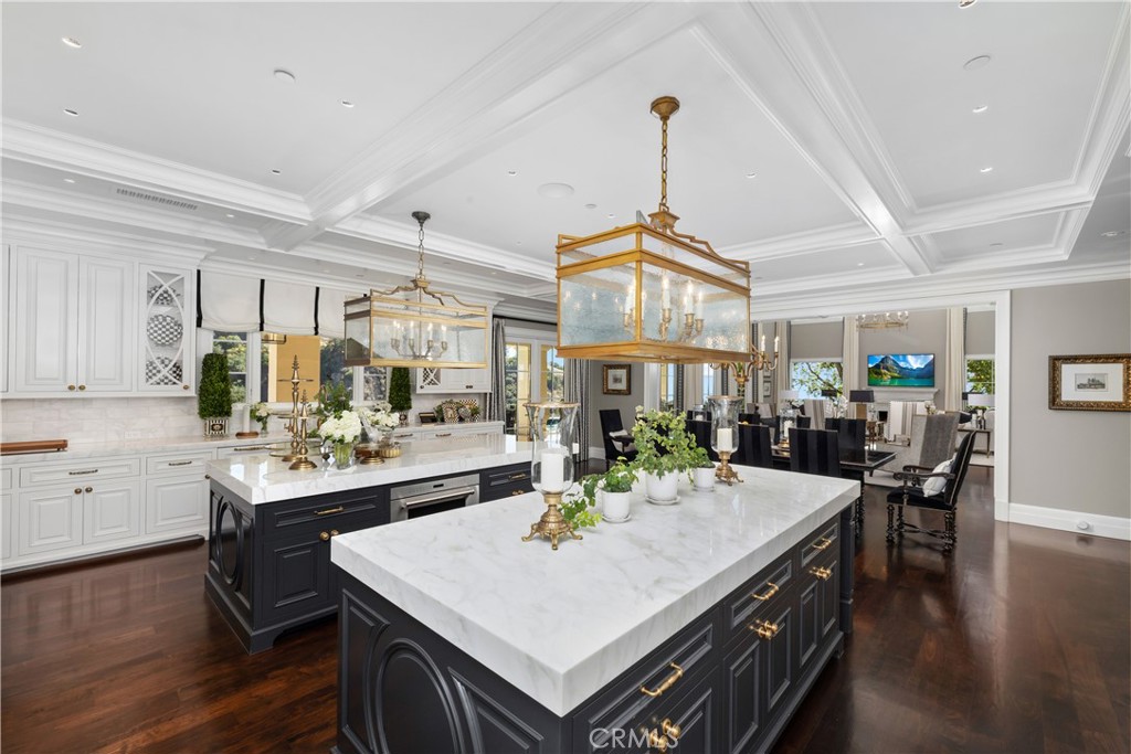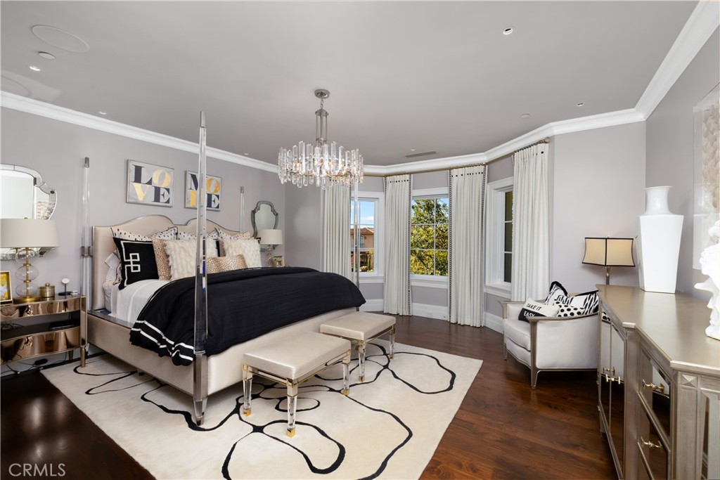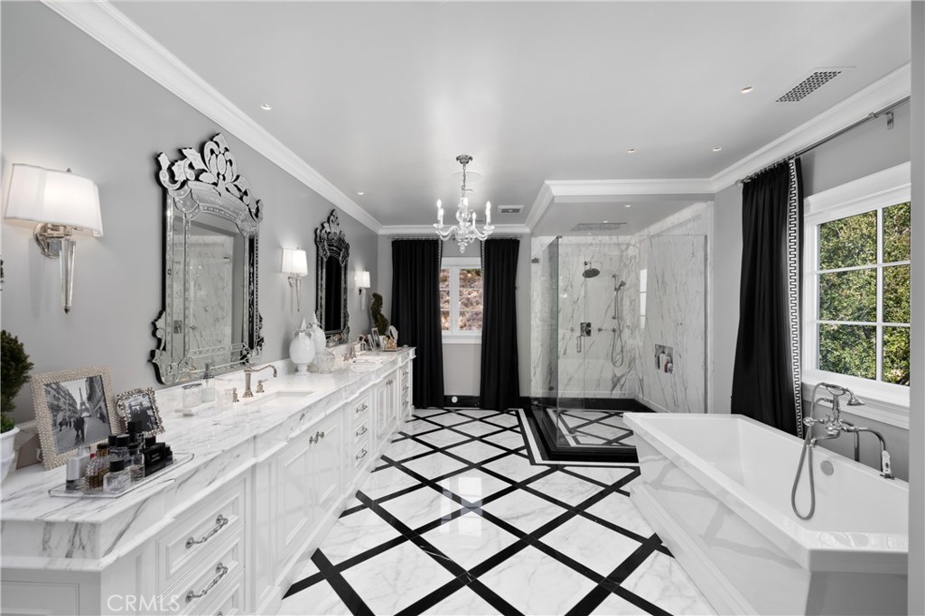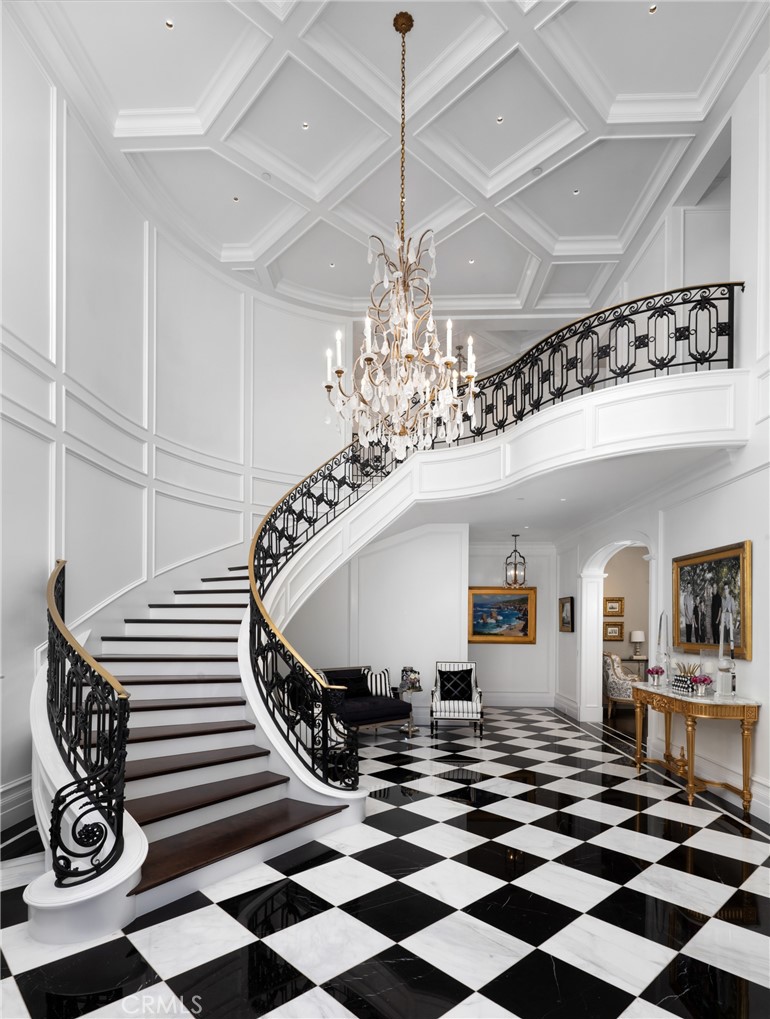 Set behind the gates of Glendora’s only 24-hour guard-gated community, this extraordinary custom estate embodies architectural mastery, timeless elegance, and modern innovation. Poised on an elevated lot with panoramic city-light views, the residence has been meticulously crafted with the finest materials, advanced technologies, and impeccable attention to detail. A grand motor court framed by solid iron gates and in-ground motors welcomes you to the home, where gas lanterns, copper flashings, dormers, and chimney caps highlight its refined exterior. The beautifully landscaped grounds showcase the owner’s pride of care, thoughtfully curated with limestone walkways, lush greenery, and elegant lighting that enhances the estate’s natural beauty both day and night. Inside, a striking floating staircase, walnut flooring, and intricate wood paneling anchor interiors adorned with rock crystal chandeliers, Calcutta marble finishes, and custom brass-accented iron railings. State-of-the-art systems include Lutron lighting, Control4 automation, hidden motorized shades, custom AC vents, and full-home insulation for year-round comfort. The gourmet kitchen is a culinary showpiece with dual marble islands, Wolf and Sub-Zero appliances, a dedicated wok kitchen, and extensive custom cabinetry with pull drawers throughout. Additional features include a private theater with acoustic sound boards, a custom sauna, and two finished attics offering versatile functional space. The primary suite serves as a tranquil sanctuary, featuring a fireplace sitting area, spa-like en suite bath, and a large balcony capturing sweeping city-light views. Its designer walk-in closet boasts custom cabinetry, built-in drawers, and a sparkling chandelier centerpiece. Outdoors, the property evokes the essence of a private resort with an infinity pool, rim-flow spa, deck jets, custom fire pit, and ceiling-mounted heaters for year-round enjoyment. Entertain under the covered pavilion with built-in BBQ, hidden hydronic TV, and expansive limestone patios framed by solid iron railings and ambient lighting. An attached four-car garage and an extended gated driveway provide ample parking for automobile enthusiasts. Located within the award-winning Glendora Unified School District, and close to scenic trails, parks, and fine dining, this home redefines luxury living in a secure, 24-hour guard-gated enclave where architectural integrity, smart-home innovation, and timeless beauty converge in perfect harmony
