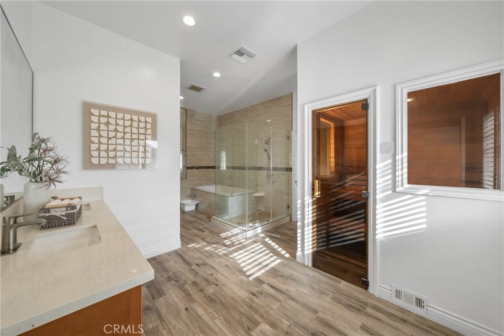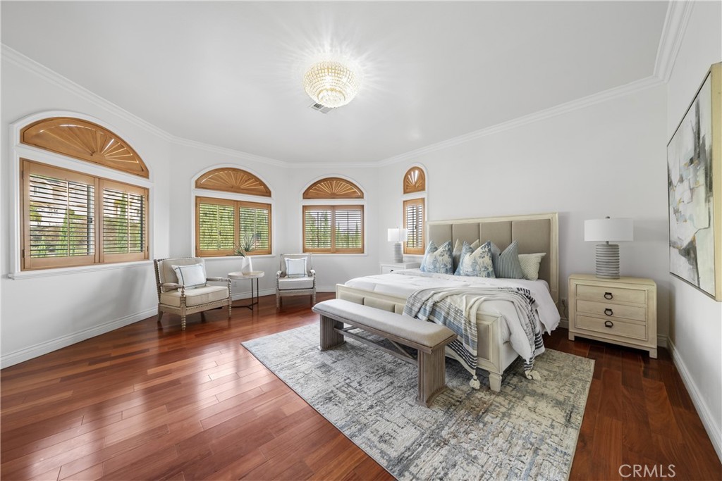 The primary suite defines indulgence, featuring a private sitting area, walk-in closet, romantic fireplace, and a spa-inspired bath retreat that rivals a five-star resort.