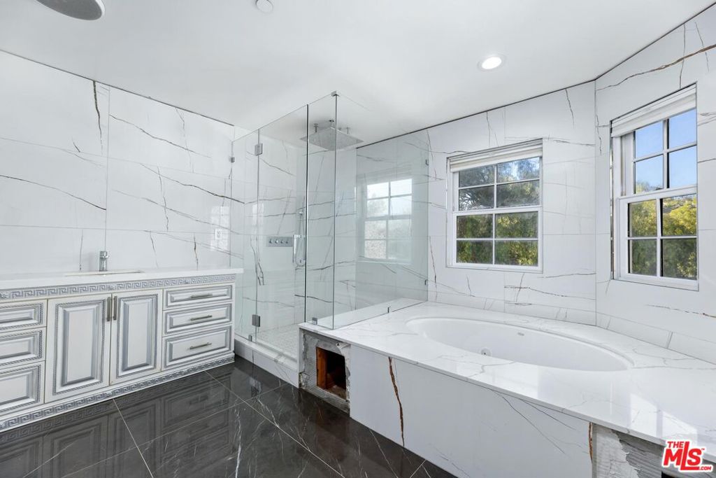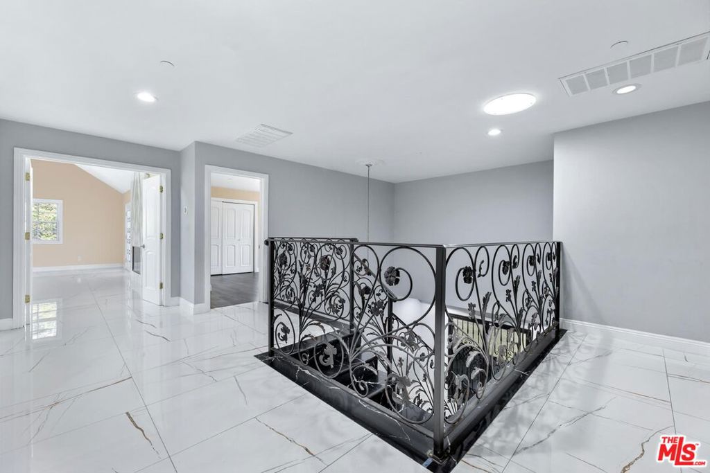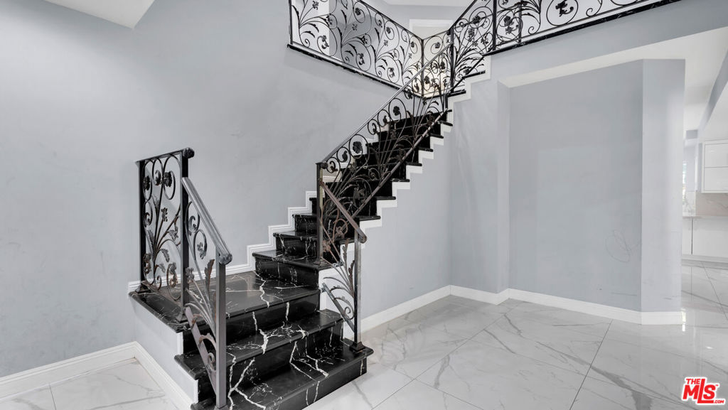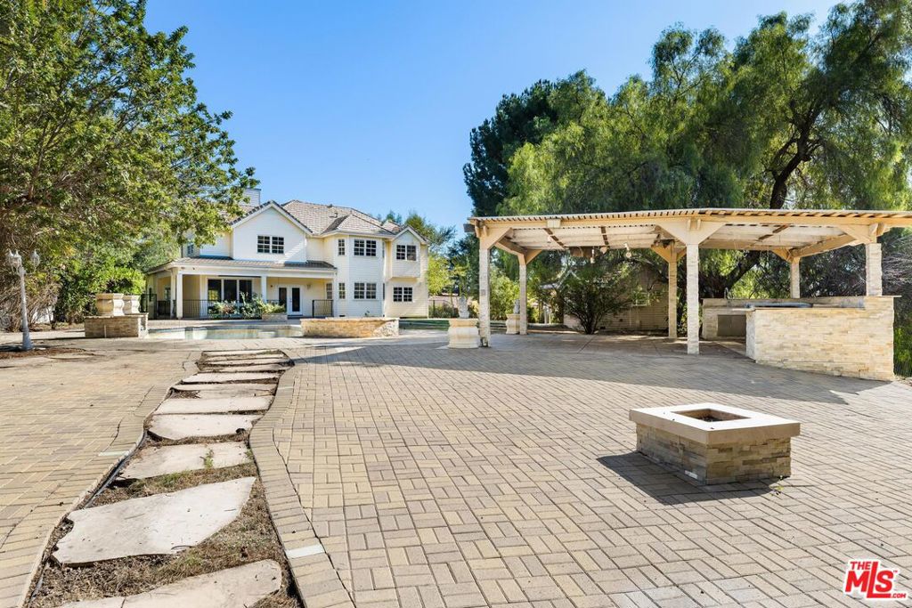 Located in highly sought-after North Granada Hills, this 2006 custom-built residence presents a rare opportunity for renovation whether you're restoring, updating, or renovating it entirely. Featuring 5-beds and 7-baths, this stately home comprises 3,450 SF, plus a studio-style guest house, and is situated on an expansive 26,000+/- SF Lot. A formal entry with soaring ceilings opens to generous living spaces with coffered ceilings, crown molding, custom wrought iron detail, and marble/hardwood floors throughout. Each bedroom features its own remodeled en-suite bathroom. Upstairs, the primary suite features a pitched ceiling, marble fireplace, balcony, and a large en-suite bath with soaking tub, dual vanities and a large walk-in shower. The impressive backyard is perfect for entertaining, featuring a large saltwater pool and spa, custom stone fire pits, gazebo with built-in BBQ, and sweeping views of the canyon. An incredible opportunity with endless potential in one of Granada Hills' most desirable neighborhoods - close to Zelzah Park, Aliso Canyon, and within the top-rated Granada Hills Charter School District. Property being sold as is, where is - Buyer to verify all information.