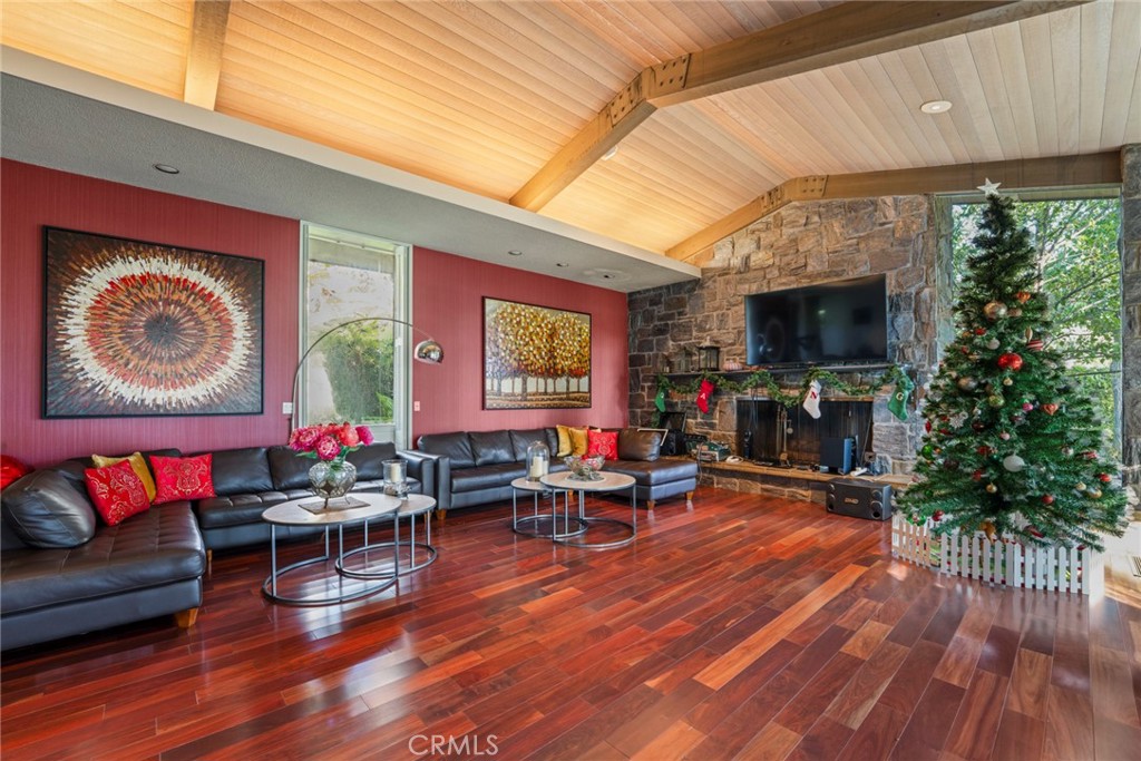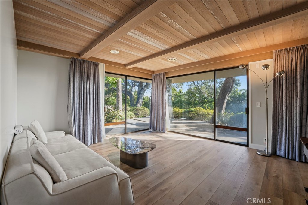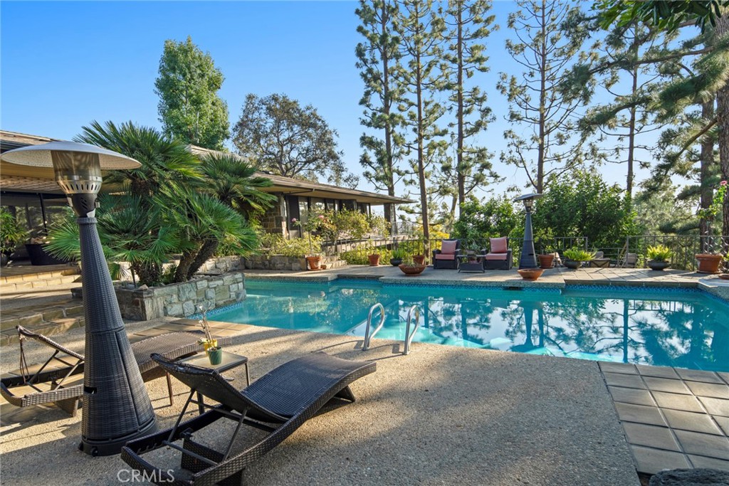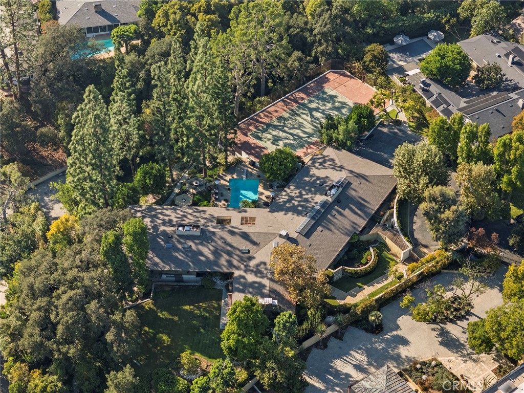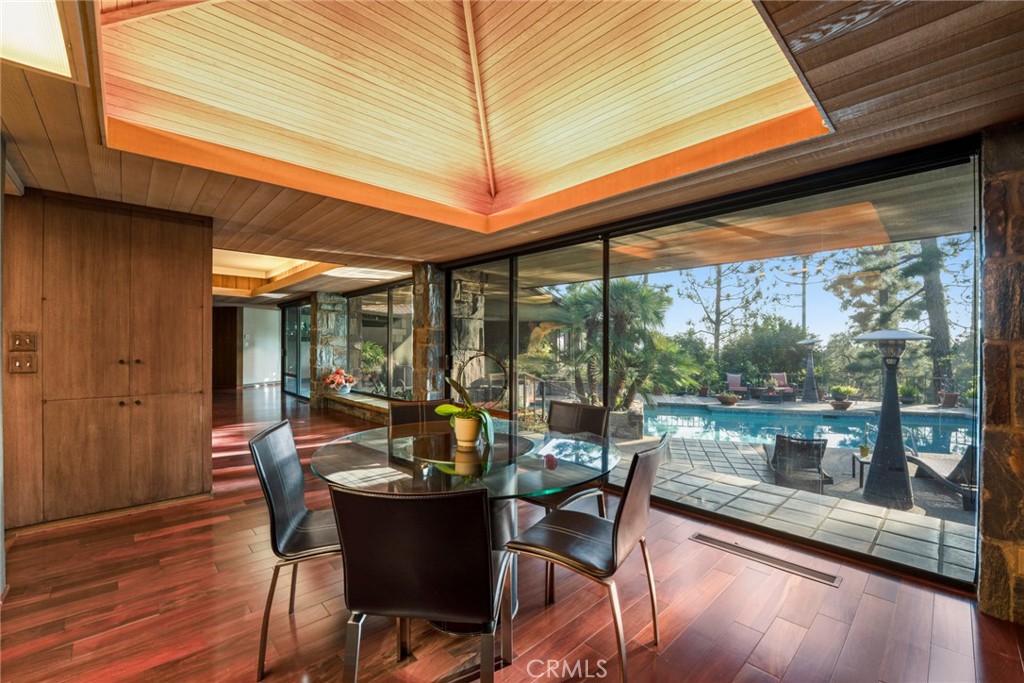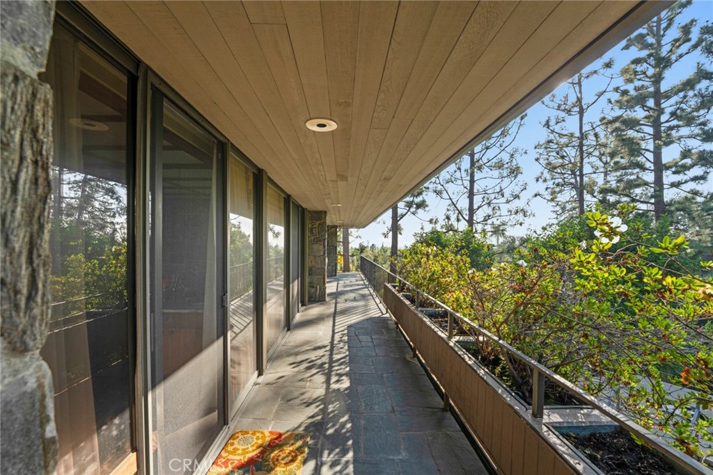 Perched on approximately 1.5 acres in the Langham Huntington enclave, this is a landmark Mid-Century Modern compound that celebrates glass, wood, and stone in harmony with sweeping garden and city-light vistas. Designed by noted architect Harold Zook, the residence showcases expansive window walls, crafted mahogany accents, and signature Bouquet Canyon stonework. An inviting foyer leads to voluminous living and dining spaces oriented to landscaped courtyards, while a catering-scale kitchen anchors a casual breakfast area and a generous family room with pool views. The private primary suite enjoys treetop panoramas, a sitting room, and dual dressing rooms/baths; four additional bedroom suites provide exceptional flexibility. Recent improvements by the current owner include a full remodel of the downstairs bedroom and new flooring throughout the home. Resort amenities span a sparkling pool, true north-south tennis court, and immersive gardens, complemented by skylights, dual-zone HVAC, security system, delivery reception area, potting shed, a four-car garage, and gated entry. A rare offering of scale, privacy, and pedigree in one of Pasadena’s most sought-after locations.