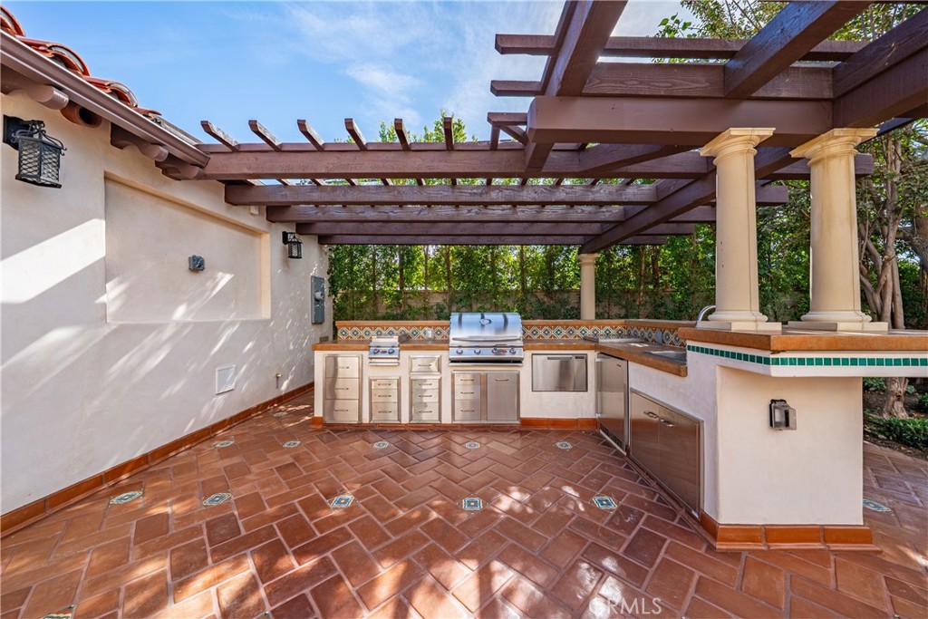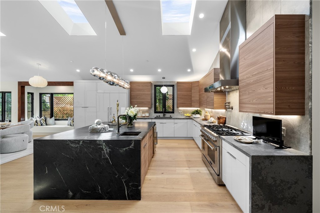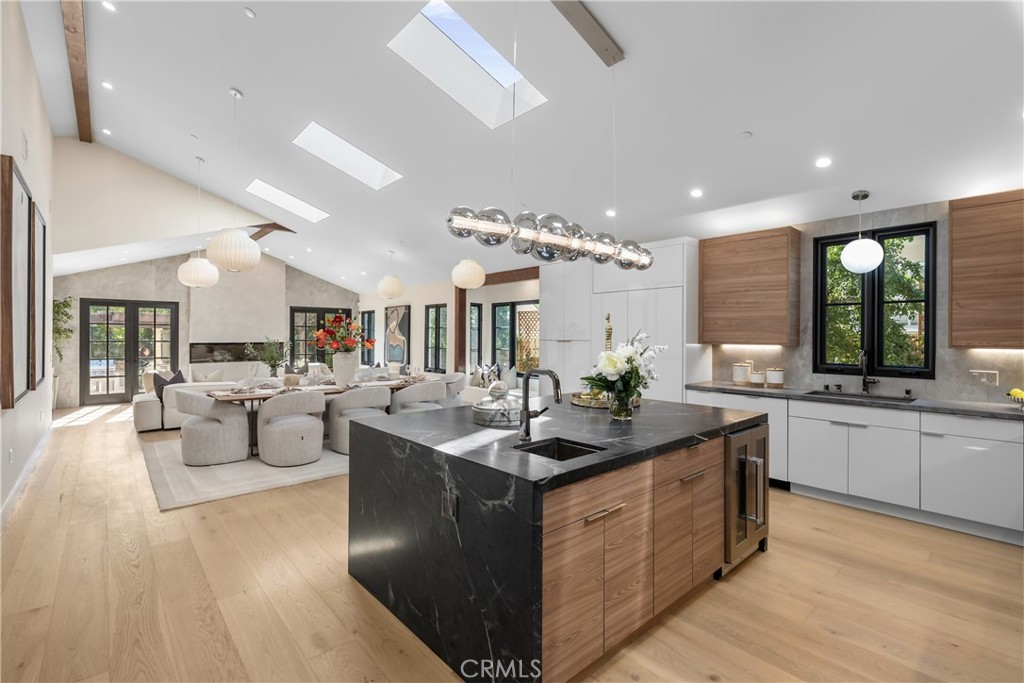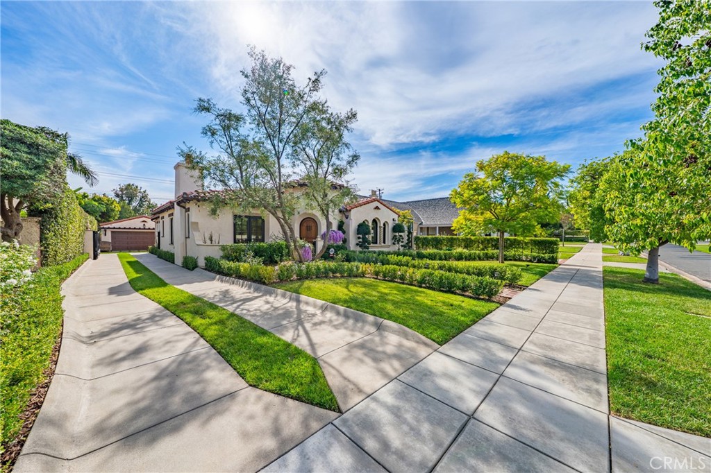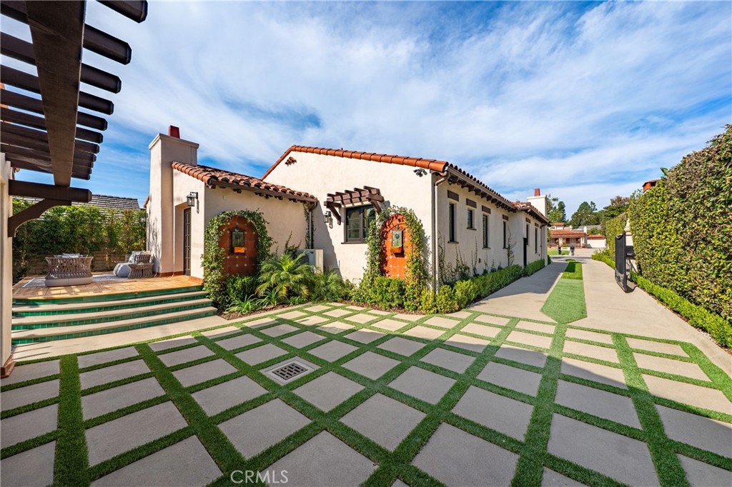 Meticulously and Artfully crafted, this rare totally Brand New single-story home in San Marino is an architectural gem inspired by Wallace Neff’s timeless Spanish Revival design. This north-facing estate blends classical elegance with modern sophistication and superior craftsmanship at every turn. A true rarity in one of Southern California’s most prestigious neighborhoods, this brand-new residence elevates luxury living with artistry and grace. Through the arched stone-and-wood entry, a grand foyer with 14-foot ceilings, a sculptural chandelier, and a statement marble fireplace sets a tone of refined splendor. A 6-foot-wide gallery hallway leads into open-concept living, dining, and family areas defined by graceful archways and floor-to-ceiling windows that flood the home with natural light. The great room, crowned by a magnificent skylight, serves as the luminous heart of the home — ideal for intimate gatherings and elegant entertaining. Two remote-controlled multifunctional electric fireplaces add romance and warmth. The chef’s kitchen is a masterpiece, featuring European custom cabinetry with touch-open mechanisms, a professional 60” Proline 8-burner range with double ovens and griddle, pot filler, Miele silent dishwasher, and Sub-Zero refrigerator integrated behind custom panels. The oversized center island with bar sink offers panoramic garden views. A serene study provides the perfect retreat, while the bedroom wing includes two spacious guest suites sharing a luxurious bath with imported stone and dual vanities. The primary suite is a private sanctuary with abundant natural light, a spa-inspired bath with designer stone, dual vanities, freestanding soaking tub, and a custom walk-in closet. Throughout the home, 8-foot solid-core doors, natural stone accent walls, and premium materials highlight meticulous craftsmanship. French doors lead to a romantic courtyard reminiscent of a European retreat, featuring lush plant walls, two water features, and an integrated outdoor media area. The landscaped grounds include a custom outdoor kitchen and a ten-person dining pavilion surrounded by flowering gardens and gentle breezes. Equipped with new solar panels, dual EV chargers, a modern alarm system, and high-resolution security cameras, this smart home offers sustainability and peace of mind. Close to San Marino High School, Trader Joe’s, and top local amenities, this One-of-A-Kind single-story masterpiece embodies luxury, light, and enduring legacy.