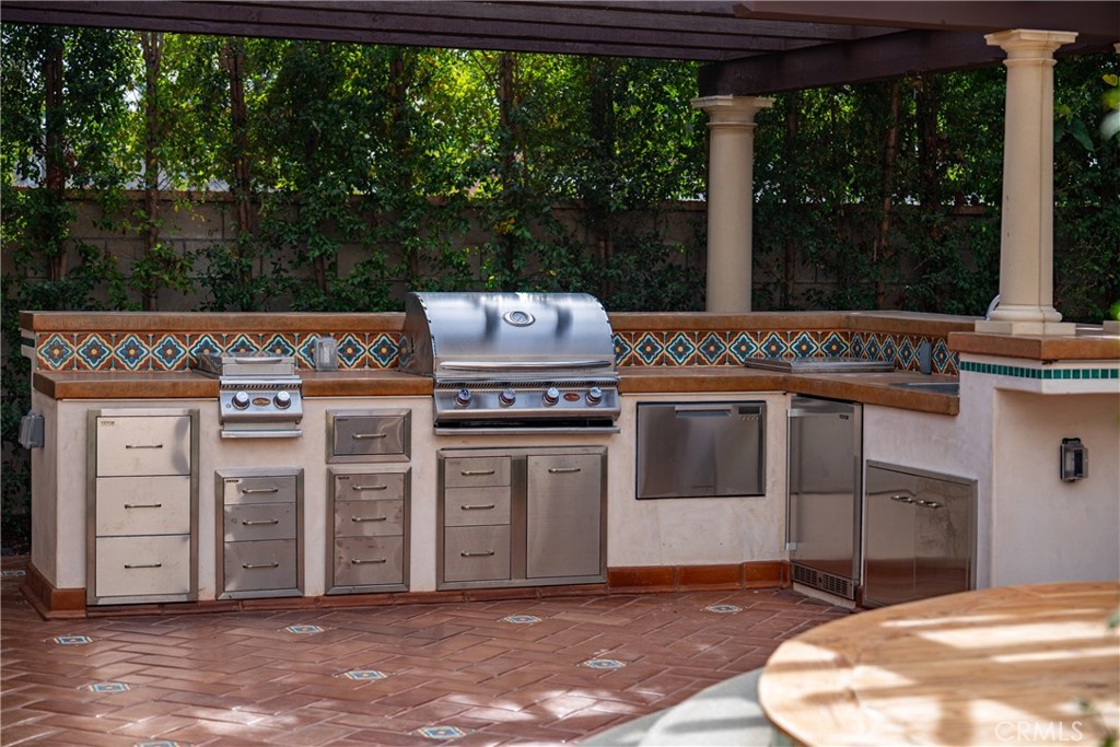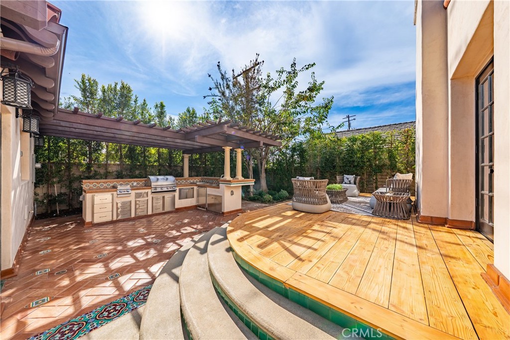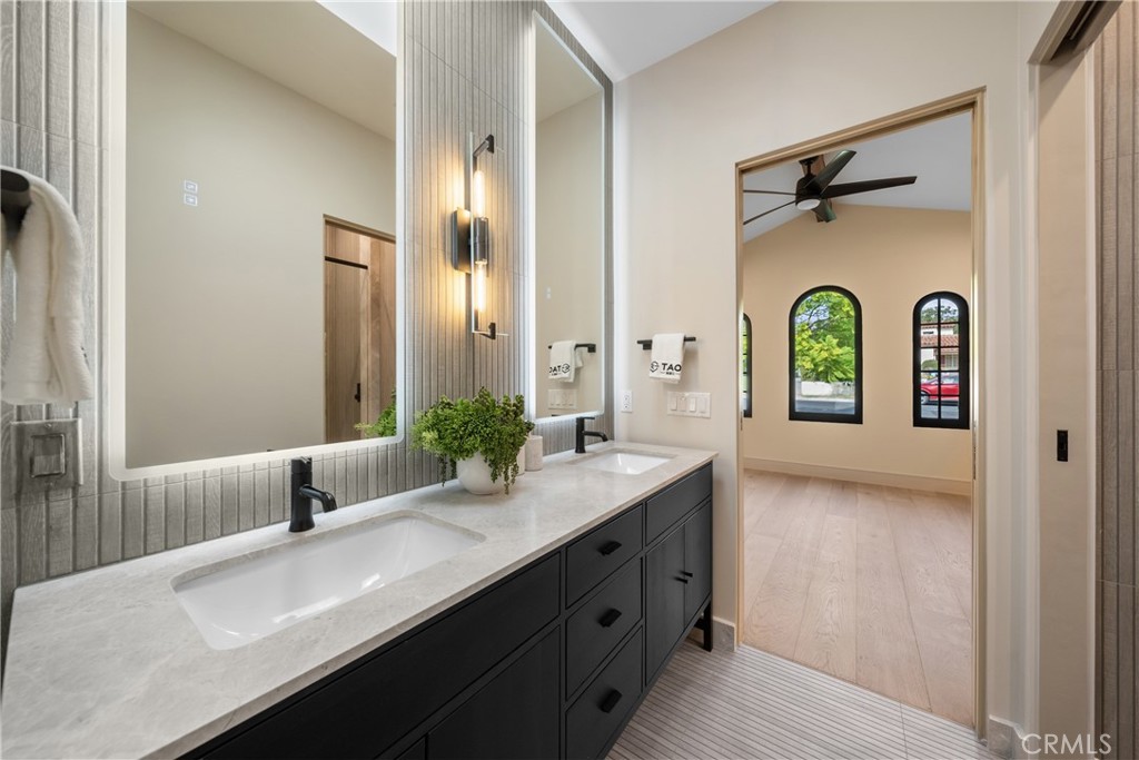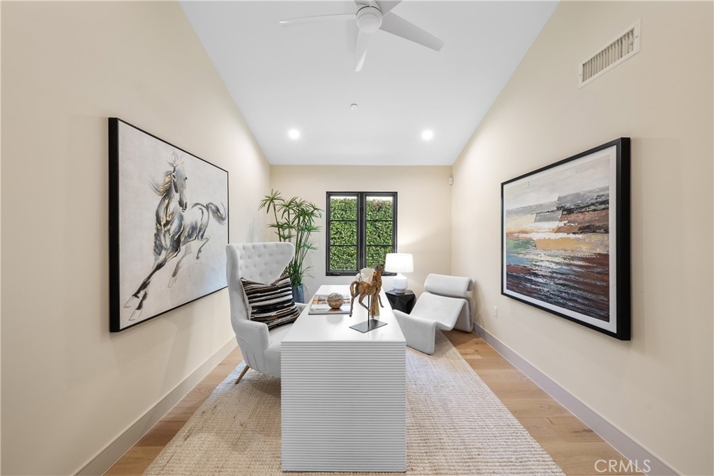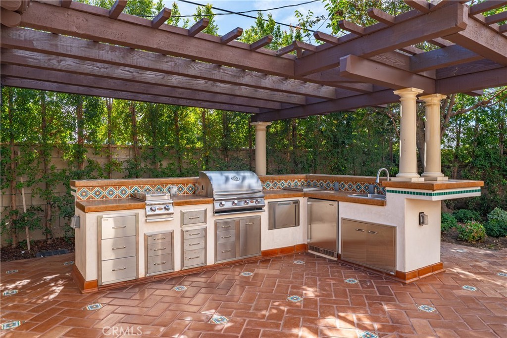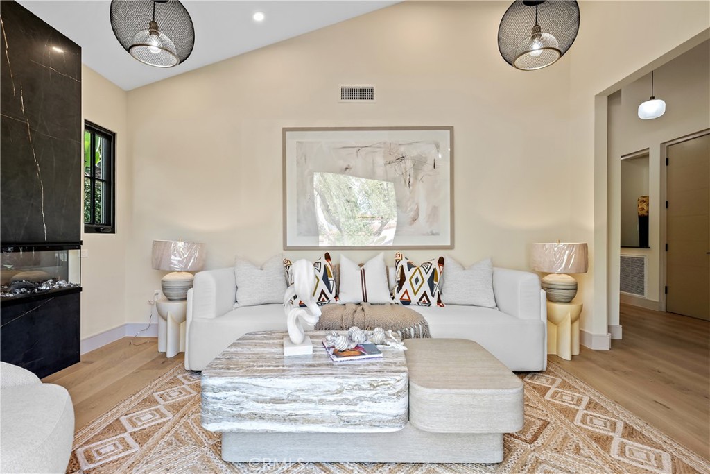 Meticulously and Artfully crafted, this rare totally Brand New single-story home in San Marino is an architectural gem inspired by Wallace Neff’s timeless Spanish Revival design. This north-facing estate blends classical elegance with modern sophistication and superior craftsmanship at every turn. A true rarity in one of Southern California’s most prestigious neighborhoods, this brand-new residence elevates luxury living with artistry and grace. Through the arched stone-and-wood entry, a grand foyer with 14-foot ceilings, a sculptural chandelier, and a statement marble fireplace sets a tone of refined splendor. A 6-foot-wide gallery hallway leads into open-concept living, dining, and family areas defined by graceful archways and floor-to-ceiling windows that flood the home with natural light. The great room, crowned by a magnificent skylight, serves as the luminous heart of the home — ideal for intimate gatherings and elegant entertaining. Two remote-controlled multifunctional electric fireplaces add romance and warmth. The chef’s kitchen is a masterpiece, featuring European custom cabinetry with touch-open mechanisms, a professional 60” Proline 8-burner range with double ovens and griddle, pot filler, Miele silent dishwasher, and Sub-Zero refrigerator integrated behind custom panels. The oversized center island with bar sink offers panoramic garden views. A serene study provides the perfect retreat, while the bedroom wing includes two spacious guest suites sharing a luxurious bath with imported stone and dual vanities. The primary suite is a private sanctuary with abundant natural light, a spa-inspired bath with designer stone, dual vanities, freestanding soaking tub, and a custom walk-in closet. Throughout the home, 8-foot solid-core doors, natural stone accent walls, and premium materials highlight meticulous craftsmanship. French doors lead to a romantic courtyard reminiscent of a European retreat, featuring lush plant walls, two water features, and an integrated outdoor media area. The landscaped grounds include a custom outdoor kitchen and a ten-person dining pavilion surrounded by flowering gardens and gentle breezes. Equipped with new solar panels, dual EV chargers, a modern alarm system, and high-resolution security cameras, this smart home offers sustainability and peace of mind. Close to San Marino High School, Trader Joe’s, and top local amenities, this One-of-A-Kind single-story masterpiece embodies luxury, light, and enduring legacy.