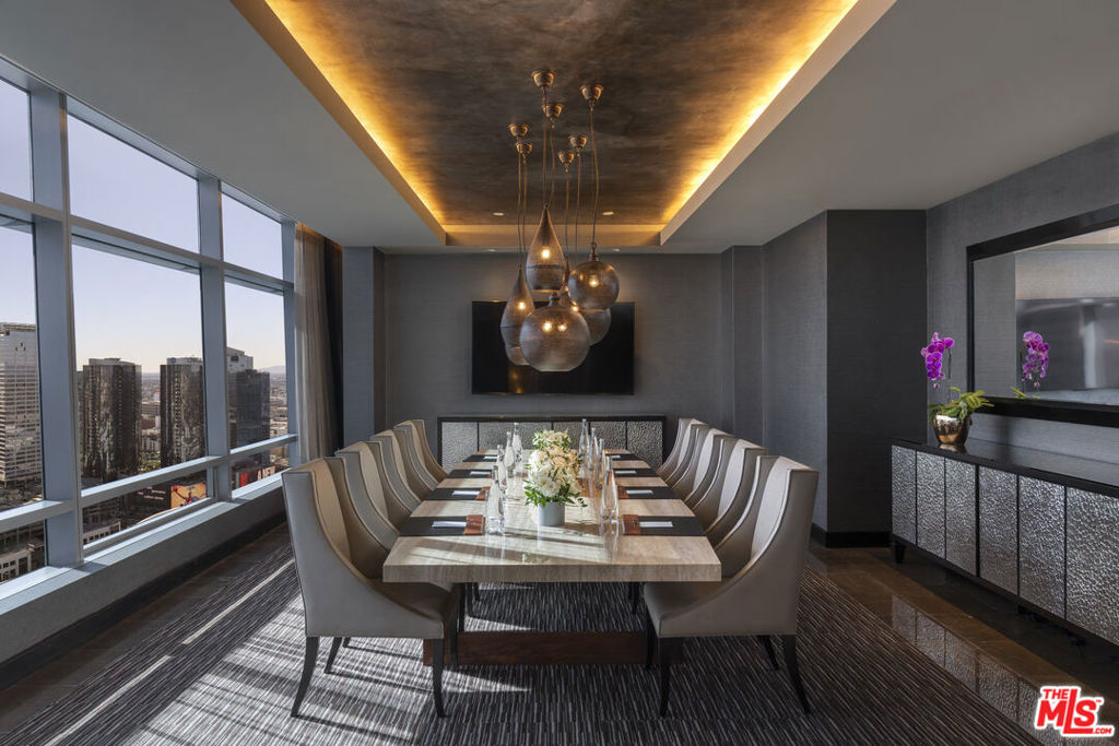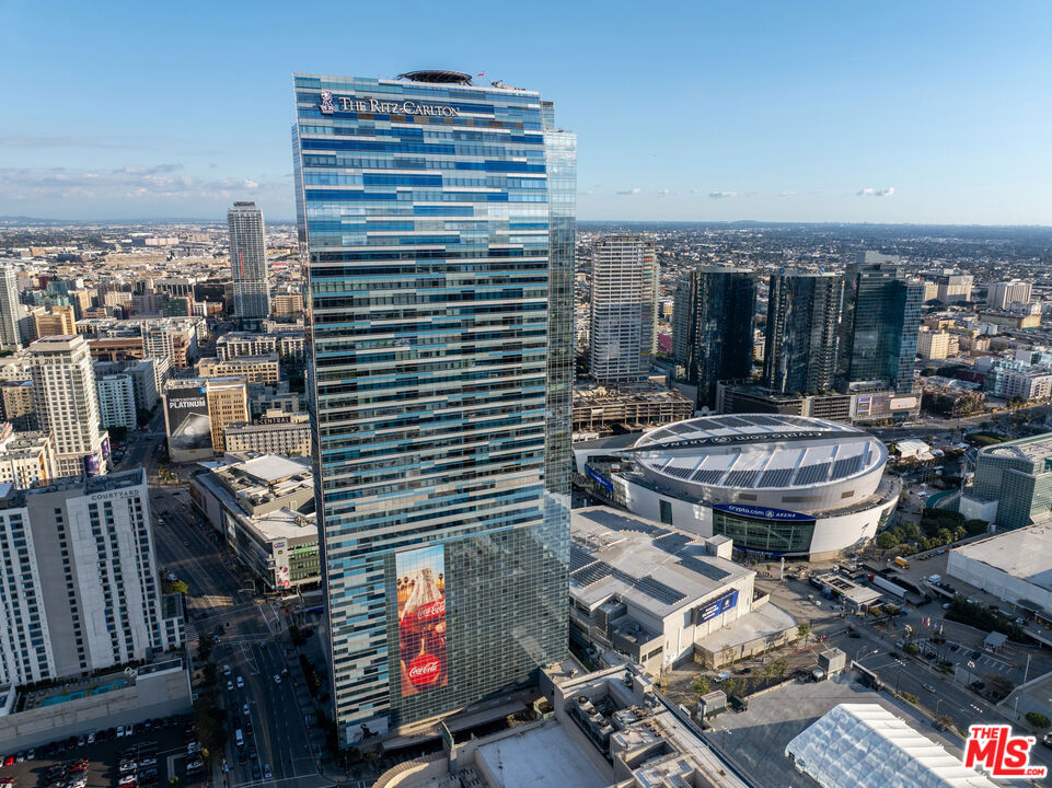 Experience five-star luxury living at The Ritz-Carlton Residences at LA Live. This stunning 47th floor unit is one of the largest square footages in the building and offers breathtaking 270-degree views. Walls of glass look out to the Hollywood Hills, Pacific Ocean and a breathtaking perspective of the downtown Los Angeles skyline. The formal entrance hall opens to the massive living & dining room with landmarks in every direction; The Hollywood Sign, Observatory and so much more...The Chef's kitchen adjoins the separate and expansive media room with two walls of glass. From there, an art filled gallery takes you to the Primary Suite with sitting area and views to the ocean. The spa-like bath offers double showers, rich stone surfaces and a large soaking tub. All this is completed by two large walk-in closets. Two additional suites with their own luxurious baths are at opposite sides of this spacious unit. White Glove Service includes The Ritz Rooftop Saltwater Pool & Bar, cabanas, valet parking, security, concierge, glass-top billiards, conference room, screening room & access to the hotel's room service. Situated in the heart of DTLA's vibrant South Park district, this premier location is just steps from Crypto.com Arena, LA Live, fine dining, entertainment, movie theatres and shopping. Enjoy an easy stroll to Lakers, Clippers and Kings games. A wonderful lifestyle of security, excitement and convenience. Includes a private storage unit.