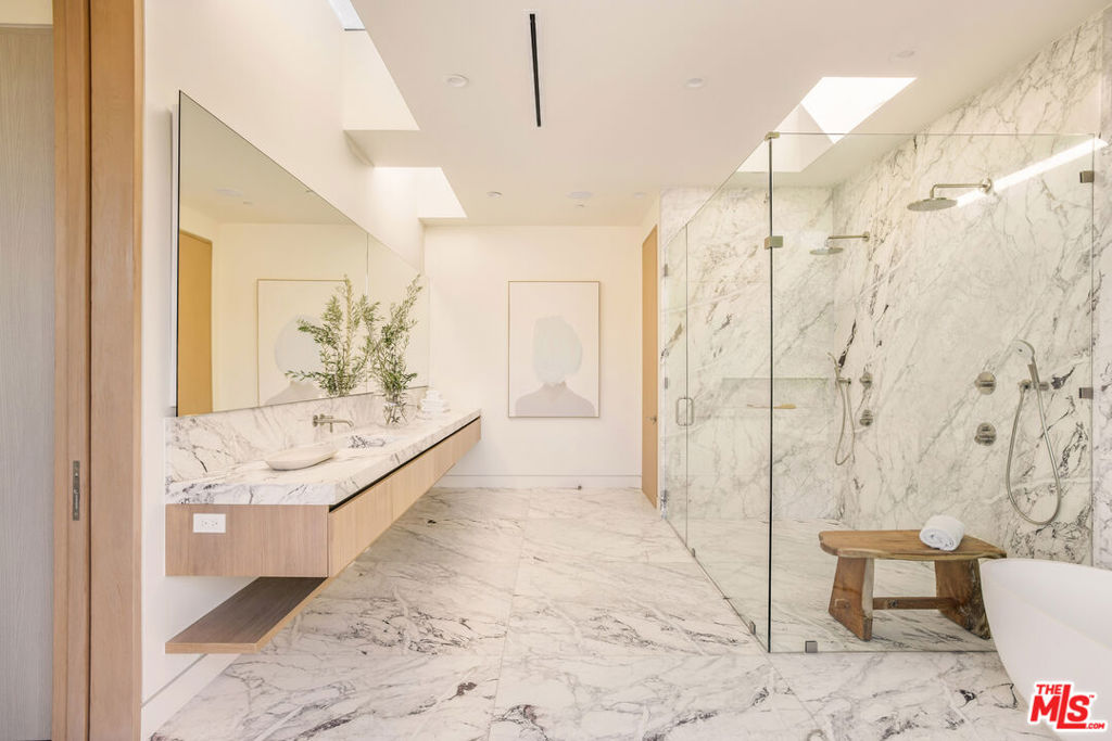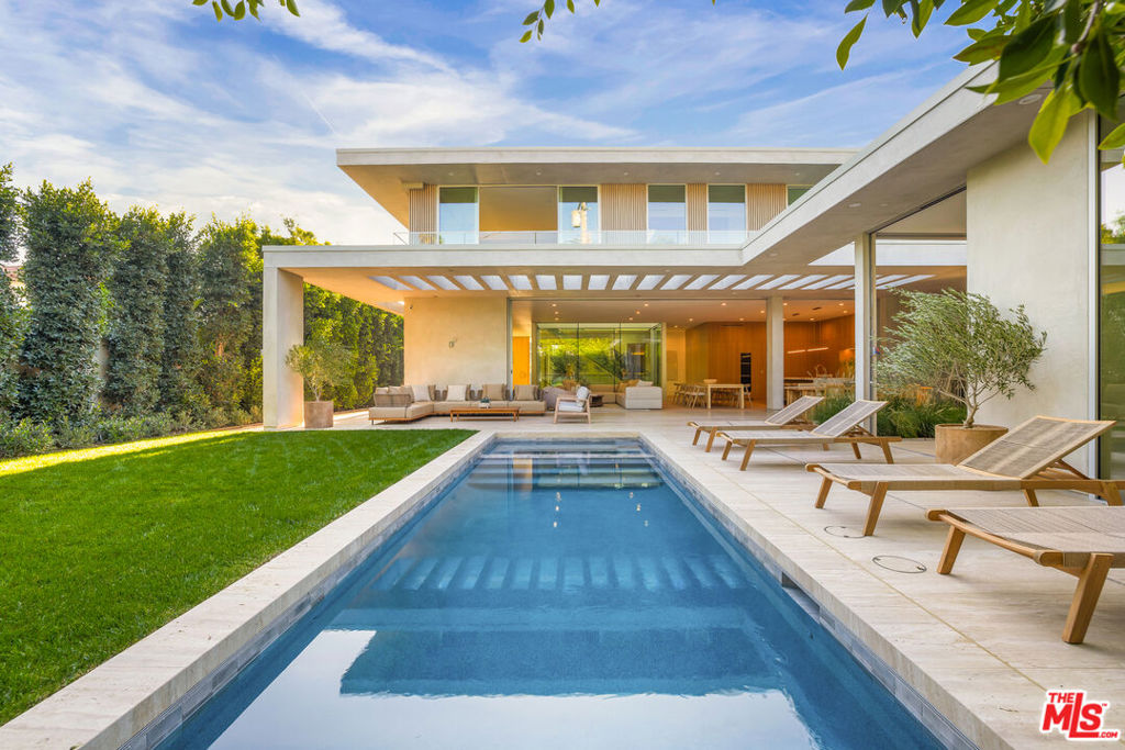A stunning brand new warm contemporary by Wylan James. Featuring an incredible blend of design and architecture located on one of Brentwood's most prime streets. A stunning light filled entry and living room with center courtyard & open floor plan are perfect for large scale entertaining or intimate gatherings. High ceilings, walls of glass and warm light woods throughout create a calming ambience. An Incredible kitchen, family/great room open to the private grassy garden and pool, office, theatre, gym/wellness area, and separate guest house. There is a large primary suite with huge closets and luxurious spa like baths. Incredible materials, craftsmanship and exacting details for the most discerning.