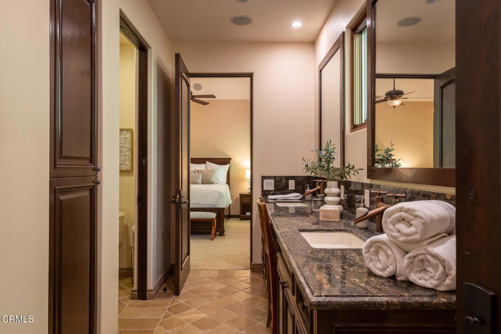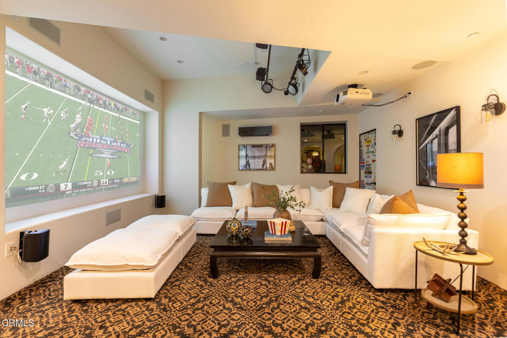 Trust me...you're going to want to see this house, it's unlike anything you've experienced. Masterfully designed and impeccably crafted, this custom-built Mediterranean villa offers more than 9,000 sq ft of luxurious indoor/outdoor living, filled with unique and creative features that invite you to linger a little longer. Enjoy warm, comfortable daily living while also having unlimited opportunities to entertain in your own personal resort. From the moment you enter, an impressive radius-designed foyer frames a first glimpse of the sweeping loggia and spectacular resort-style grounds beyond. The main level unfolds with an effortless sense of flow, each room connected with thoughtful intention and offering something new to discover. Seamless transitions between the kitchen, formal spaces, and outdoor areas make entertaining feel both natural and inspired. The main-level bedroom wing hosts four bedrooms, including the impressive primary suite, along with a handsome office with a library and study. A sweeping stairway leads to the show-stopping lower level, where you are transported to another realm and imagination truly comes to life. Beyond arched doorways, an immersive world of gathering, play, escape, and entertainment reveals itself, inviting experiences that surprise even the most seasoned host. It feels like a movie set, yet functions as the ultimate personal retreat for all ages. Outside, the backyard oasis continues the story of wonder and retreat. Accessible from nearly every major room, this outdoor haven is designed for connection, relaxation, and fun. Romantically lit cabanas, multiple outdoor kitchens, and a shimmering pool anchor the space, while lush greenery, an elevated spa, and numerous gathering areas evoke the essence of a private resort. Situated at the end of the cul-de-sac on one of La Canada's most cherished streets in the charming PCY neighborhood, this resort-style estate blends luxury, comfort, entertainment, and lifestyle into one extraordinary offering. This is not just a home, it's a destination.