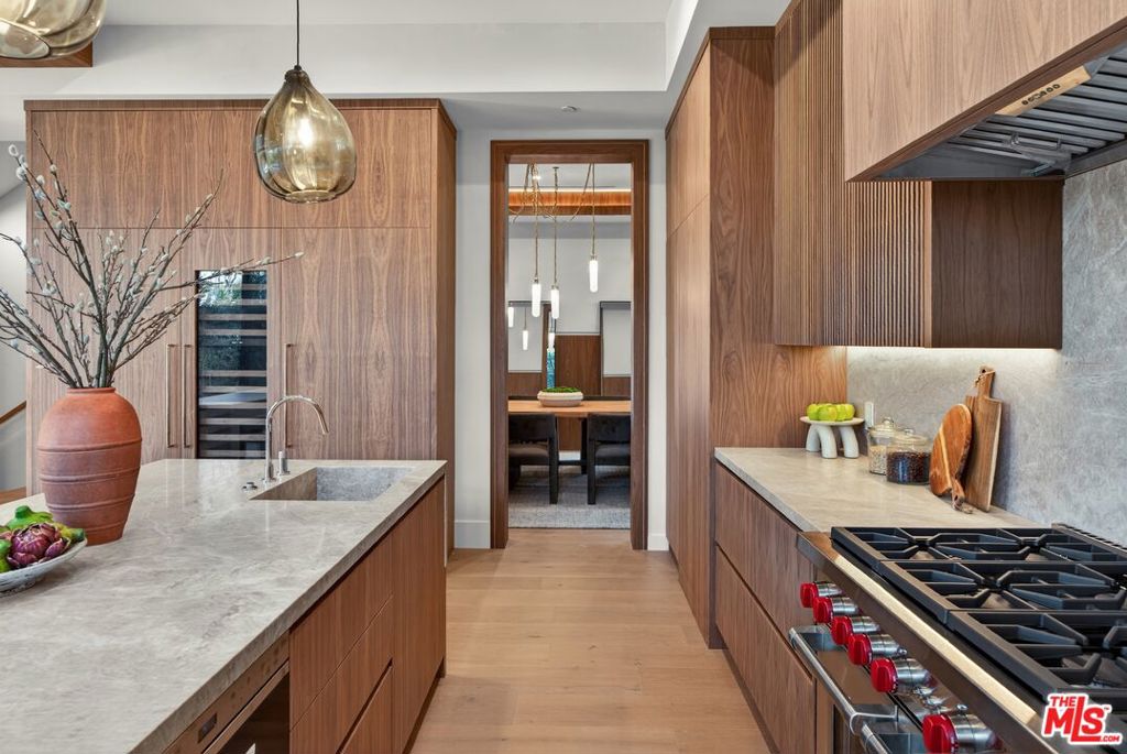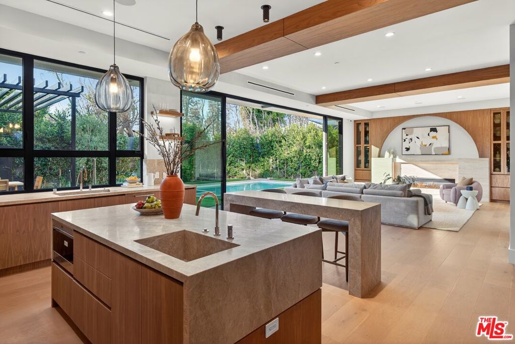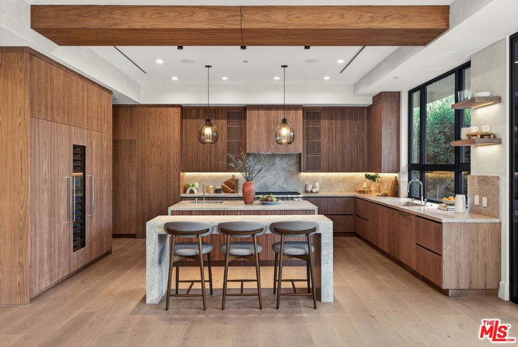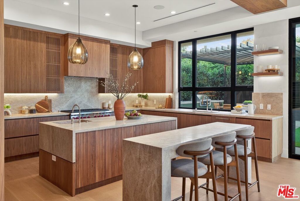 Discover refined coastal living in this newly built architectural estate in the coveted Huntington Palisades. This three-level modern masterpiece offers 7 bedrooms, 9 bathrooms, and over 8,000 sq ft of thoughtfully designed living space, blending timeless materials with cutting-edge convenience.A signature design element is the home's intentional progression of rich walnut and warm oak: bold walnut millwork anchors the main level, while the upper and lower floors transition to softly grained oak, creating a cohesive, elevated aesthetic throughout. Limewash and Roman clay walls, soaring ceilings, and expansive openings set a warm, sophisticated tone from the moment you enter. Custom walnut and white oak cabinetry and paneling, paired with a modern mix of porcelain and glazed ceramic tile, further elevate the home's refined material palette.The custom chef's kitchen is the heart of the home, featuring a Sub-Zero/Wolf gourmet suite of appliances, bespoke cabinetry, an oversized island, and Taj Mahal stone slabs. An extra-large pantry with concealed secondary appliances supports seamless entertaining. The kitchen flows directly into the grand dining area and expansive family room, where a sleek travertine-clad fireplace and oversized sliding doors open to the pool, spa, and outdoor lounge for true indoor/outdoor living.The lower level is designed for entertaining and wellness, showcasing a private movie theater, an Emperador marble clad built-in bar, and a fully equipped gym with steam room. Large sliding doors extend this level to an additional outdoor area, creating a resort-like experience. Plumbing fixtures throughout include selections from Brizo, Watermark, Gessi, Toto, and Mr. Steam, blending function with luxurious craftsmanship.Upstairs, generously scaled bedroom suites provide comfort and privacy, each with curated finishes and luxurious bathrooms. The serene primary retreat offers a spa-like bath and custom wardrobe, completing the sense of everyday escape. Additional amenities include an elevator serving all three levels, a 3-car garage, and smart-home integrations. The grounds are anchored by an extraordinary 150-year-old heritage tree, a rare natural centerpiece that adds history and character to this modern residence.A rare opportunity to own a meticulously crafted new-construction home in one of Pacific Palisades' most desirable neighborhoods, designed for both grand entertaining and effortless everyday living.
