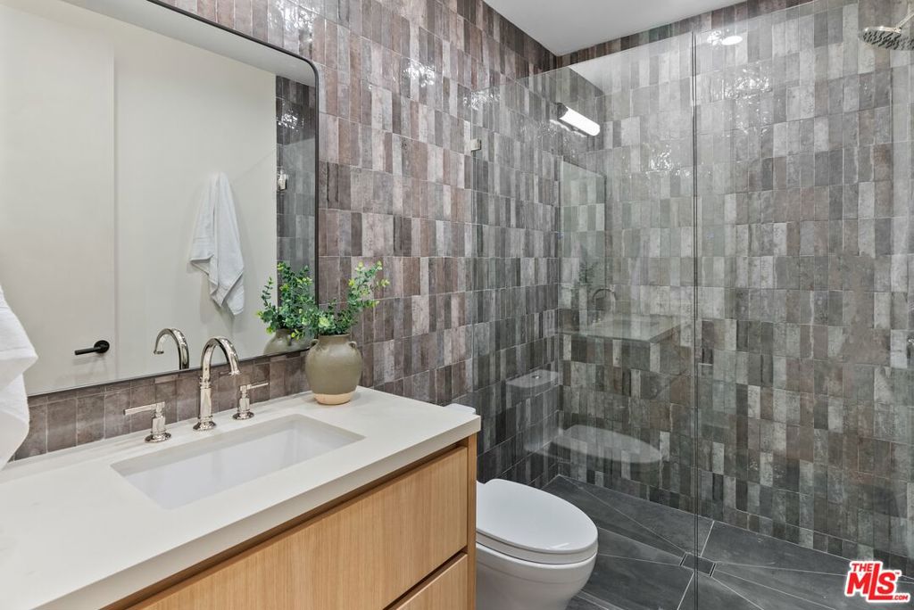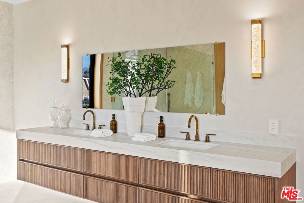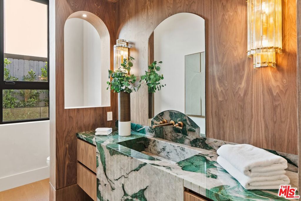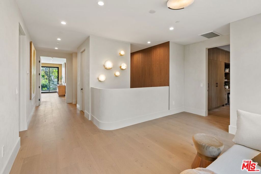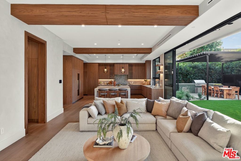 Discover refined coastal living in this newly built architectural estate in the coveted Huntington Palisades. This three-level modern masterpiece offers 7 bedrooms, 9 bathrooms, and over 8,000 sq ft of thoughtfully designed living space, blending timeless materials with cutting-edge convenience.A signature design element is the home's intentional progression of rich walnut and warm oak: bold walnut millwork anchors the main level, while the upper and lower floors transition to softly grained oak, creating a cohesive, elevated aesthetic throughout. Limewash and Roman clay walls, soaring ceilings, and expansive openings set a warm, sophisticated tone from the moment you enter. Custom walnut and white oak cabinetry and paneling, paired with a modern mix of porcelain and glazed ceramic tile, further elevate the home's refined material palette.The custom chef's kitchen is the heart of the home, featuring a Sub-Zero/Wolf gourmet suite of appliances, bespoke cabinetry, an oversized island, and Taj Mahal stone slabs. An extra-large pantry with concealed secondary appliances supports seamless entertaining. The kitchen flows directly into the grand dining area and expansive family room, where a sleek travertine-clad fireplace and oversized sliding doors open to the pool, spa, and outdoor lounge for true indoor/outdoor living.The lower level is designed for entertaining and wellness, showcasing a private movie theater, an Emperador marble clad built-in bar, and a fully equipped gym with steam room. Large sliding doors extend this level to an additional outdoor area, creating a resort-like experience. Plumbing fixtures throughout include selections from Brizo, Watermark, Gessi, Toto, and Mr. Steam, blending function with luxurious craftsmanship.Upstairs, generously scaled bedroom suites provide comfort and privacy, each with curated finishes and luxurious bathrooms. The serene primary retreat offers a spa-like bath and custom wardrobe, completing the sense of everyday escape. Additional amenities include an elevator serving all three levels, a 3-car garage, and smart-home integrations. The grounds are anchored by an extraordinary 150-year-old heritage tree, a rare natural centerpiece that adds history and character to this modern residence.A rare opportunity to own a meticulously crafted new-construction home in one of Pacific Palisades' most desirable neighborhoods, designed for both grand entertaining and effortless everyday living.