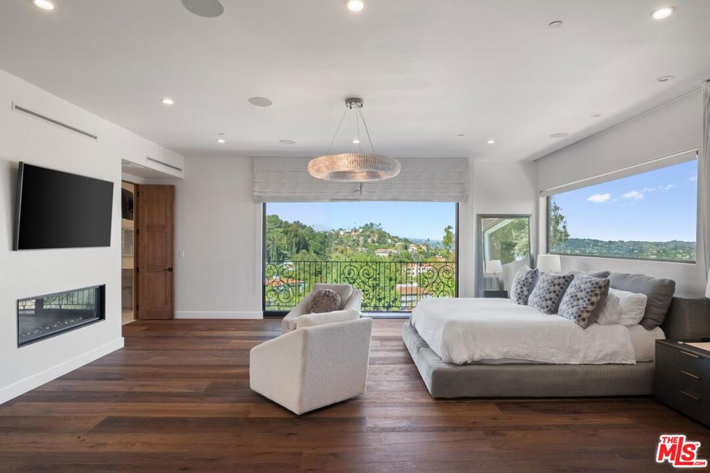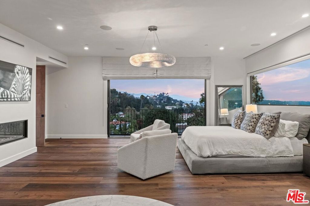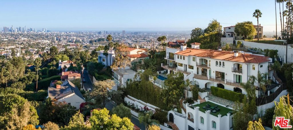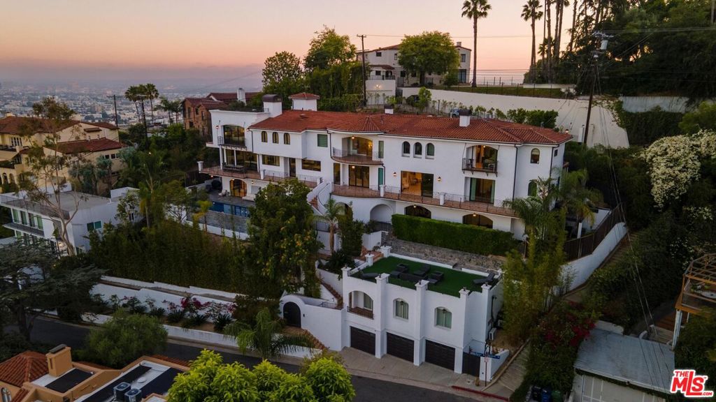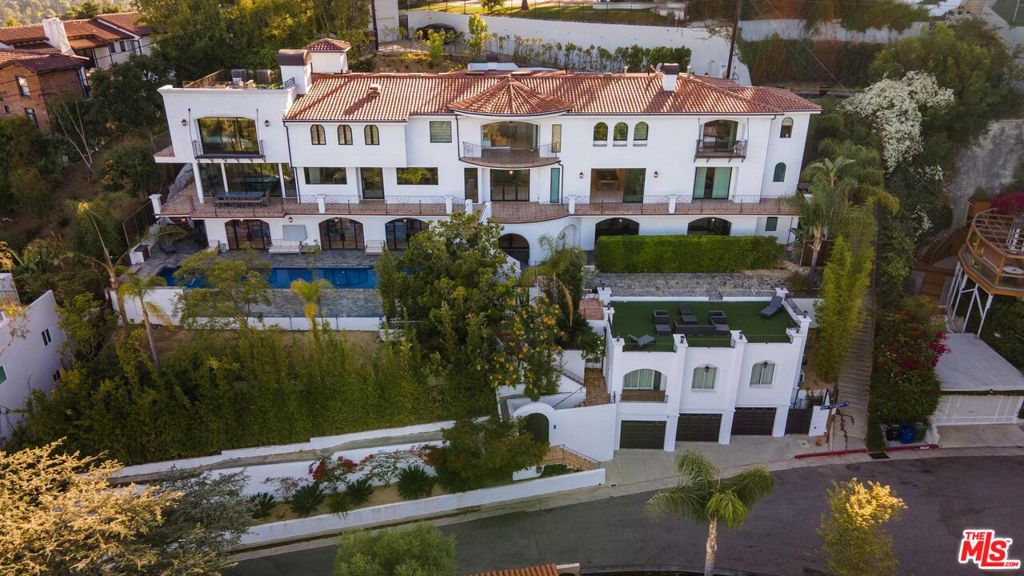 Welcome to "Villa De Bonvue", a masterfully renovated Mediterranean estate perched on a promontory in the prestigious Los Feliz Hills offering jaw-dropping panoramic views from the lush canyons to the glittering skyline of DTLA. Set on a rare street-to-street lot with seven car garage and gated motor court, this architectural gem captures commanding vistas from nearly every room, enhanced by full-length balconies and a rooftop deck designed to frame the city's most iconic landscapes. Every inch of this residence has been thoughtfully curated with luxury in mind featuring white honed travertine, European oak flooring, Italian-imported Bonotti marble, Calacatta Gold countertops, and custom oak and Zebrawood cabinetry. The primary suite is a showstopper with wraparound views, dual spa-inspired bathrooms, a soaking tub, steam and horizontal showers, and boutique-style closets. Unmatched amenities include a movie theater, bowling alley, game room, fitness center, wellness studio, salon, multiple kitchens including a chef's kitchen, and a resort-style infinity pool and spa. A detached guest house adds versatility for hosting or multigenerational living. Within close proximity to Netflix HQ, Griffith Park, The Greek Theatre, and all the best dining, culture, and nightlife in Los Feliz and Hollywood. Exceptional short term rental track record, reach out for STR rental figures. At only $750 a foot, this exceptional compound is arguably the best value in all of the Los Feliz Hills for a home of this caliber. Truly a unbeatable opportunity for the most discerning of buyers.