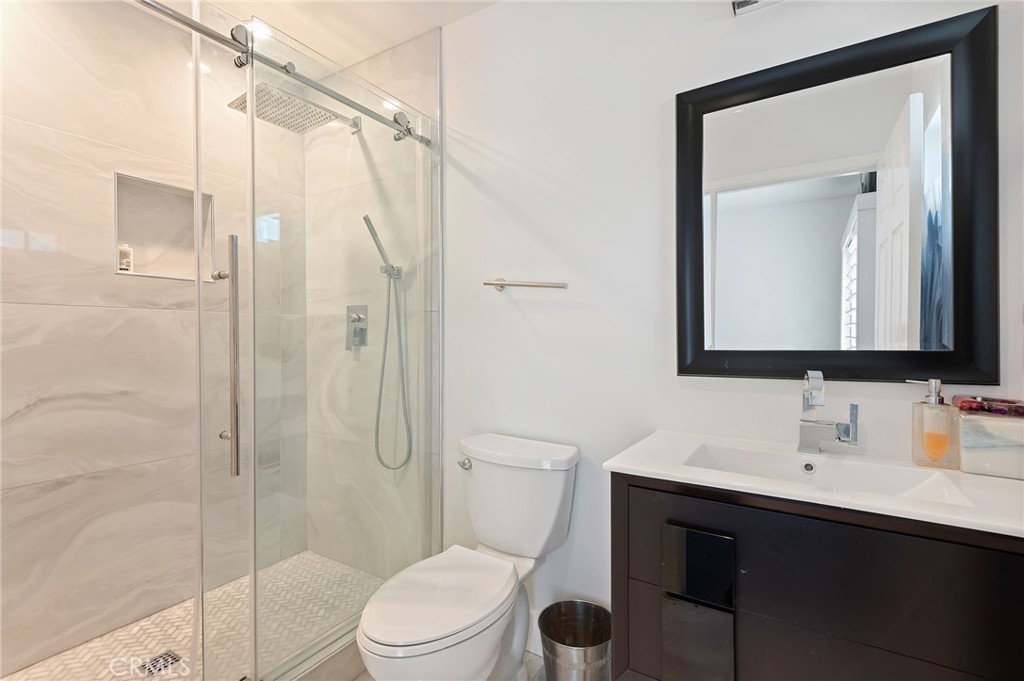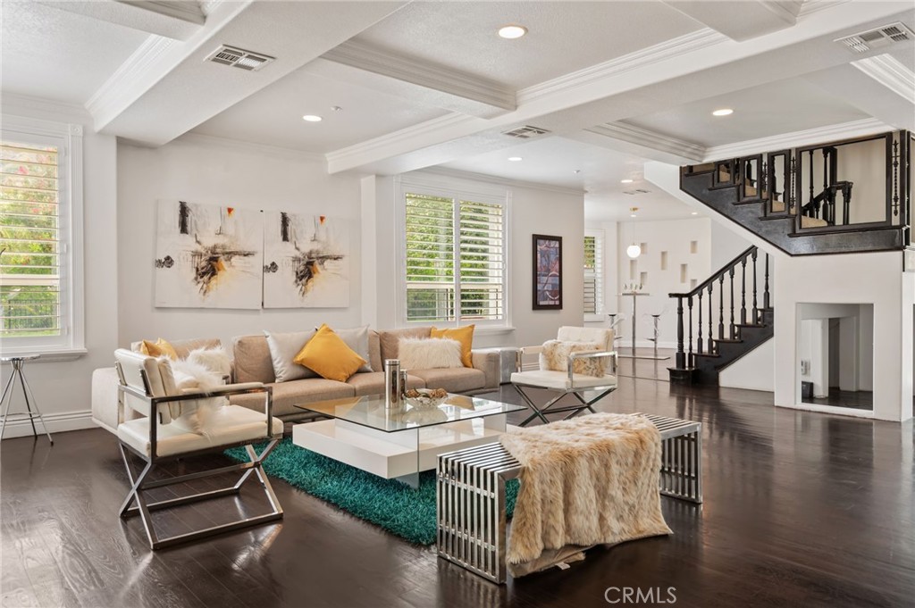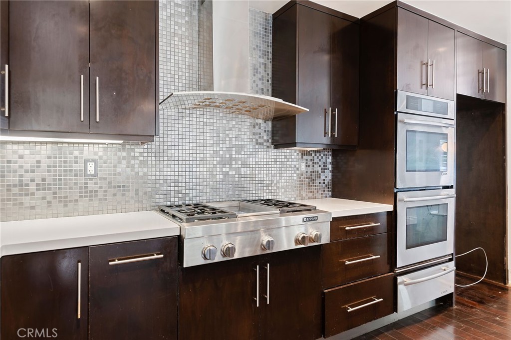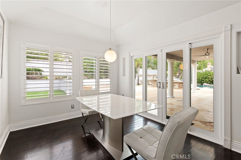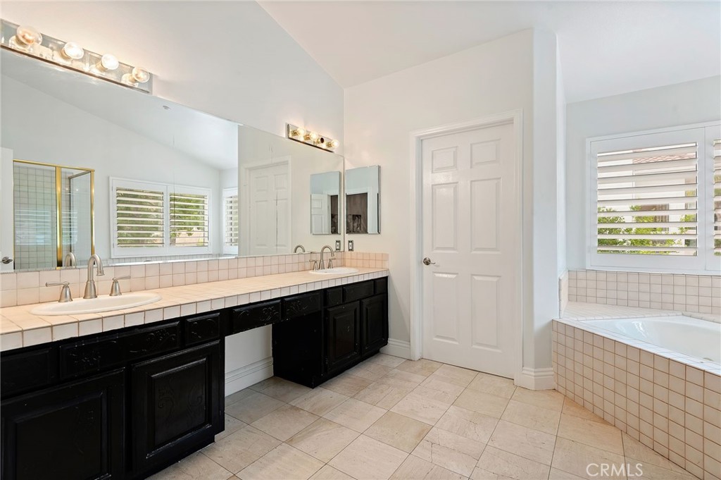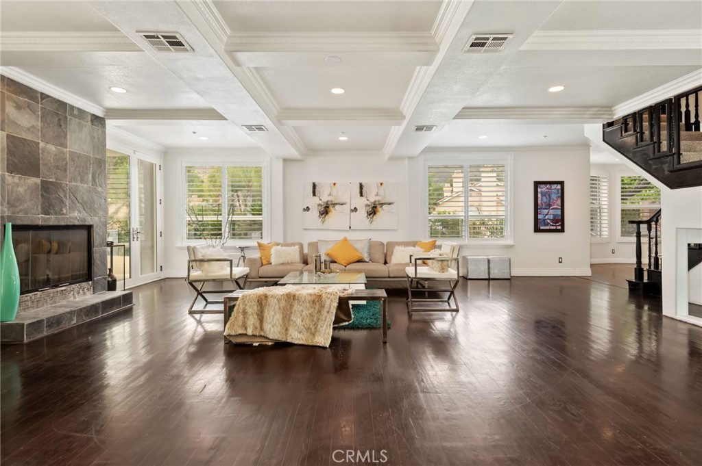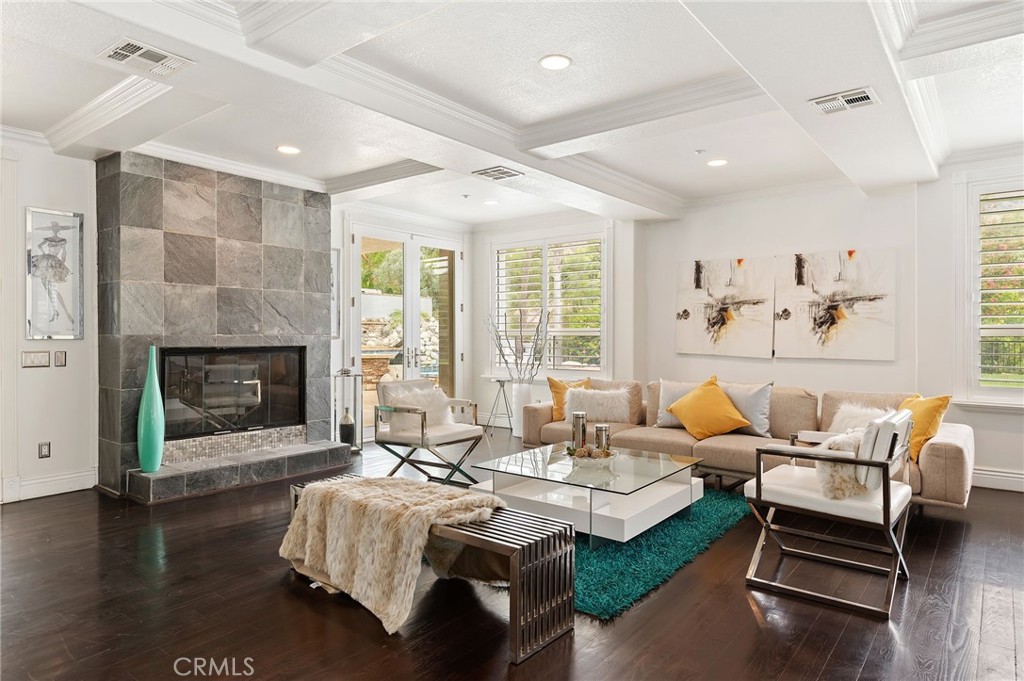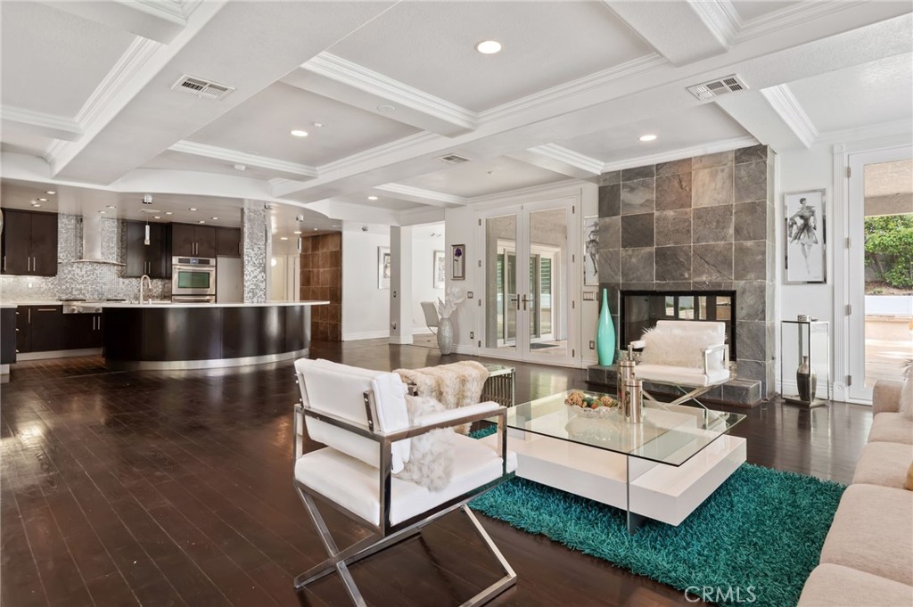 Located in the prestigious gated community of The Classics. This stunningly remodeled & expanded home boasts over 5,200 sqft of an open & light floor-plan! Extensive use of brick for home fascia, planter accents & front porch. New double door entry leads into the grand foyer w/ vaulted ceiling. This amazing home features an open concept redesigned center island kitchen w/ stainless steel Jennar double oven, gas stove & dishwasher. The huge family room w/ custom ceiling includes a wet bar with wine fridge, four sets of floor to ceiling French doors & stone fireplace. Elegant step-down living room w/ vaulted ceiling & mirror accented gas fireplace. Dining options include a separate formal dining room, spacious breakfast nook & secondary dining room off kitchen. Spectacular primary suite features its own staircase for entry, private lounge, volume ceilings, magnificent fireplace, French doors to balcony & a walk-in closet with skylight & hideaway. The primary suite bathroom features a jetted tub, double sinks & glass shower. Ensuite bedroom upstairs w/ private full bathroom. Remodeled upstairs full hall bath w/ double vanities. Bluetooth speaker placed in light fixture of fourth bedroom upstairs. Perfect loft upstairs for a home office. Downstairs ensuite bedroom includes its own remodeled bathroom w/ shower. Guest bathroom located downstairs near the stone accented wall has been beautifully remodeled. In-door laundry room w/ built-in linen cabinets, sink & utility closet. Additional highlights include split air conditioning units, custom front staircase w/ horizontal steel stringer design, window shutters, upgraded light fixtures, two smart Eco thermostats, white porcelain tile & upgraded wood flooring. 2023 upgrades include a new roof, new solar panel for backyard planter wall sprinklers & new spa pump. Upgraded driveway lights. Massive lot of over 20,000 sqft has an entertainer’s dream yard w/ excellent privacy & mountain views. Features include a beach entry infinity pool w/ boulder waterfall, spa, covered patio with recessed lights & new ceiling fan, large grass area, flagstone accented BBQ center w/ sink and built-in bench seating around oversized rectangular fire-pit. The side yard offers additional entertaining space w/ a beautiful fountain. Patio w/ turf has space for a sport court. Additionally you’ll find a dog run w/ fruit trees behind the pool. Make your musical dreams come true in the sound studio which occupies a portion of the 4 car garage.