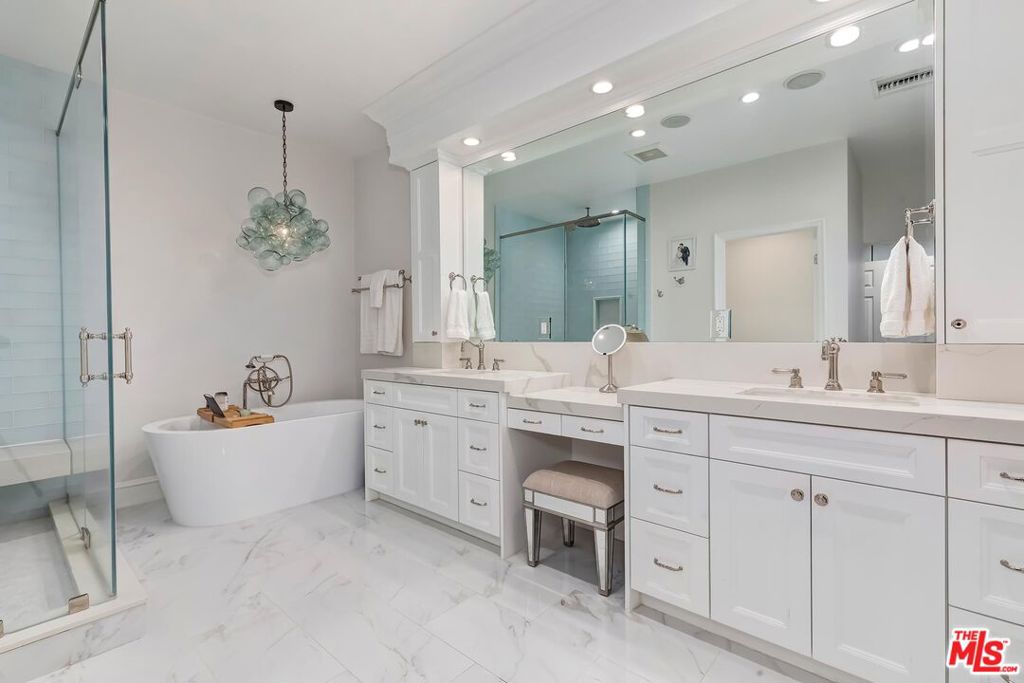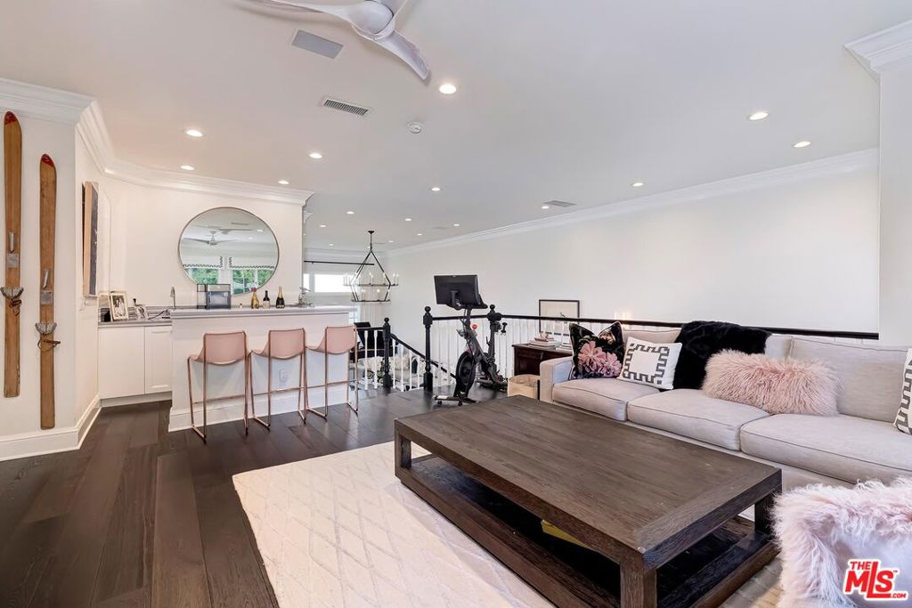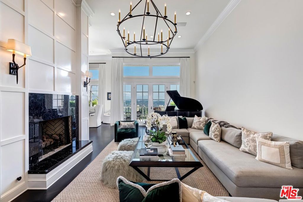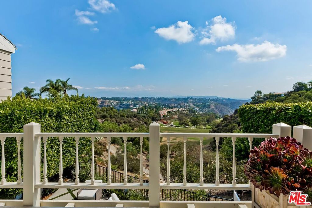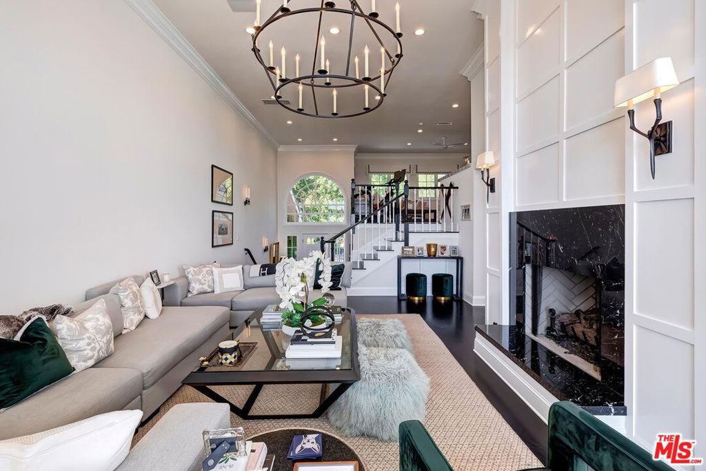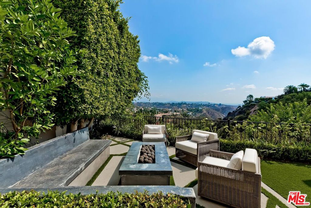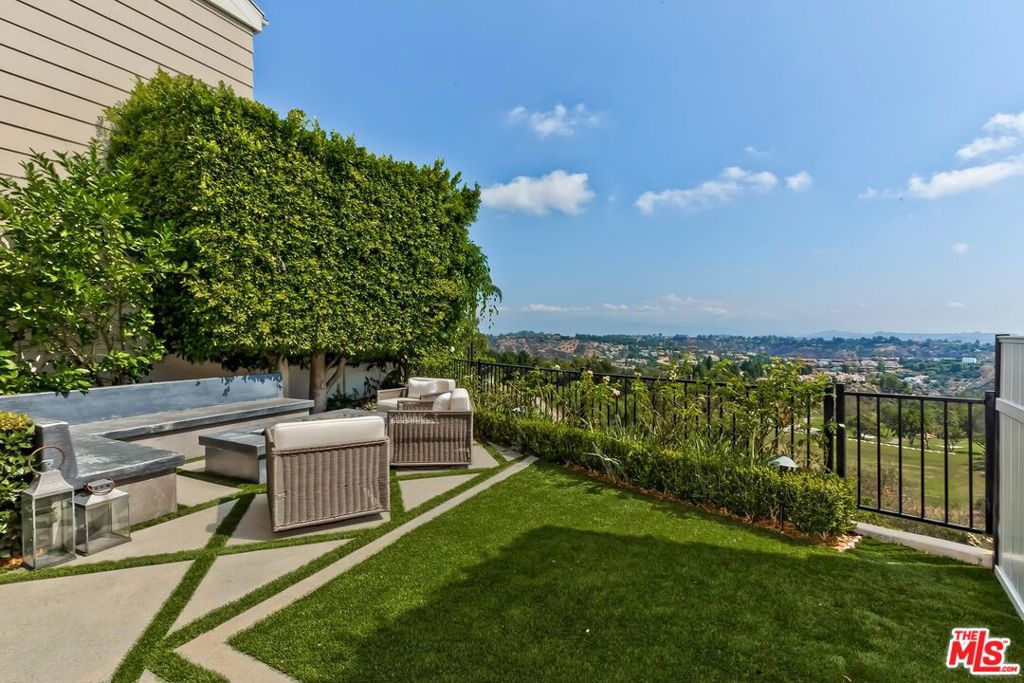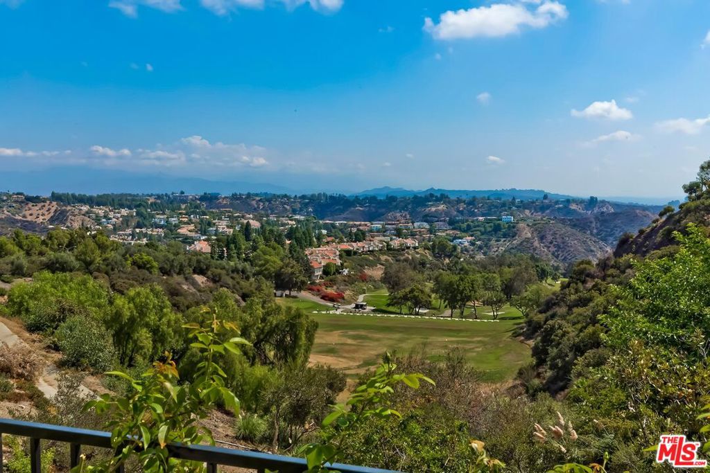 Meticulously designed and renovated within the coveted community of MountainGate in Brentwood, lies a true entertainer's dream with a breathtaking resort-style ambiance. Step into luxury and elegance as natural light flows throughout this inviting open floor plan featuring dramatic 20ft ceilings. Enjoy hosting in the grand living room and impressive dining room while overlooking the 180 degree golf course, mountain, and city views. Off the living room is a Chef's kitchen featuring custom cabinetry lined with Neolith countertops, Thermador appliances, and a beautiful breakfast bar that wraps into the dining room. Continue along to the spacious upstairs den area which was converted to a 3rd bedroom and/or potential home office. Make your way downstairs to find the primary bedroom and the spacious en-suite 2nd bedroom, both with direct access to the backyard. The primary bedroom includes 2 closets (walk-in & sliding) and a spa inspired bathroom featuring custom vanities, a makeup counter, a floating tub, and a lavish walk-in shower. Walk outside to relax and enjoy the serenity of the peaceful backyard while keeping cozy around the custom built fire pit area. This home and community caters to all of your needs! The monthly HOA dues include security patrol, 24-hour guard gated security, exterior fire/earthquake insurance, roof coverage, exterior paint maintenance, weekly trash bin service, front yard/common area landscape maintenance, and community pool. MountainGate is recognized for its beautiful hiking trails, meticulously landscaped atmosphere, easy access to the 405 freeway, proximity to UCLA, and all of Brentwood's/Westwood's trendy restaurants & shops. Residents also have the option of joining the Country Club featuring a recently renovated club house, golf, tennis, and more!