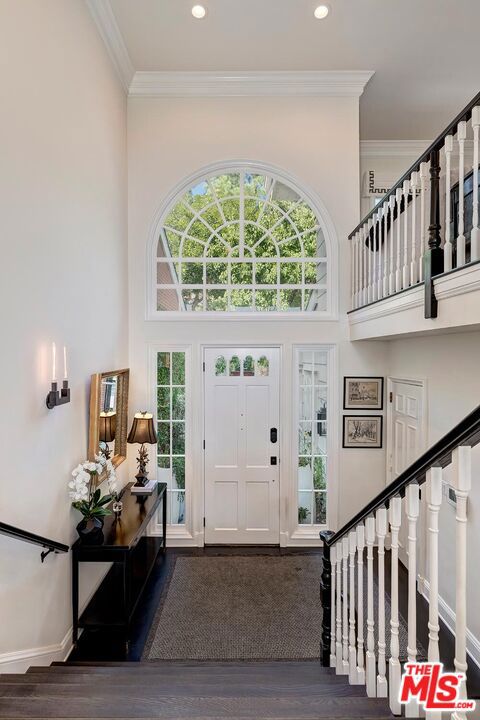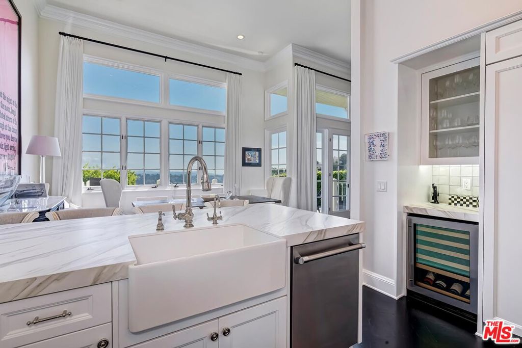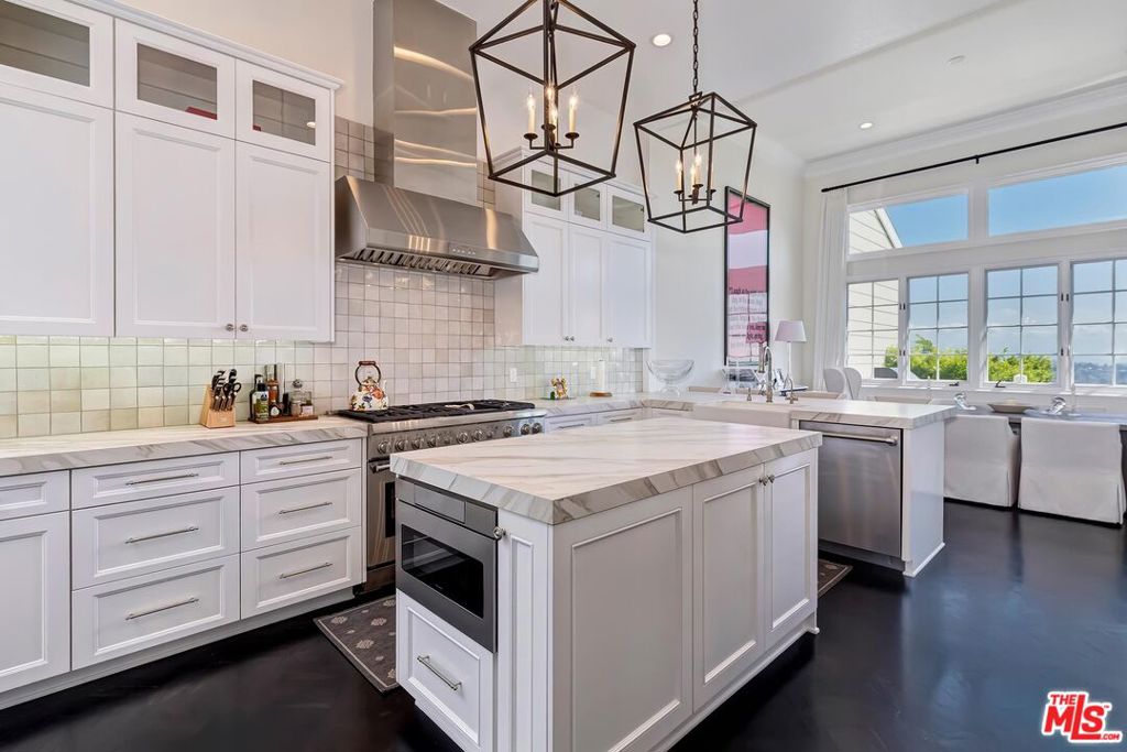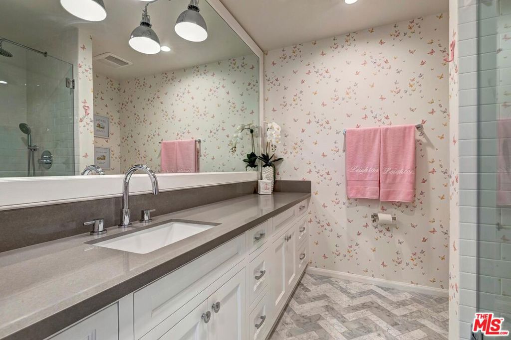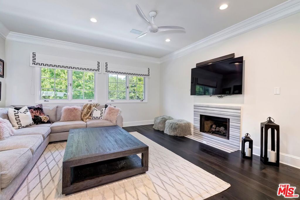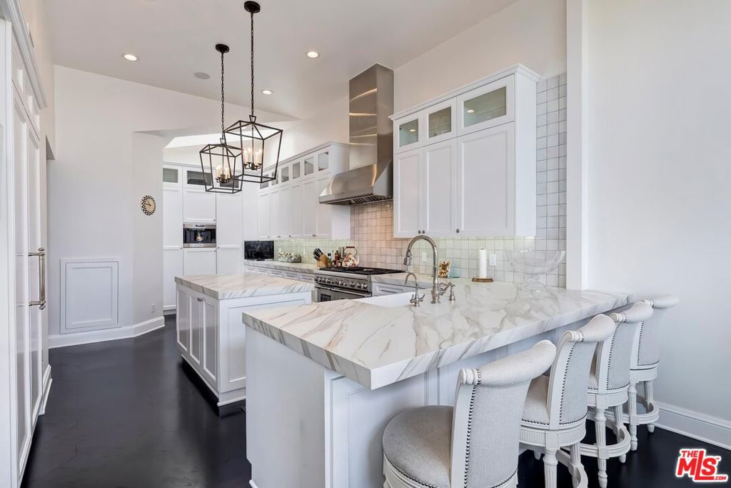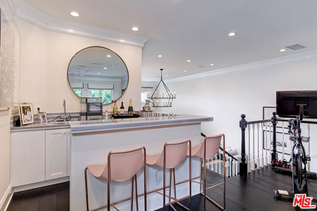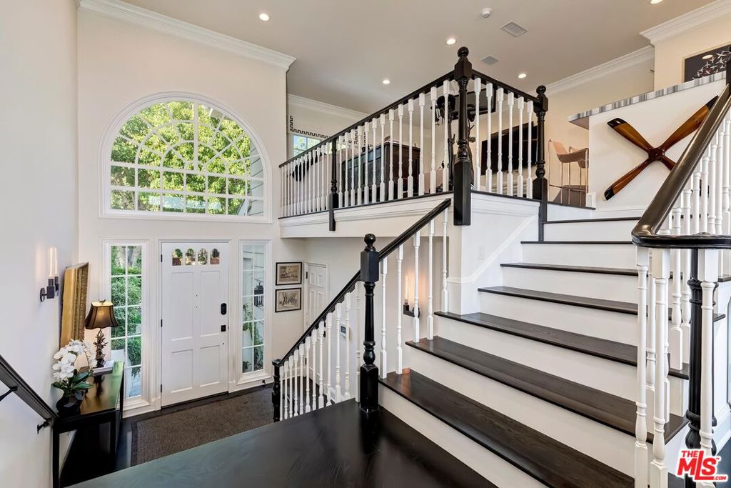 Meticulously designed and renovated within the coveted community of MountainGate in Brentwood, lies a true entertainer's dream with a breathtaking resort-style ambiance. Step into luxury and elegance as natural light flows throughout this inviting open floor plan featuring dramatic 20ft ceilings. Enjoy hosting in the grand living room and impressive dining room while overlooking the 180 degree golf course, mountain, and city views. Off the living room is a Chef's kitchen featuring custom cabinetry lined with Neolith countertops, Thermador appliances, and a beautiful breakfast bar that wraps into the dining room. Continue along to the spacious upstairs den area which was converted to a 3rd bedroom and/or potential home office. Make your way downstairs to find the primary bedroom and the spacious en-suite 2nd bedroom, both with direct access to the backyard. The primary bedroom includes 2 closets (walk-in & sliding) and a spa inspired bathroom featuring custom vanities, a makeup counter, a floating tub, and a lavish walk-in shower. Walk outside to relax and enjoy the serenity of the peaceful backyard while keeping cozy around the custom built fire pit area. This home and community caters to all of your needs! The monthly HOA dues include security patrol, 24-hour guard gated security, exterior fire/earthquake insurance, roof coverage, exterior paint maintenance, weekly trash bin service, front yard/common area landscape maintenance, and community pool. MountainGate is recognized for its beautiful hiking trails, meticulously landscaped atmosphere, easy access to the 405 freeway, proximity to UCLA, and all of Brentwood's/Westwood's trendy restaurants & shops. Residents also have the option of joining the Country Club featuring a recently renovated club house, golf, tennis, and more!