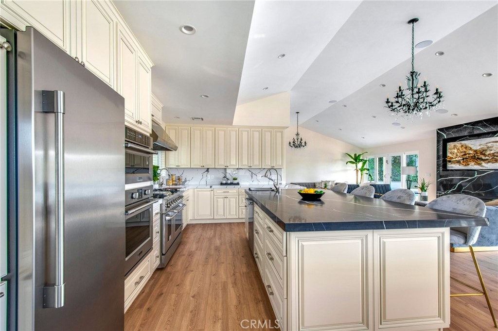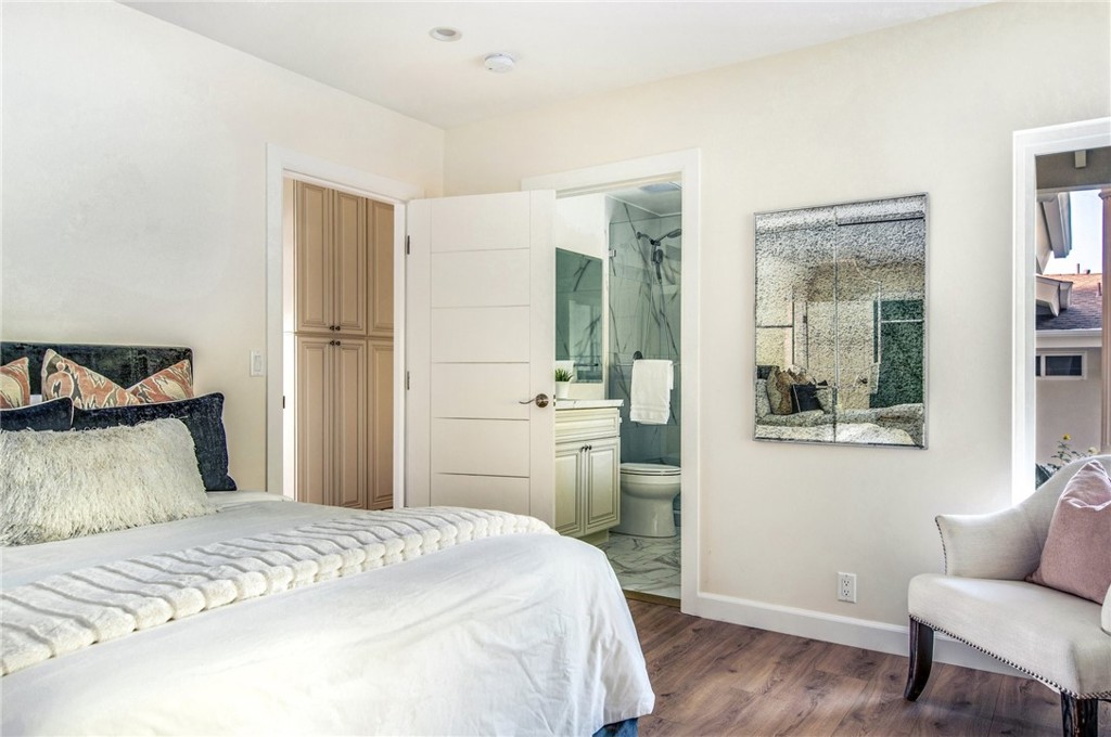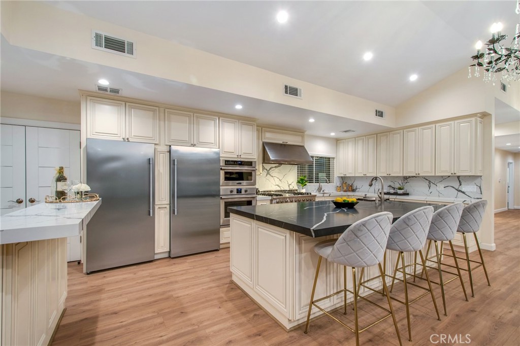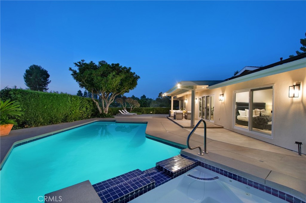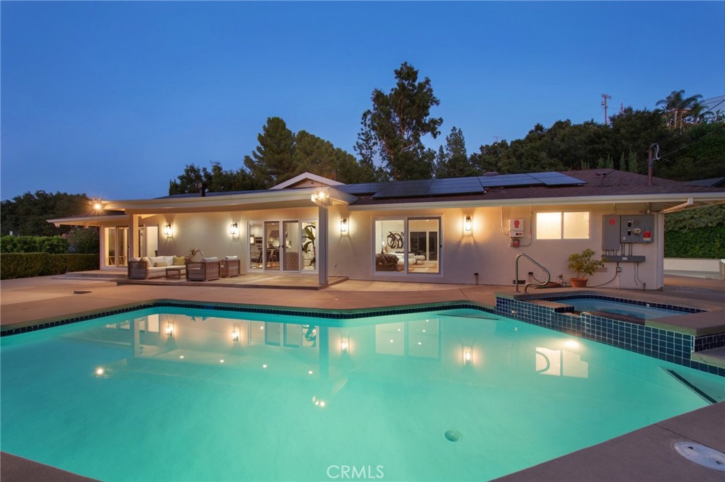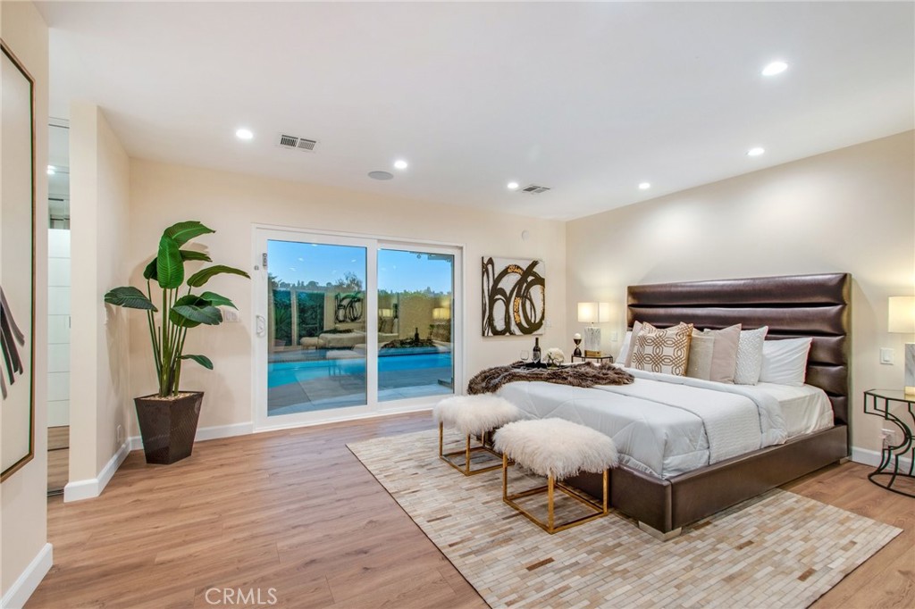 Located in Prime Encino, this renovated home, with a 1 bedroom 1 bath ADU is the perfect combination of Luxury and Comfort. Double Door Entry greets you into a luxurious living room, with high ceilings, large gourmet kitchen island with breakfast bar. Stainless Appliances. Wet-bar with temperature controlled wine refrigerator. All bedrooms are ensuites. Master bedroom with lots of closets, master bath with double sinks and separate bath. Indoor, outdoor living with heated pool & spa, outdoor shower and more. Super Bright and Beautiful.