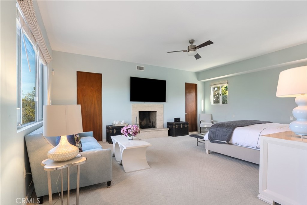 *The upper level offers an additional laundry area, four generously sized bedrooms, several with access to a shared balcony capturing stunning panoramic views. The primary suite features a fireplace, dual walk-in closets, and a spacious en-suite bathroom.