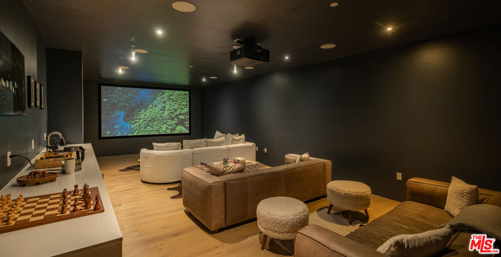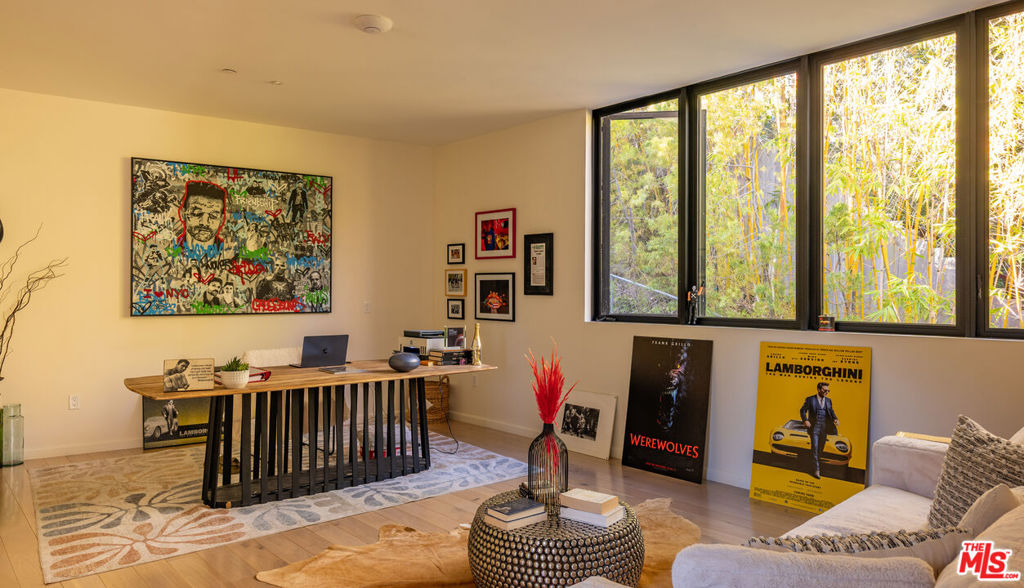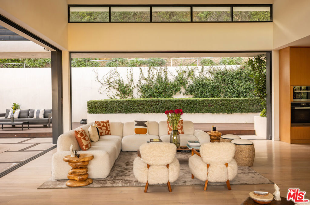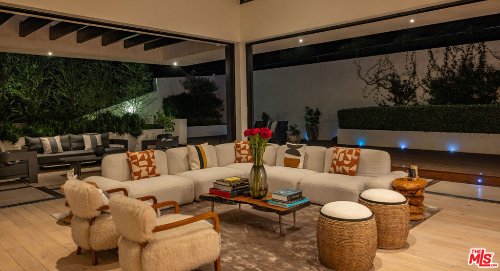Privately set behind gates in the coveted Hollywood Hills, this striking modern estate offers a rare combination of architectural presence, scale, and tranquility just moments from the Sunset Strip. A long driveway leads to a three-level residence thoughtfully designed to embrace light, openness, and seamless indoor-outdoor living. Expansive living and dining spaces are framed by walls of glass that open effortlessly to outdoor terraces, creating a fluid connection to the surrounding canyon landscape. The chef's kitchen anchors the main level with custom finishes, premium appliances, and an oversized island ideal for both daily living and entertaining. Throughout the home, clean lines, warm natural materials, and meticulous craftsmanship establish a refined yet inviting atmosphere. The primary suite serves as a private sanctuary, featuring generous proportions, spa-inspired bath amenities, a substantial walk-in closet, and serene views through floor-to-ceiling glass. Additional en-suite bedrooms are well-appointed, many with private terraces that extend living space outdoors. Purpose-built amenities include a media room, sauna, elevator, and flexible spaces suited for work or leisure. Outdoors, the property transforms into a resort-style retreat. A heated pool and spa are complemented by multiple lounge and dining areas, lush landscaping, and canyon vistas that provide both beauty and privacy. A covered patio and thoughtfully designed entertaining spaces make the home equally suited for large gatherings or quiet evenings. With a gated entry, three-car garage, advanced home systems, and close proximity to world-class dining, shopping, and nightlife, this estate represents a sophisticated Hollywood Hills lifestyle defined by privacy, design, and effortless luxury.