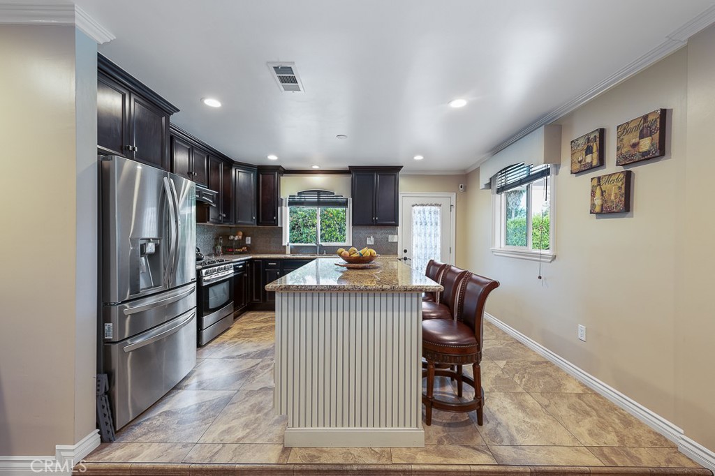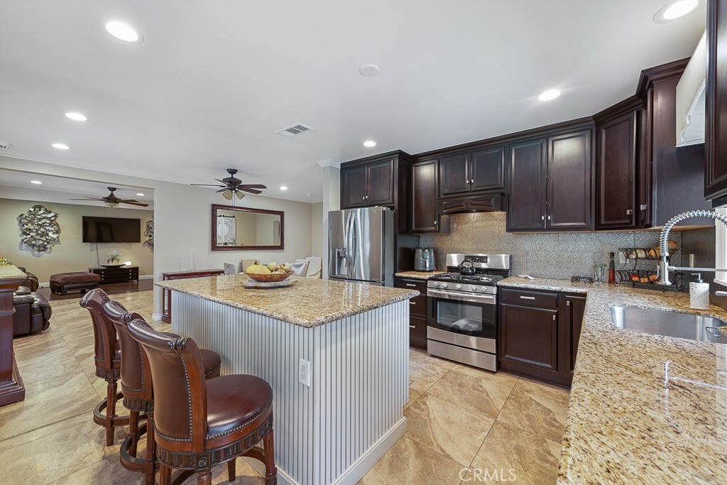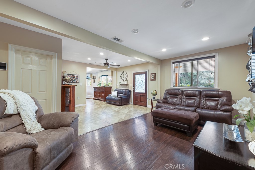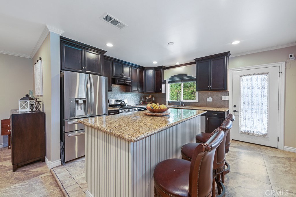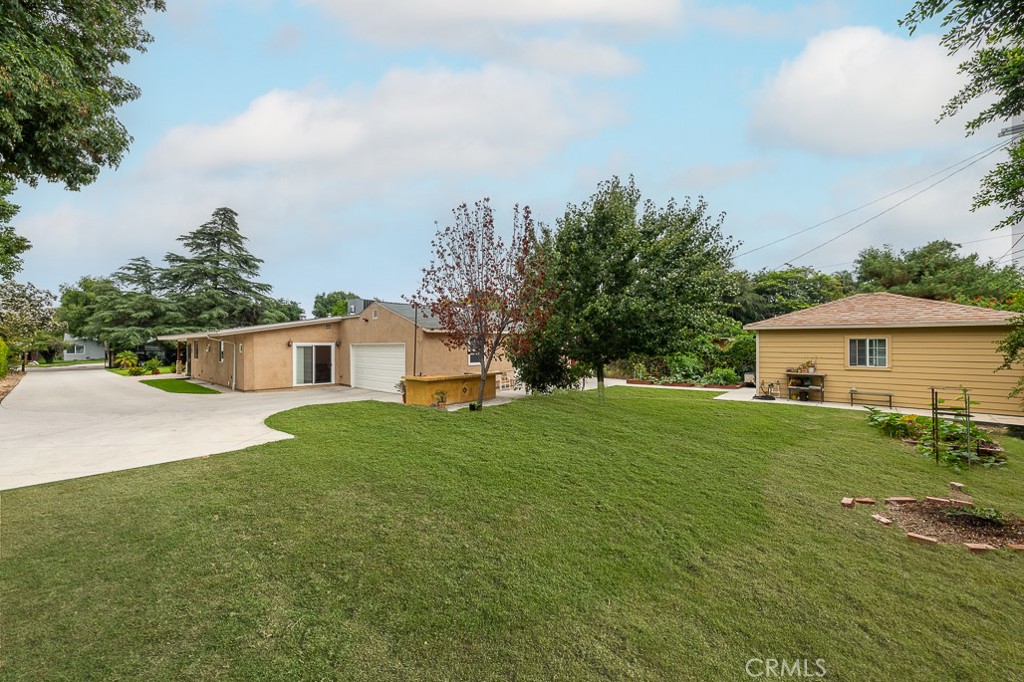 This single level remodeled residence is set behind impressive gates on an expansive lot of landscaped parklike grounds with a stunning towering cedar tree that greets as you enter the gated double entry motor court to a sweeping grass filled front yard that sets the tone for this magical property. Set far back from the street, a unique covered front patio with skylights and ceilings fans is the perfect backdrop to enjoy the beautiful grounds and creates a special entry into this unique home. Porcelain tile, hardwood flooring and high ceilings throughout converge as you enter the great room that leads to the dining area and a chef’s gourmet-styled kitchen with customized dark wood cabinets, granite counter tops, glass tiled backsplash and a center island with seating and storage. All secondary bedrooms are ensuite with ceiling fans and walk-in closets, the perfect complement to the primary suite that features an alcove area perfect for an office, a walk-in closet behind frosted glass wood framed doors and a 2-person shower with dual shower heads and dual sinks. The direct access oversized 2-car garage also contains entry into an ensuite bonus room. A built-in Spanish tiled grill station overlooks lush green grassy areas filled with lemon and orange trees and a garden growing tomatoes, bell peppers, watermelon, and cantaloupe. Additional amenities include designer fixtures, recessed lighting, crown moldings, indoor laundry, and gated parking galore at the front and rear of the property. Close to restaurants, shopping, and all the valley has to offer. Truly a must see!