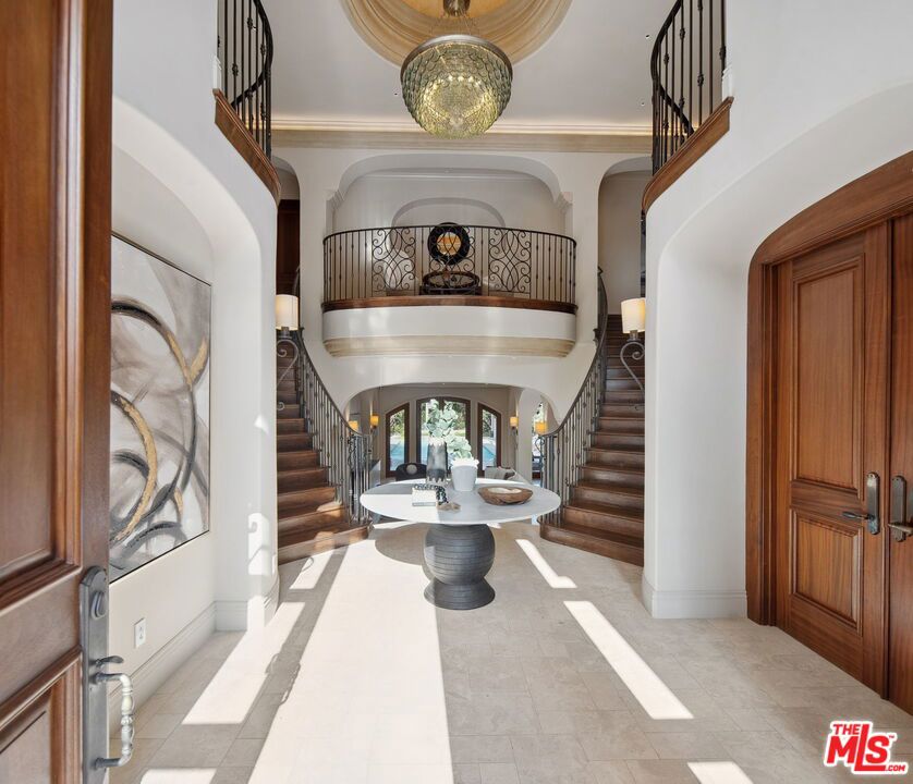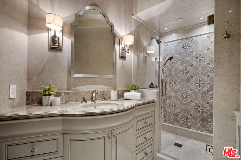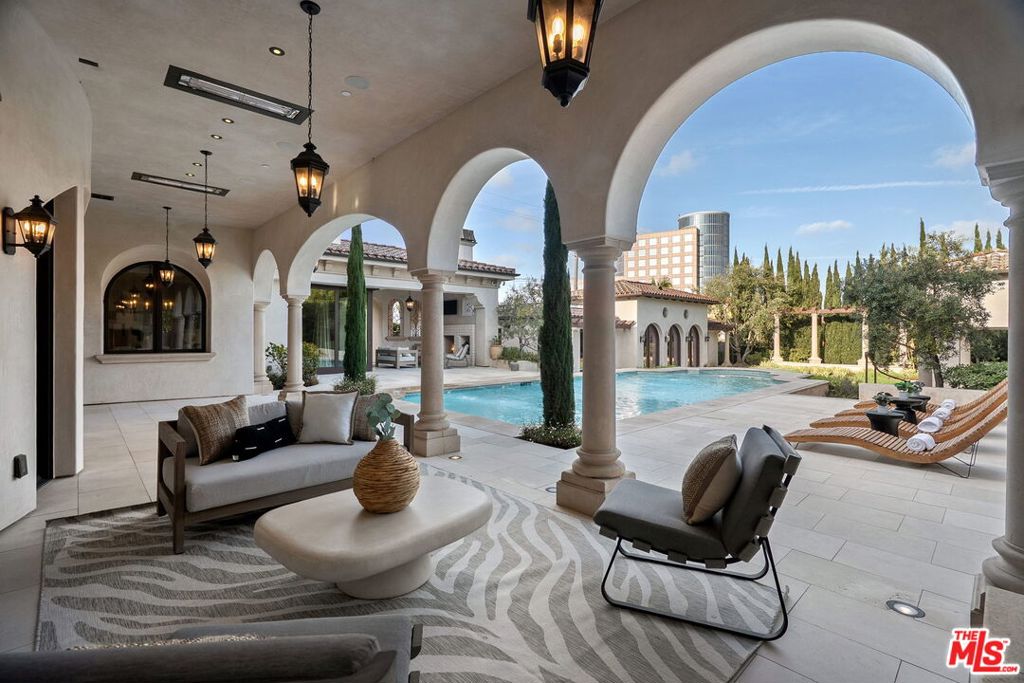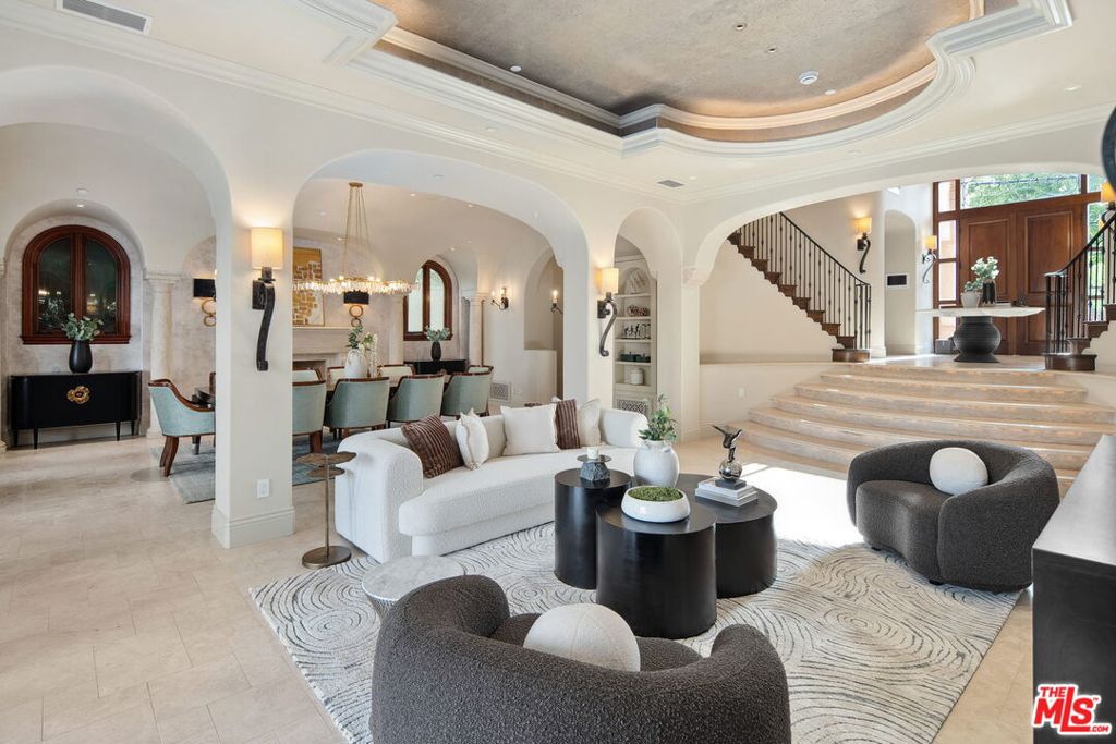 Nestled on a coveted 16,008 sq. ft. lot in one of North Kentwood's most desirable neighborhoods, this extraordinary Mediterranean estate blends timeless elegance with modern luxury. Offering 8,733 sq. ft. of meticulously crafted living space and a 1,166 sq. ft casita, this private retreat showcases unparalleled craftsmanship and high-end finishes, including Italian marble, limestone, and natural woods, in a thoughtfully designed layout that exudes sophistication and warmth. The main residence features five bedrooms, seven bathrooms, and two half baths, complemented by a two-bedroom, one-bath guest house an ideal haven for multi-generational living or stylish guest accommodations. Both homes are fully equipped smart homes, powered by advanced Crestron technology, allowing seamless control of lighting, climate, security, and entertainment systems. Constructed with flame-retardant lumber, a robust water-softening and filtration system, solar panels, and a hard-wired security system with geo-fencing, the estate offers state-of-the-art innovation with enduring quality. Enter through the grand foyer, where soaring ceilings and a sweeping curved double staircase immediately set a tone of opulence. The open yet well-defined floor plan flows effortlessly between formal and informal living spaces. A stately formal living room with a gas fireplace and mahogany doors opens to the lush backyard, while the sophisticated formal dining room offers a perfect setting for elegant gatherings. The family room, featuring a striking coffered ceiling, pocket doors, and an outdoor fireplace, invites relaxation and seamlessly merges indoor and outdoor living. The heart of the home is an expansive kitchen equipped with high-end appliances, a La Cornue stove, a spacious marble island, and a separate chef's kitchen for effortless entertaining. A full-service wet bar enhances the home's hosting capabilities. The main level also includes a private office with coffered ceilings and French doors opening to the front loggia and garden, a hand-carved limestone staircase spiraling around a three-story touret with niche lighting, an adjacent powder room, and an elevator for added convenience. Designed for both grand entertaining and serene retreats, the backyard is a true sanctuary, featuring a large salt-water pool and spa, two outdoor fireplaces, and a tranquil fountain surrounded by lush, mature landscaping that offers exceptional privacy. Upstairs, the primary suite is a luxurious escape, complete with a private balcony offering sweeping views, a cozy fireplace, a spa-inspired ensuite bath with heated floors, a soaking tub, a separate shower, dual vanities, and a refrigerated bar area. Expansive dual closets provide impeccable storage. Four additional en-suite bedrooms ensure comfort and privacy for family and guests, while a conveniently located laundry room adds everyday ease. A first-floor en-suite bedroom, with a refrigerated minibar and French doors to the garden, offers flexibility and accessibility. Entertainment and lifestyle amenities abound, including a temperature-controlled wine cellar for collectors, a private state-of-the-art movie theater with custom seating, an adjacent full-service wet bar and snack center with microwave and refrigerated drawers, a full salon with hair and nail stations, a dedicated gift wrapping, hobby, and homework center, plus a large gym for wellness enthusiasts. The separate guest house offers fully independent living with a custom kitchen, washer/dryer, two large bedrooms, a full bath, and a separate outdoor pool bath, ensuring extended family or guests enjoy complete comfort and privacy. A four-car garage and a gated driveway provide secure parking for six or more vehicles, adding everyday practicality to the estate's grand presence. This rare offering presents a unique opportunity to own an estate that flawlessly blends luxury, functionality, and exquisite design all within the vibrant heart of Westchester.
