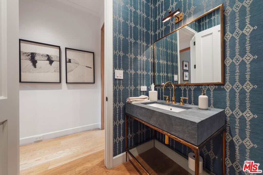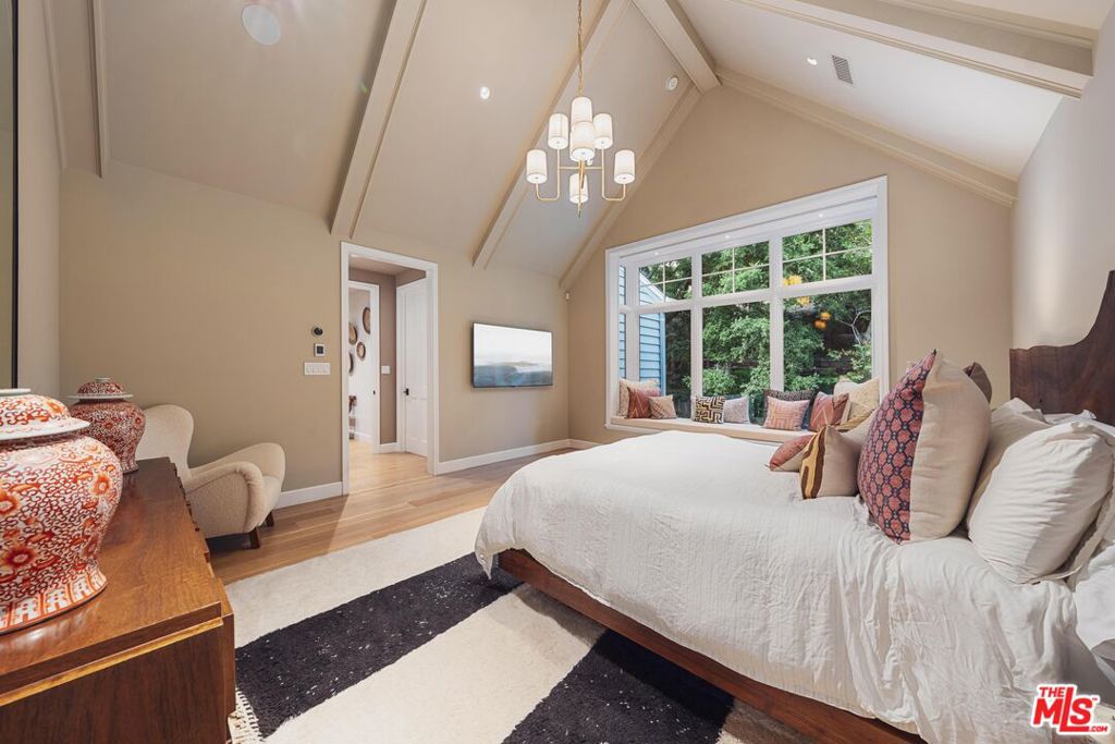 Nestled within the prestigious enclave of Mandeville Canyon, this exceptional gated estate offers an unparalleled 1.2-acre sanctuary beneath a majestic canopy of mature sycamores and oaks. Reimagined with precision and timeless vision, the 8,476-square-foot Hamptons-style residence is a masterclass in quiet luxury, blending heritage charm with contemporary sophistication to create a haven for both elegant entertaining and relaxed everyday living. Comprising eight bedrooms and ten baths, the estate has been thoughtfully curated to exude a refined sensibility. Inside, a luminous interior unfolds with reclaimed wood beams, rich oak hardwood floors, and expansive glass doors that dissolve the boundary between indoors and out, imbuing the home with warmth, texture, and a seamless connection to nature. The heart of the home is a chef's kitchen of rare caliber designed for the culinary aficionado with a 60" Wolf range, triple SubZero refrigeration, dual dishwashers, three sinks, and a generous walk-in pantry. Adjacent informal dining and a cozy TV alcove offer spaces for intimate gathering, while the formal living and dining rooms provide an ideal backdrop for sophisticated soirees. Anchoring the estate is a breathtaking two-story great room, perfectly appointed for entertaining, complete with a full bar, temperature-controlled wine cellar, and bespoke entertainment center. A richly paneled private study with a full bath offers a serene workspace or stately library retreat. Beyond the main residence, a detached one-bedroom guest house with private entrance and secluded patio offers guests a luxurious, autonomous escape. Two en-suite staff or flex bedrooms provide versatility for a home gym, office, or additional accommodations. Upstairs, the primary suite is a sanctuary of serenity, capturing treetop vistas and thoughtfully designed with a beverage bar, a marble-clad spa bath featuring a freestanding soaking tub and indulgent steam shower, and an expansive custom walk-in closet. Each additional bedroom suite offers its own tranquil ambiance, adorned with classic detailing and bathed in natural light. Outside, the grounds evoke a resort-like sensibility: a stunning ozone-purified pool and spa invite restful retreat, while fire tables, heated lounges, and a fully equipped outdoor kitchen create the ultimate stage for al fresco entertaining. A lighted pickle ball court encourages active recreation, while a treehouse and playground provide whimsical charm for all ages. Privately hedged and gated, with motor court parking for over 12 vehicles, including a two-car garage and a two-car carport the property is secured by a cutting-edge security system and offers the rare blend of seclusion and accessibility.Ideally located moments from the Brentwood Country Mart, world-class dining, luxury shopping, and scenic hiking trails, this remarkable estate is not merely a residence, it is a lifestyle defined by grace, privacy, and enduring sophistication.