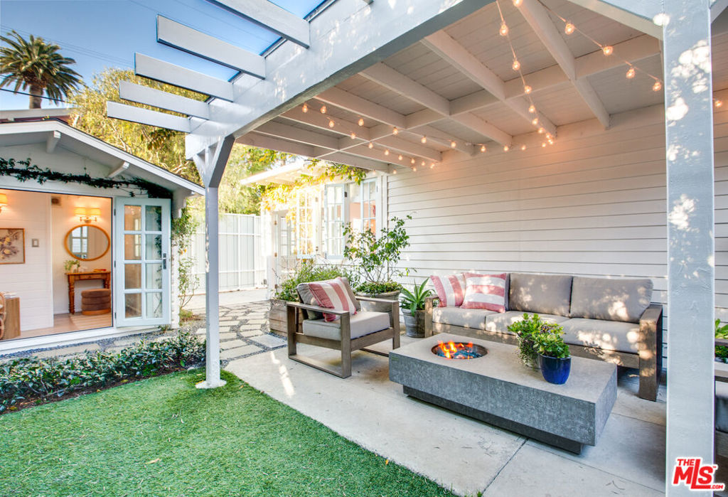 Private Venice retreat with lovely gardens, ideally located on the 700 block of Superba. Abundant natural light streams through the 2-bedroom plus office or artist's studio home that features a fireplace and wide plank hardwood floors in the living room. The kitchen and dining area have designer tile floors, Viking and Fisher Paykel appliances, designer cabinets and hardware plus a large walk-in pantry just off the kitchen with ample built-in shelving and washer/dryer. Continuing through the home, you'll find the 2nd bedroom located at the front of the house with built-in closets and shelves. The bathroom is spacious and luxuriously appointed, featuring a soaking tub, walk-in shower and heated towel bar for added comfort. The primary bedroom boasts a large walk-in closet and elegant French doors that open to the back garden. Step outside into the lush, private backyard, where you'll be greeted by an abundance of fragrant flowers every spring. The outdoor space is perfect for entertaining year-round, offering an alfresco dining area and a covered sitting area complete with a cement fire feature coffee table. Tucked away at the back of the property is an artist's studio, office or meditation room, where light streams in through 2 walls of windows. A second structure features a small lounge/reading room and a half bath. There is remote controlled gated parking at the back of the property. The residence is a true Venice treasure, situated in the walk-street area, 2 blocks from Abbot Kinney, minutes from the beach and close to all that Venice has to offer.