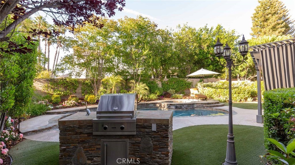 Step outside to your own entertainer’s paradise, a serene, private backyard with a resort-style pool and spa, built-in BBQ and bar (with lighting), low maintainence artificial turf, and multiple seating areas perfect for hosting or unwinding. Owned solar adds efficiency, and the freshly painted stucco and trim, rain gutters, and updated sliding screen door reflect attention to every detail.