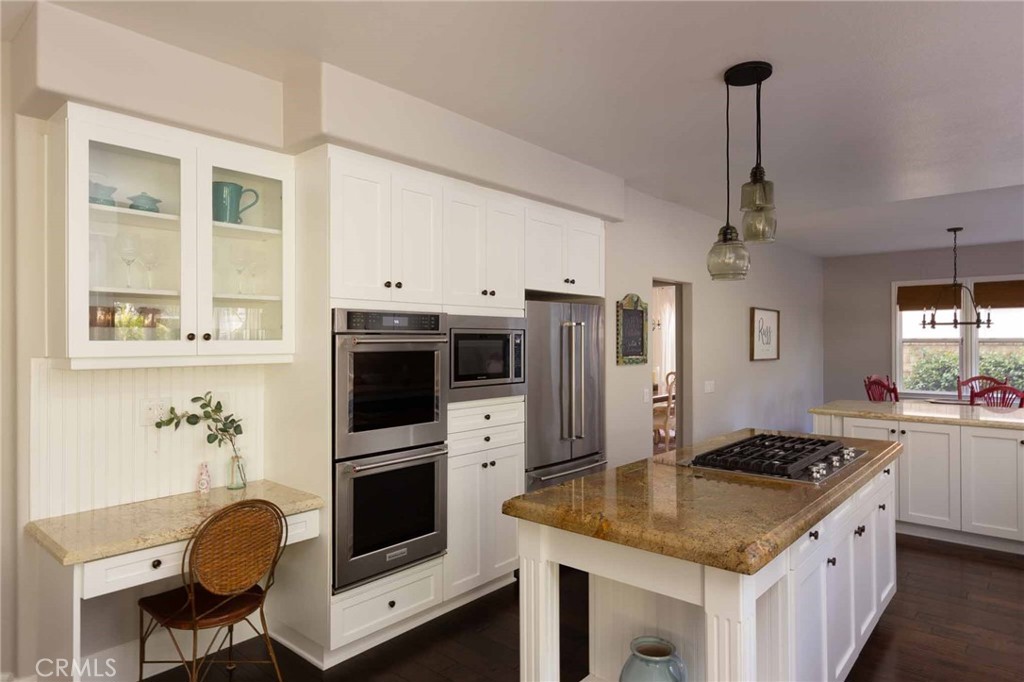 The chef’s kitchen is a true showpiece with upgraded newer appliances, sleek cabinetry, and high-end finishes—ideal for both daily meals and lively gatherings. The adjoining living areas feature a built-in entertainment center, chandelier accents, and remodeled wood and carpet flooring that flows throughout. The luxurious primary suite includes a spacious bedroom and a private retreat currently used a custom home office with built-in desk and shelving offers the perfect work-from-home setup. The remodeled primary bath boasts stylish tilework, designer finishes, and a large walk-in closet with built-in organizers. All bedrooms feature custom closet systems with baskets and drawers, while each bathroom has been thoughtfully updated. Window coverings, selective tints, and ceiling fans provide year-round comfort and savings.