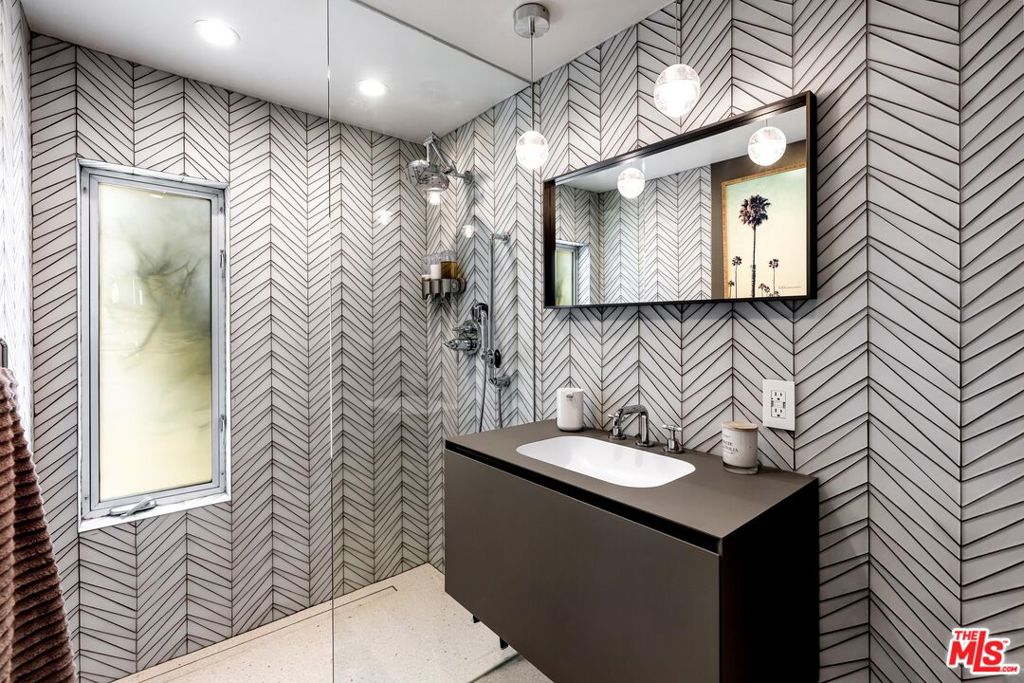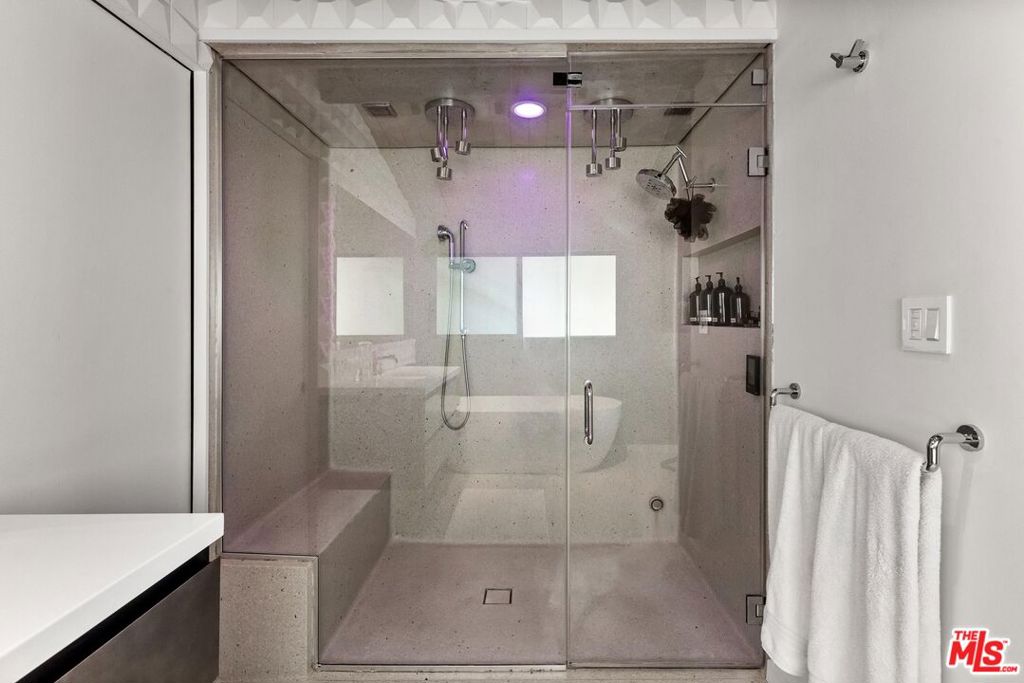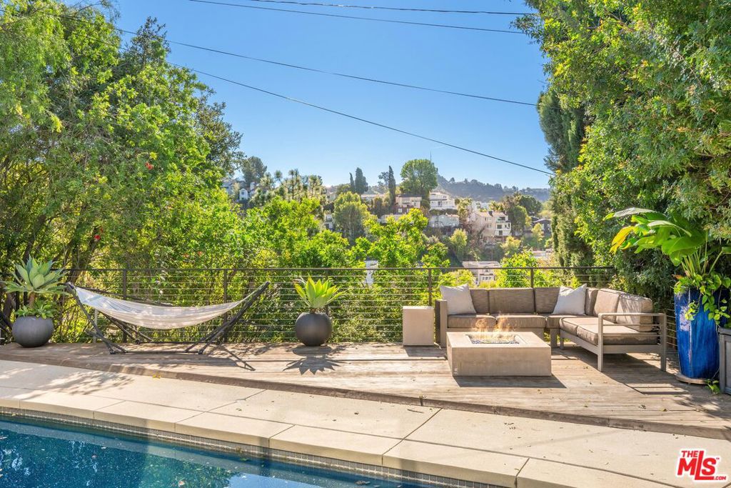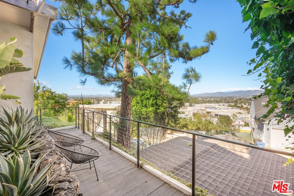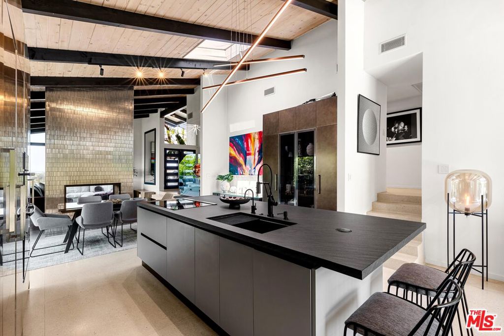 Introducing a mid-century modern residence nestled in the hills above Studio City, offering breathtaking vistas of the mountains and valley. This home is expertly crafted to provide the ultimate luxury living experience. Enter through the grand double door entry to find an open-concept floor plan with natural light pouring in from every angle.Custom poured terrazzo floors and 19-foot exposed beam ceilings add to the home's charm. The living room, with its floor-to-ceiling windows, perfectly frames the incredible views. The spacious dining room featuring a dual-sided fireplace, is ideal for gatherings of friends and family. The custom Pedini kitchen is a chef's dream, complete with high-end Jenn-Air appliances and a large quartz center island, seamlessly connecting to the family room, which also features floor-to-ceiling windows and a sliding door leading to the backyard patio perfect for al fresco dining. The primary suite is a true masterpiece, featuring an oversized picture window, a TV that disappears into the ceiling, blackout blinds, a custom closet, and a spa-like bath with a steam shower, stone soaking tub, and a Toto smart toilet. The two additional bedrooms also have true blackout blinds within-wall channels for complete darkness, custom closets, and share the second full bathroom. The entertainer's backyard is outfitted with a heated salt-water pool, jacuzzi, and fire pit, all while offering captivating views. Designed with integrated smart home technology, the residence includes a Lutron Caseta voice-controlled lighting system, Sonos sound system, Ring security system, whole-home Pelican water softening system, and a fully owned solar energy system for value enhancement and cost savings. Situated just moments from all the dining and shopping along Ventura Blvd and located in the esteemed Carpenter Elementary school district, this home offers a lifestyle you've always dreamed of. Don't miss the opportunity to make it yours.