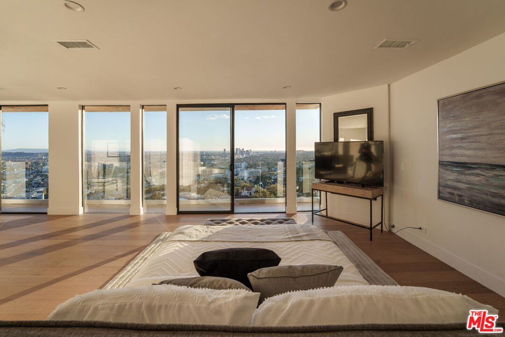 Views + Location! This home is a spacious three-story view estate, perfectly located on upper Hollywood Blvd, above the famed sunset strip - offering jetliner city, and ocean views. Within minutes of Laurel Canyon, Beverly Hills and Sunset Blvd, prime location makes it easy to get around. The property includes direct-entry garage. Each room offers gracious natural light, and unobstructed views. An open layout gourmet chefs kitchen accompanied by stainless steel sleek black appliances, and center kitchen island overlooking the city makes for an ultimate cooking experience. Ceiling to floor sliding doors provide an indoor/outdoor experience as outdoor terraces are present on each level. Primary suite features a fireplace, private balcony, and a luxury style master bathroom. The Master bathroom is truly unmatched with its high end finishes, as it invites you in to relax after a long day, in a king-sized soaking tub, or showers. As you make your way down to the backyard, a panoramic view of the city takes your breath away. Enjoy the skylight sunset, with a built in fireplace & barbeque, perfect for hosting dinner parties or a romantic night in the jacuzzi. Smart-Home features include fully equipped lighting systems, Nest, Sonos, Multi-Zoned & control 4 applications. Welcome Home.