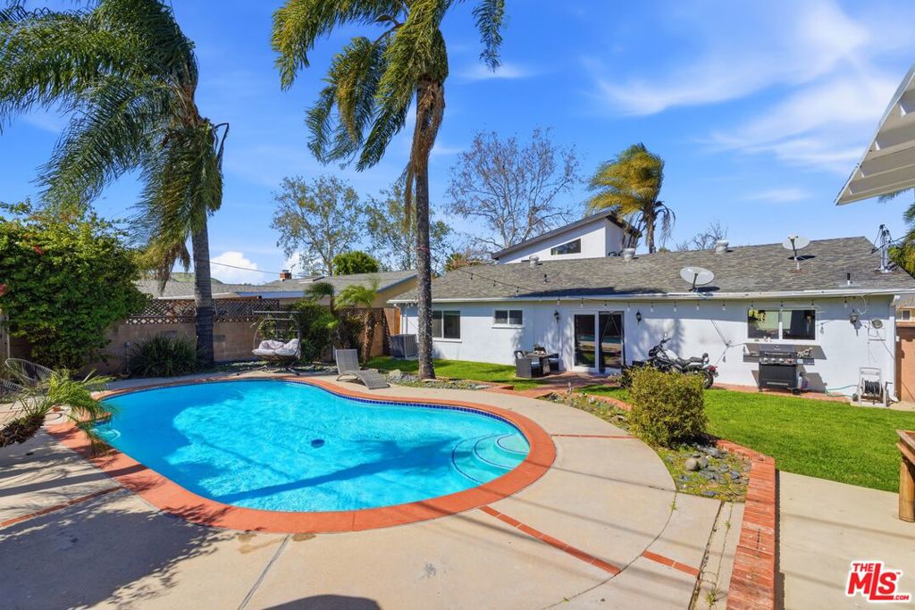 Beautifully remodeled West Hills home with ADU. The main residence was updated in 2019 and offers 3 bedrooms and 2 bathrooms with an open floor plan, abundant natural light and modern finishes throughout. The backyard features a fenced swimming pool surrounded by Palm trees, custom landscaping and a barbecue area. The ADU, built in 2023, is fully furnished and currently vacant. It offers 2 bedrooms, 2 bathrooms, a balcony and laundry room. A versatile property offering both comfortable living and investment potential.