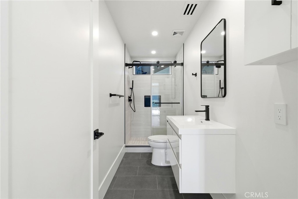 All bathrooms have been beautifully redesigned with floating vanities, matte black fixtures, glass shower enclosures & water-efficient toilets creating a clean modern look.