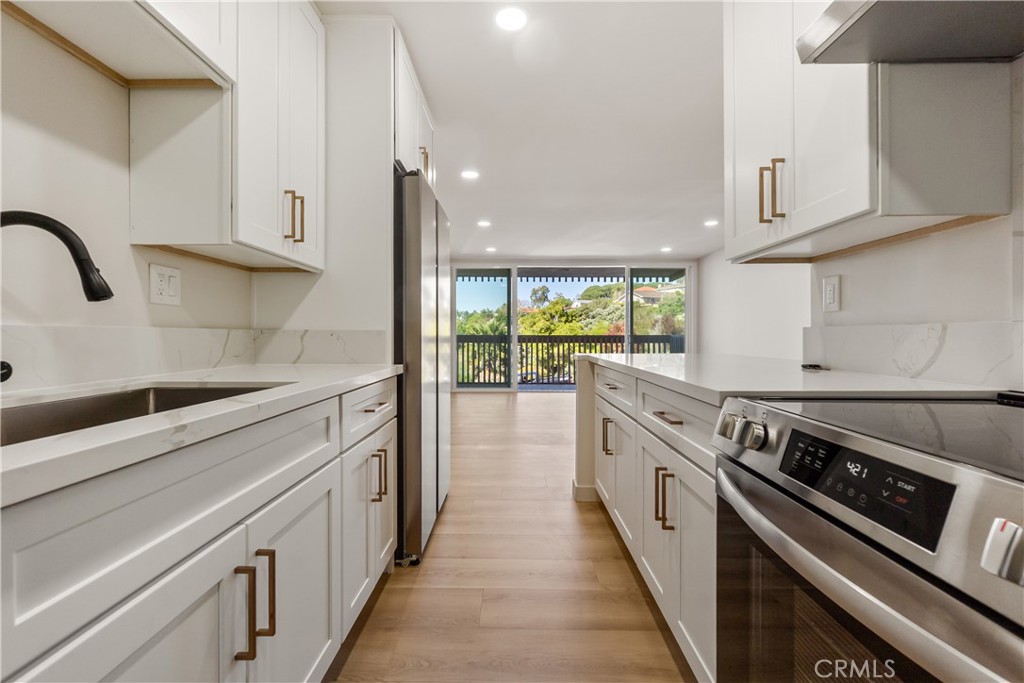 Welcome to 6542 Ocean Crest Drive Unit D204. Serenity, Views, and California Coastal Living Awaits you in Rancho Palos Verdes! Enjoy ocean and hillside views from this beautifully remodeled condo. The living room opens to a private balcony, perfect for morning coffee or sunset views over the Pacific. This one-bedroom home features new sliding glass doors and windows, quartz countertops, new cabinetry, stainless steel appliances, recessed lighting, upgraded plumbing fixtures, a modern tiled bathtub, and a new water heater. Designer finishes throughout create a clean, contemporary feel. The layout includes a large walk-in closet, additional storage, and a convenient extra sink area. Located in the gated Seagate community with resort-style amenities including pools, spa, gym, sauna, BBQ area, and clubhouse. Assigned parking, private storage, and elevator access included. Minutes from the coast, trails, shopping, dining, and top-rated Palos Verdes schools. Hurry and grab this stunning unit before its gone! No Guarantees from seller or listing broker, buyer to verify all conditions.