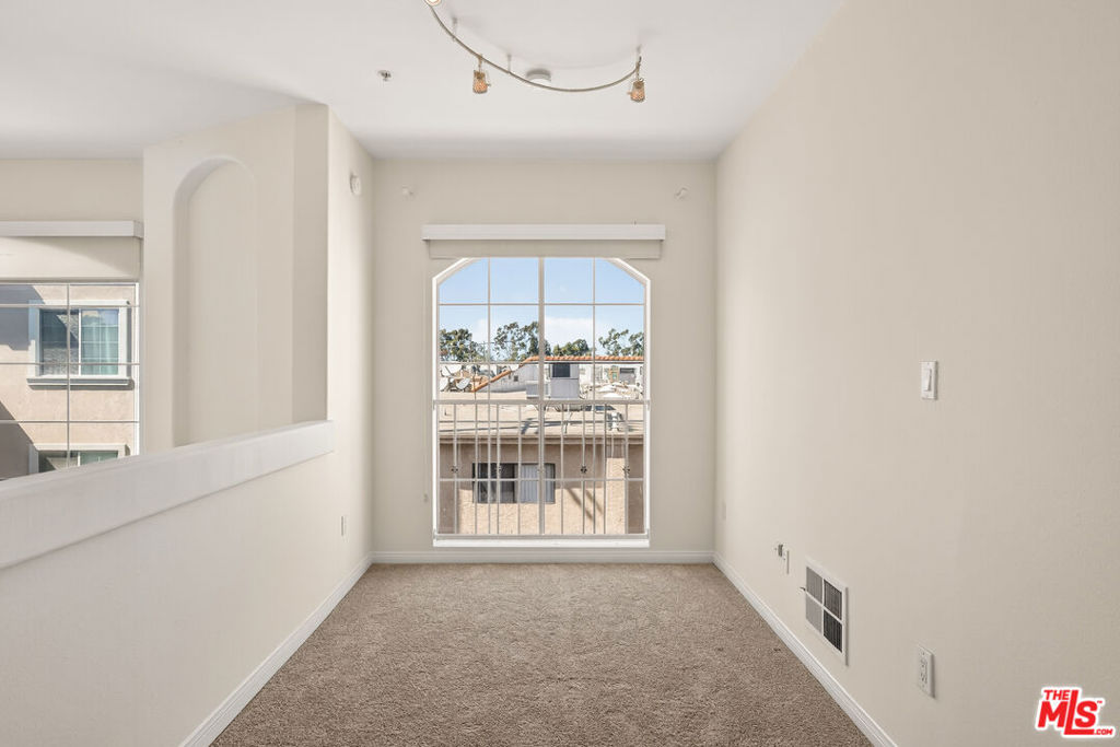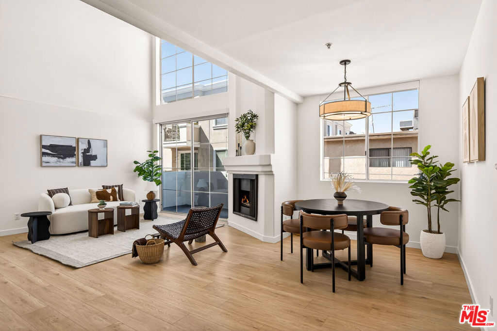 Soak up the sun in this light drenched, penthouse corner unit with 2 story ceilings. This 2 bedroom, 2 bath home has an additional upstairs loft perfect for a home office or creative space. As you step inside you are greeted with an open and airy living room featuring a cozy fireplace and a private balcony. Enjoy skyline views through the abundant windows that stretch from floor to ceiling. At the heart of the home, the efficiently designed kitchen is equipped with stainless steel appliances. The separate private quarters include a primary bedroom with double closets and ensuite bathroom, a second bedroom, an adjacent second full bathroom, and a laundry closet. Upstairs, the loft is complemented by a spacious walk-in closet, offering generous storage and added convenience. The loft offers flexible living space and could be used as a den, home office, bonus room, or possibly an additional third bedroom depending on the buyer's needs. This unit is nestled in the desirable upper rear corner location, away from the street. Secure, gated parking garage with two assigned parking spaces. Conveniently located near the SoFi stadium, Intuit Dome, the 405 freeway and tons of dining, shopping and entertainment options. Easily accessible to other great neighborhoods like the beach cities, Playa Vista, Culver City and Mar Vista.