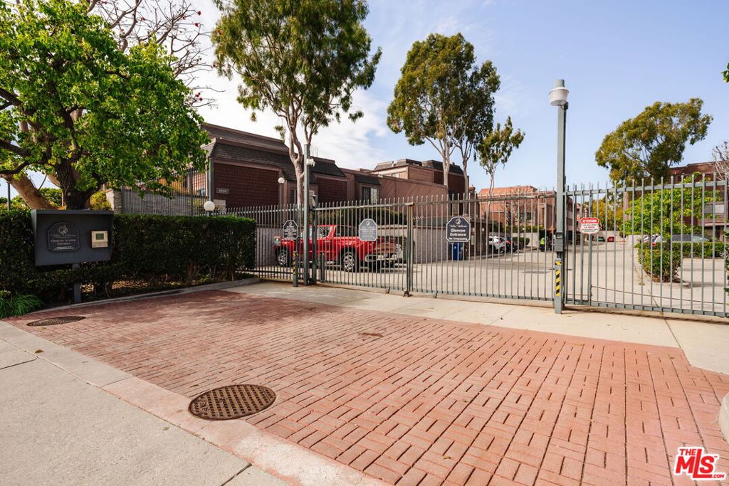 Tucked inside a privately gated community in the heart of Silicon Beach, this refreshed residence offers a spacious open floor plan with the perfect blend of space, privacy, and location. Upon entering, a welcoming entryway greets you with built-in bookshelves and a coat closet. In the open living area, you'll find soaring ceilings, hardwood floors, a fireplace, updated powder room, and large sliding doors opening to your own private patio, ideal for outdoor dining or relaxing in complete privacy. Make your way to the formal dining area complete with built-ins, a wet bar, all in convenient proximity to the spacious chef's kitchen which features a center island, stainless steel appliances and beautiful cabinetry. An ideal layout upstairs includes both en-suite bedrooms on opposite ends for maximum privacy. The owner's suite is generously sized with plenty of natural light, ample closet space, and a remodeled en-suite bath featuring a soaking tub, double vanity, walk-in shower and built in cabinetry. On the other end, the second bedroom is equally well appointed with its own remodeled en-suite bath, spacious closet, and the perfect guest suite, home office, or both. There is central AC and heat throughout. In-unit washer and dryer and private two-car garage with storage and direct entry complete the main level. The community offers resort-level living with secured gated entry, four pools, four spas, two racquetball courts, and plenty of guest parking. Beautifully landscaped grounds and well-maintained common areas throughout. A short distance to Marina del Rey's best restaurants, shopping and movie theaters. Silicon Beach living at its finest.