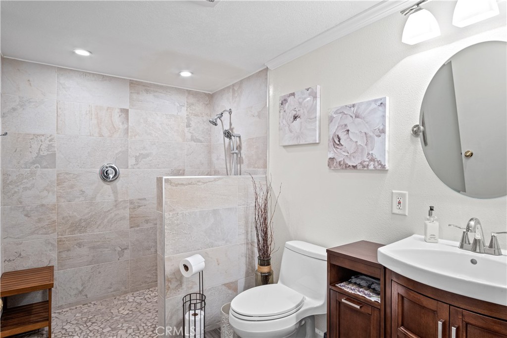 Welcome Home to Your SPACIOUS and Sunlit Oasis! Exceptional CAPE COD offers a blend of spaciousness, natural light, and a sense of community that you'll fall in love with. As you step inside, you'll be greeted by an abundance of sunlight. 2,753 sqft feels palatial while the clever design choices ensure that every corner of this home creates an inviting and warm atmosphere. SECURE GATED COMMUNITY: Your new home is nestled within a gated community that not only exudes the tranquility of a park but also provides a secure and safe environment for you. Plus a tennis court, pool and spa to play or relax. FRIENDLY NEIGHBORS: The sense of community is palpable here, with wonderful neighbors who embrace a friendly and welcoming atmosphere, making you feel right at home. AMPLE STORAGE: No shortage of storage space. There's a place for everything from walk-in closets to a separate storage room plus 2 cars in the garage with direct access to your home. VERSATILE GROUND LEVEL ROOM: The downstairs area offers an enormous sized room that's perfect for a Guest Room, a Den, an Office, AND a Playroom. Plus, a convenient walk-in closet adds extra functionality. Furthermore, a bathroom featuring a WALK-IN SHOWER, situated just across the hall, was added in 2019. PRIVATE PATIO PARADISE: Enjoy your own private patio, perfect for gardening, outdoor dining, or soaking in the sun. EXPANSIVE KITCHEN is a chef's dream, boasting ample counter space and cabinets to prepare meals. There's a cozy den area within the kitchen plus a large dining room that can host 20+ for sit down meals. LUXURIOUS PRIMARY BEDROOM: Upstairs, the large primary bedroom awaits. It includes an ensuite bathroom with a soaker tub, a separate shower stall, dual sinks and a make up vanity. An enormous walk-in closet ensures your wardrobe has a stylish home. IDEAL LOCATION: This end unit is a true gem, with only one common wall and a central location within a small complex of 25 townhomes. You're situated away from the main street, providing peace and privacy. CONVENIENT TARZANA: Your new home's location is highly convenient, with easy access to the freeway, making your commute easier. There is a newly renovated hospital nearby, many dining options and close proximity to cultural buildings. DON'T MISS THE OPPORTUNITY TO MAKE THIS EXCEPTIONAL PROPERTY YOUR OWN. Experience the perfect blend of space, light, security, and community in the heart of Tarzana. This home is waiting for you to create cherished memories.