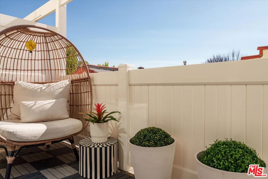Effortlessly blending modern refinement with everyday comfort, this beautifully updated Burbank residence offers a sophisticated take on condo living in one of the city's most desirable neighborhoods. Thoughtfully reimagined, the home showcases a series of tasteful upgrades designed to elevate both form and function. A light-filled interior unfolds with newly installed flooring and contemporary lighting that together create a clean, airy aesthetic throughout. The open-concept living and dining areas are anchored by a wall of Billy bookcases, both a design feature and practical touch. Sliding doors lead to a private patio, ideal for morning coffee or relaxed evening gatherings. The well-appointed kitchen is enhanced by a newly added smart refrigerator, seamlessly integrating modern convenience into the home's polished design. Both bedrooms are generously proportioned, each featuring vaulted ceilings and en suite bathrooms that offer a heightened sense of privacy and scale. The primary suite captures rare, panoramic westerly views of the valley and features a beautifully appointed bath with elevated finishes and substantial closets. A dedicated laundry area and linen closet complete the upper level. Additional highlights include two side-by-side covered parking spaces and additional storage. Discreetly situated in a boutique community of only 8 residences, these townhome style condos offer individual direct access to each unit, lending a sense of ease and privacy. On a gentle sloping street with immense pride of ownership, drive home with views of Angeles Crest mountains and blooming trees along the street. Situated near local favorites such as Porto's Bakery, Coffee Commissary, Valerie Confections, and the vibrant shops and dining along Magnolia Park, this residence offers a rare opportunity to enjoy turnkey living in the heart of Burbank.