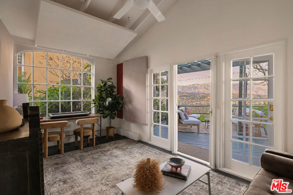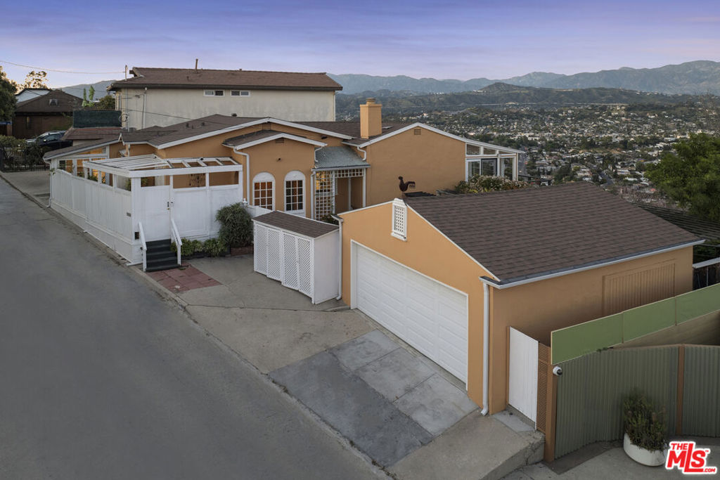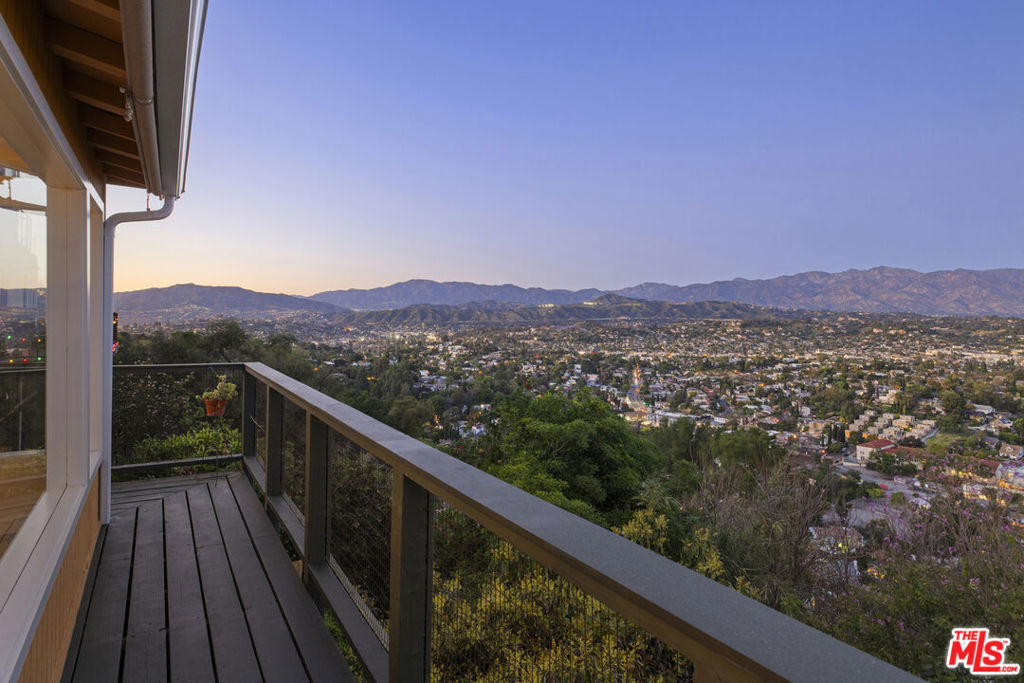 Explosive 180 degree views and magical gardens - a rare creative compound in the hills of Mount Washington. Set on a lush 7,485 sq ft hillside lot overlooking the San Gabriel Valley and surrounding mountains, this private retreat offers a rare blend of nature, character, and flexible living spaces just minutes from the best of Northeast Los Angeles. The grounds unfold like a hidden park, with fruit trees, flowering gardens, winding pathways, and a serene Japanese tea house tucked among the landscape. Two mature avocado trees produce hundreds of delicious fruit each year, alongside grapefruit, pomelo, fig, and other trees that create shaded spaces to relax and explore. The remodeled, light-filled main house blends vintage character with thoughtful modern updates and an open layout designed for effortless indoor-outdoor living. Sunlight fills the interiors throughout the day, highlighting wood floors, a spacious living room with fireplace, a sunroom with oversized windows, and a modern chef's kitchen that complements the home's original charm. Outdoor living spaces including a generous view deck are positioned to capture sweeping mountain, valley, and city vistas. The primary bedroom features a walk-in closet and private patio with peaceful views. Down a separate set of steps, a bedroom and bathroom with adjoining patio offer flexible space for guests, creative work, a home office, or multi-generational living. Adding to the property's unique appeal, a dedicated recording and artist studio with lounge area and half bath provides a rare and highly functional creative work space ideal for musicians, podcasters, voice artists, or anyone seeking a secluded place to create. Located within the highly regarded Mount Washington Elementary School and Washington Irving Middle Math / Music / Engineering Magnet School district, close to Highland Park, Eagle Rock, Silver Lake, and DTLA, the home offers easy access to cafes, dining, parks, and hiking trails. Long known as a quietly iconic hillside enclave, Mount Washington continues to attract artists, musicians, and other creatives drawn to its nature, views, and architectural individuality.