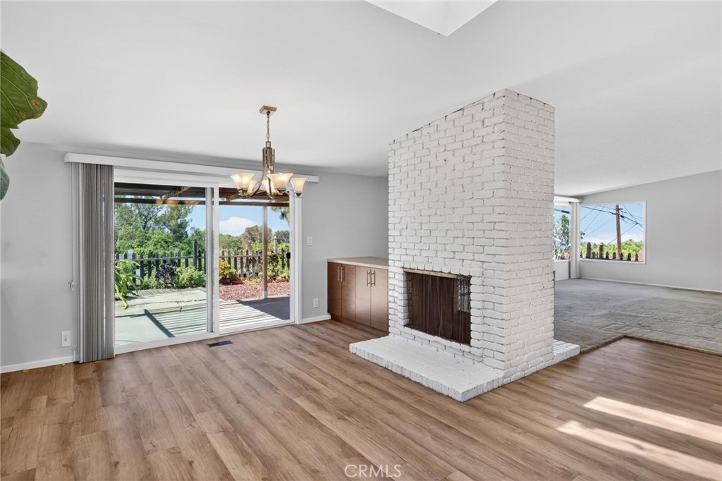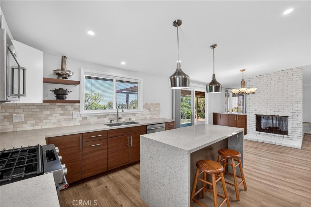 The expansive living and family areas feature an open layout, highlighted by a dual-sided fireplace that creates a natural flow between spaces. Large glass doors and windows invite natural light and frame the backyard and coastal views, blending indoor comfort with outdoor serenity.