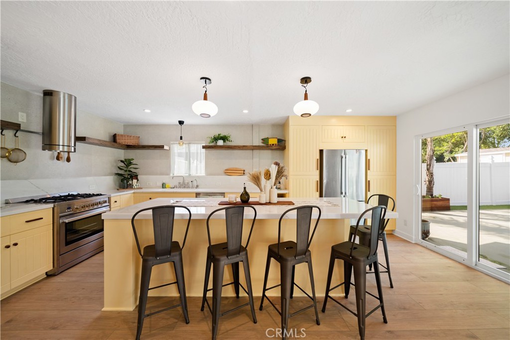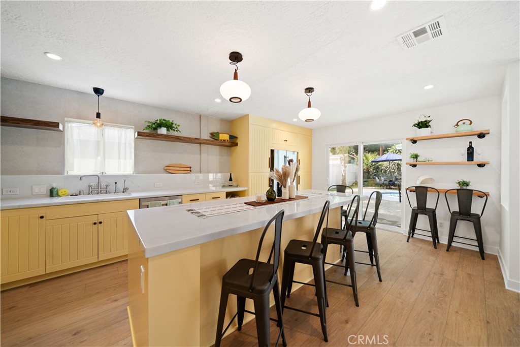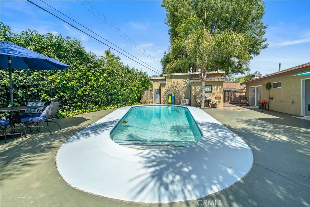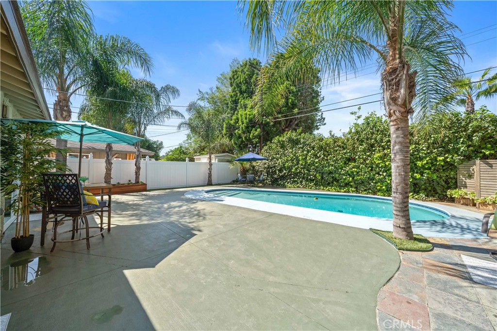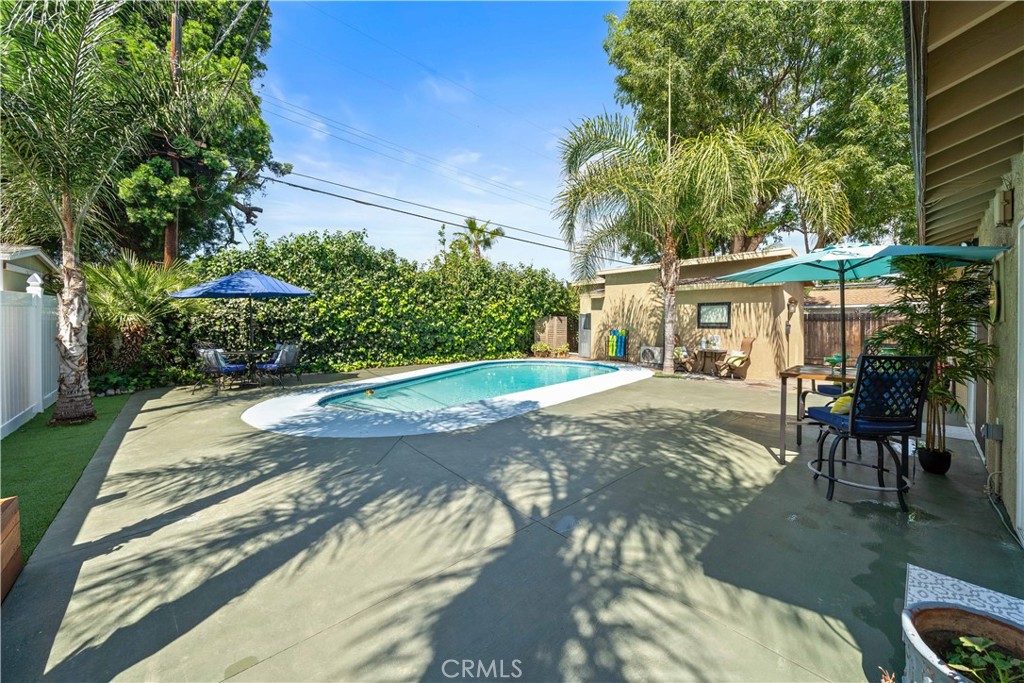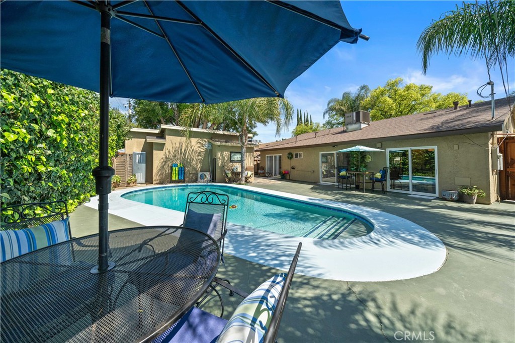 Welcome to a truly one-of-a-kind property offering three separate living spaces thoughtfully designed to blend comfort, flexibility, and effortless indoor-outdoor living. This exceptional compound creates the perfect environment for multi-generational living, rental income, creative workspace, or simply enjoying your own private retreat. Surrounded by smart landscaping and swaying palm trees, the property invites you to relax and unwind in a serene, resort-like setting. Whether hosting weekend BBQs by the sparkling pool or enjoying quiet evenings under the stars, this home delivers a lifestyle of tranquility while remaining conveniently close to everything. The owners have implemented water-saving and eco-conscious upgrades, along with updated major systems and energy-efficient, low-maintenance features throughout. The main residence has been beautifully remodeled with exceptional taste. The expansive open-concept kitchen is an entertainer’s dream, featuring a large center island with seating for six, stainless steel appliances, marble countertops, floating shelves, and abundant cabinetry. A discreetly tucked-away stackable washer and dryer adds everyday convenience. Throughout the home, you’ll find beautiful newer flooring, tastefully updated bathrooms, built-in closet systems, and a newer roof (approx. 1 year old). The elegant primary suite offers generous closet space and a private, updated bath. The detached ADU (approx. 400 sq ft) is a standout feature with beautiful modern style, complete with its own electrical panel, full kitchen, loft storage, stylish bathroom, and in-unit washer and dryer, ideal for guests, rental income, or extended family. The separate studio (approx. 200 sq ft) offers incredible versatility with its own bathroom, kitchenette/bar area. Perfect as a home office, gym, creative space, guest quarters, meditation room, music studio or poolside retreat. The main house (approx. 1,656 sq ft per assessor) features 3 spacious bedrooms, 2 bathrooms, and a bright, flowing floor plan designed for both comfort and inspiration. Additional highlights include new pergola decking, planter boxes, and thoughtfully designed outdoor spaces that enhance both beauty and functionality throughout the property. This is more than a home, t’s a lifestyle compound offering privacy, flexibility, and endless possibilities. Allow me to introduce you to this exceptional property.