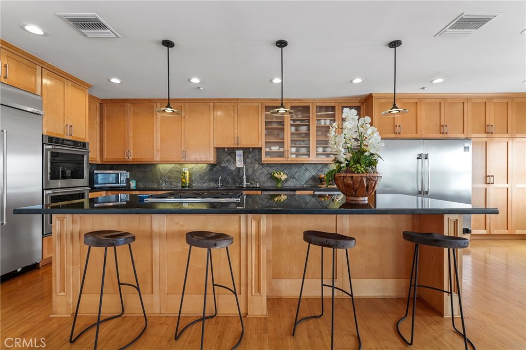 AMAZING OPPORTUNITY TO OWN ONE OF MANHATTAN BEACH'S LARGEST TOWNHOUSES! 2,853 sf 4 bedroom 3.5 bathroom corner property with sunset and ocean views. With an easy walk to the beach, top rated Grandview Elementary School, Live Oak Park, famous Sand Dune Park, Dorsey Baseball Field and downtown Manhattan Beach enjoy one of the best locations in the coveted Manhattan Beach sand section! The north facing front entry features a beautifully landscaped lawn area drenched in sunlight and view of the ocean. The wide open living area is highlighted by natural light creating an energetic mood and features a dream chefs kitchen with a large center island, double oven, 2 dishwashers, 2 refrigerators, a 6 burner cooktop and west facing balcony perfect for entertaining. The second floor features 3 bedrooms and 2 bathrooms including the west view facing primary suite with a luxurious master bathroom featuring dual vanities and spa tub. The entry level features the 2 car garage (plus one covered driveway parking spot) and a one bedroom suite with it’s own bonus/living room with kitchenette which could be used as separate living quarters or rental. Additional features include and 10' EXTRA WIDE lot, 3 zoned air-conditioning, bamboo wood floors, a third-floor powder bathroom, a landscaped front yard facing 23rd street and located less than a mile to downtown Manhattan Beach AND the restaurants in “north downtown”. The views, fantastic corner location and walking to desirable points of interest make this a highly coveted property, A MUST SEE.