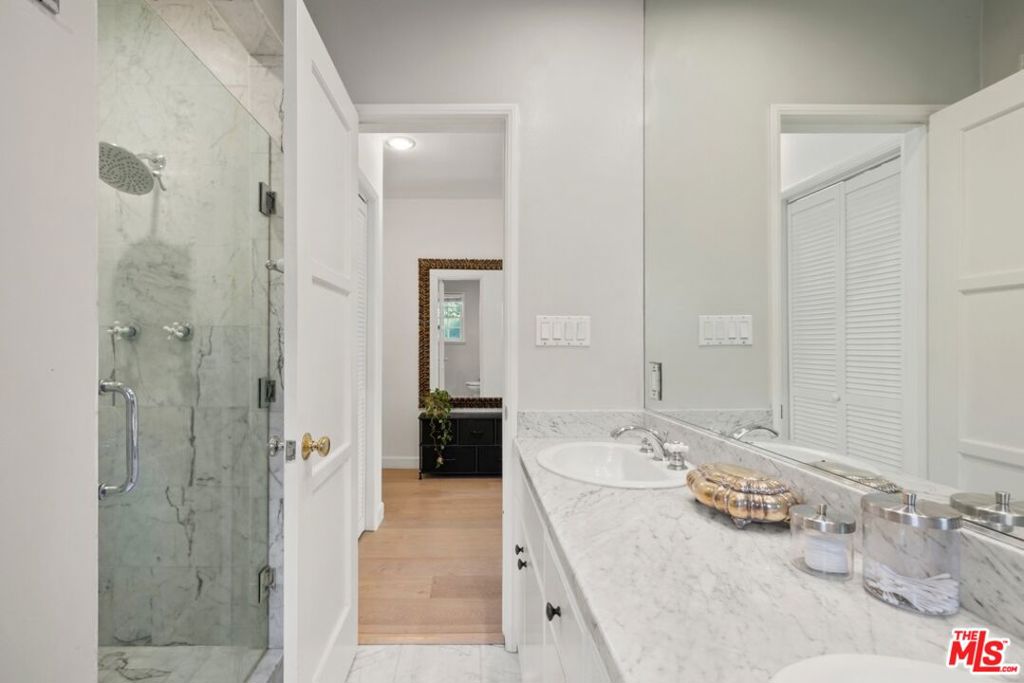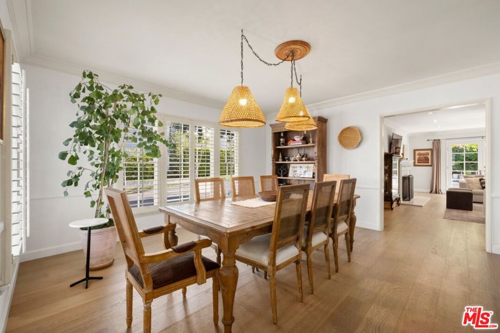 Situated on a picturesque corner lot in prime Cheviot Hills, this beautifully updated single-story residence offers three bedrooms and three bathrooms, blending timeless traditional charm with refined, stylish interiors. A welcoming foyer opens to a spacious, sun-filled living room featuring crown molding, recessed lighting, French doors, newer White Oak hardwood floors, and an elegant fireplace. Just beyond, the formal dining room provides an warm and inviting space for entertaining dinner guests and flows seamlessly into the gourmet kitchen, complete with marble countertops, a subway tile backsplash, stainless steel appliances, custom cabinetry with designer hardware, and a cozy breakfast nook. The inviting family room, centered around a second fireplace, provides a warm and comfortable space to unwind. The primary suite is a true retreat, showcasing generous closet space, hardwood floors, custom shutters, and en-suite bathroom with dual vanities, stone countertops, and stone tile shower. French doors open to a private, fully hedged backyard with low-maintenance turf and a spacious brick patio, ideal for seamless indoor-outdoor living and entertaining. Additional highlights include two well-appointed guest bedrooms, two additional bathrooms, a dedicated laundry room, a two-car garage, and an oversized driveway. Ideally located in the highly sought-after heart of Cheviot Hills, this exceptional residence is just moments from Fox Studios, the Griffin Club, and the premier shopping, dining, and entertainment of Westfield Century City.