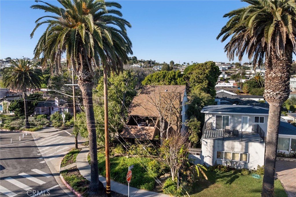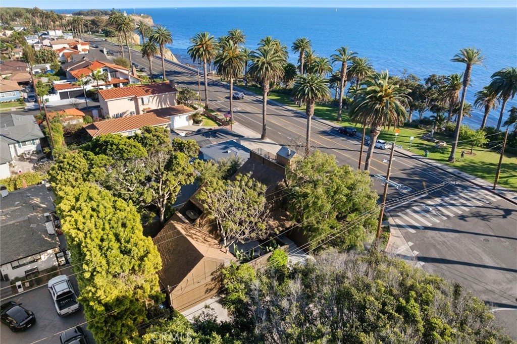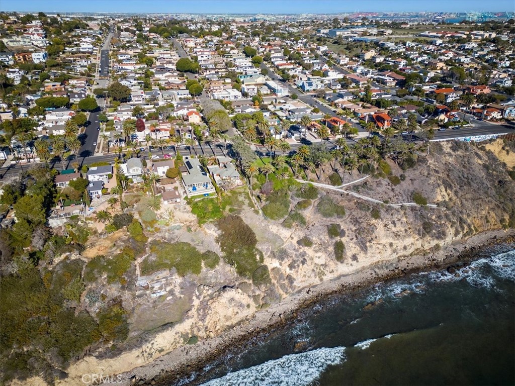Slow down, you move too fast… You got to make the morning last! You’ll be “feeling groovy” in this hip and modern 1970’s vintage seaside retreat! Sitting stately on the corner of Barbara and Paseo Del Mar, in a location that can’t be beat, this “really cool” home is ready for its new owner! Wide stairs lead to a grand double door entry. As you step inside, the soaring ceilings will draw your eyes upstairs where you’ll find floor-to-ceiling windows showcasing the amazing, unobstructed ocean view! Beautiful, vaulted wood ceilings create a warm, rustic feel. Cozy up to the wood clad fireplace, grab a coffee and a book and settle in! A large veranda off the living room offers an amazing ocean view, and an opportunity to chat with your neighbors or watch the peacocks stroll by. The kitchen and dining room are just off the living room, and open to a large patio/deck, perfect for al fresco dining! Vaulted ceilings and clerestory windows keep the space light and bright! It’s no issue to get your groceries upstairs–there’s a dumbwaiter to carry them up for you! A power room completes the upper level. Downstairs, a spacious primary suite is bathed in natural light. Imagine lifting your head off the pillow, peeking through mature trees and seeing the ocean right in front of you! A spacious en-suite bathroom features a double vanity and tub/shower combo. Storage is not an issue with a very generous walk-in closet and a wall closet as well! A second bedroom faces the lush green and private yard area shaded by mature trees and offering several seating/patio areas for you to entertain and lots of room for recreation and play! If you’re working at home, a dedicated den/home office space also overlooks a private courtyard off the home’s front entry. A second full bath is also on this floor where the laundry is also neatly tucked away. There is an oversized 2-car garage with workbench space, as well an an additional storage shed. This one-of-a-kind home offers 1840 square feet of living space on a spacious 5700 square foot lot. Head up the block to The Corner Store or stroll along the ocean to Point Fermin Park. You’re also just a short jaunt to the Korean Friendship Bell and the White Point Nature Preserve. If you love to be outdoors, you won’t find a better spot than this! Be a part of the renaissance of San Pedro with its upcoming West Harbor development with new restaurants, shops and more, but where you can still relish the quaintness of our little seaside town!