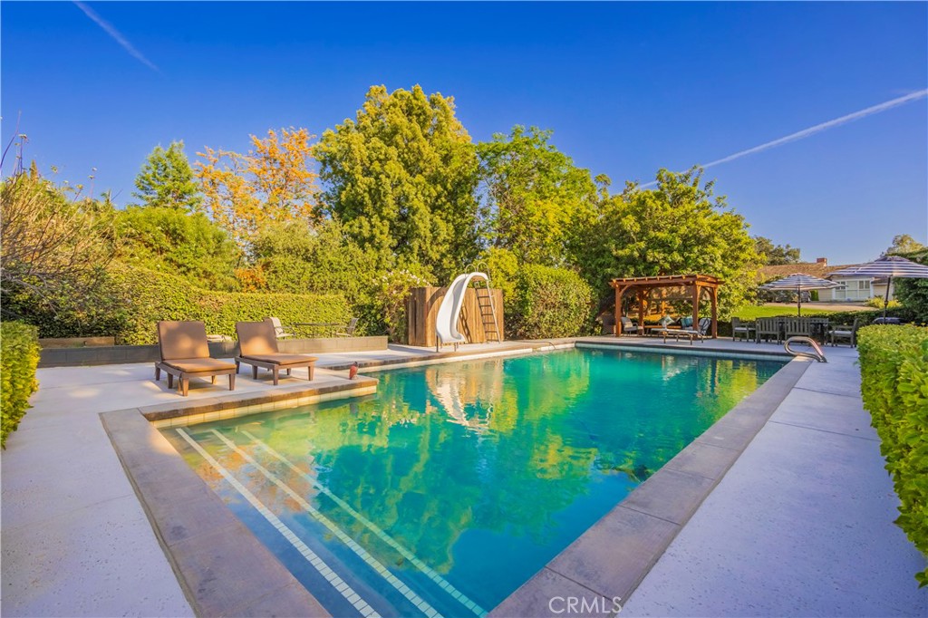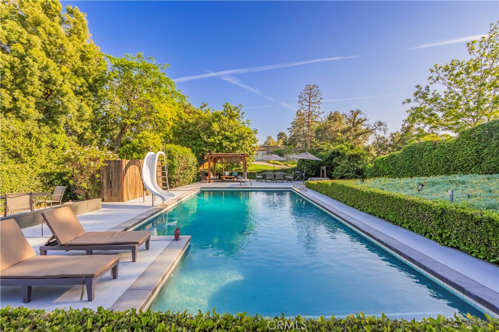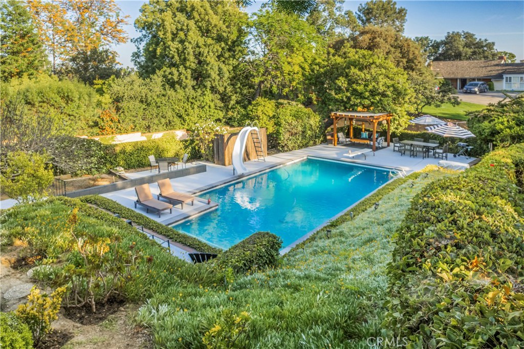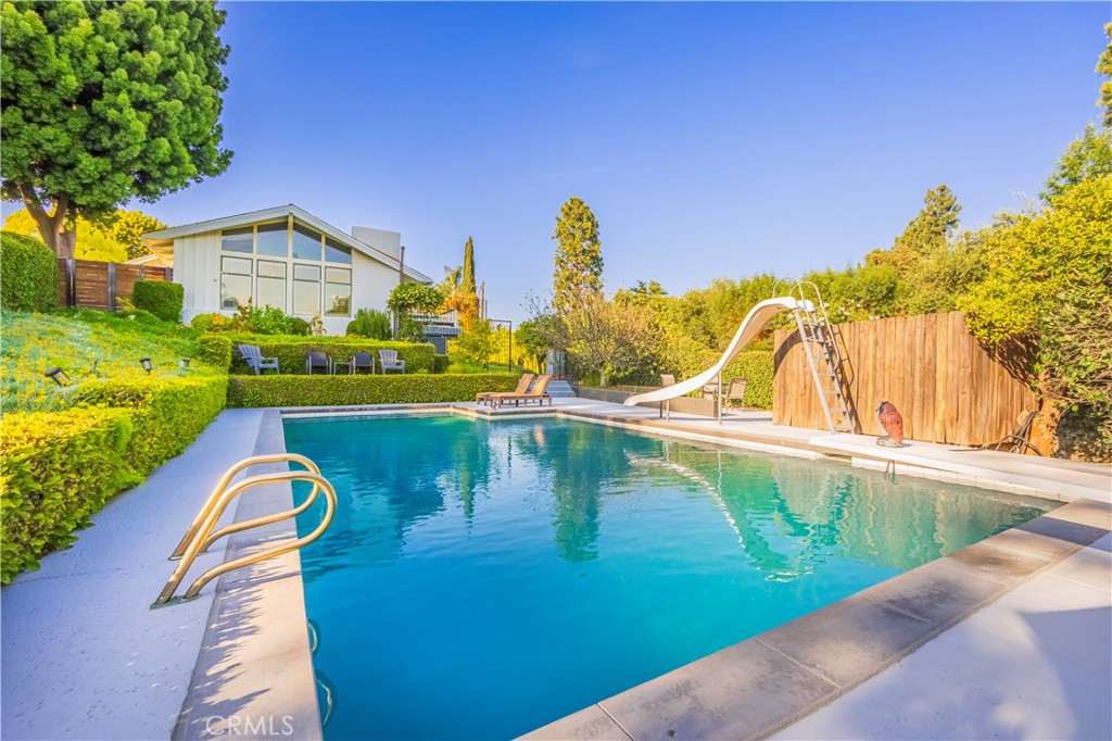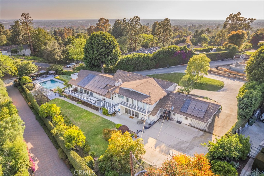 Located in the highly sought-after Friendly Hills neighborhood of Whittier, 8408 La Sierra Avenue is a custom-built residence where luxury and comfort come together. From the moment you enter, a serene, resort-like atmosphere welcomes you. The thoughtfully designed tri-level layout offers an ideal balance of everyday living and effortless entertaining, blending elegance with functionality. The formal living and dining rooms feature soaring wood-beamed ceilings that create a sense of grandeur and warmth. A beautiful stone fireplace and custom built-in bookshelves add character, while expansive windows frame picturesque views of the landscaped grounds and Stunning salt water sparkling pool and patio area—perfect for unforgettable outdoor gatherings.At the heart of the home, the chef-inspired kitchen showcases a large chopping-block island, modern appliances, new cabinetry, and sleek concrete countertops. High ceilings and abundant natural light enhance the open, airy feel, while views of the lush lawn and fruit trees bring the beauty of the outdoors into every culinary experience. The inviting family room, complete with a second fireplace, offers a comfortable space for relaxation and connection. French doors open seamlessly to the backyard oasis, creating a natural extension of indoor and outdoor living. The home features four spacious bedrooms and four bathrooms—some thoughtfully updated with contemporary finishes—along with a convenient oversized indoor laundry room. A versatile bonus room, previously the garage, offers endless possibilities either Guest quarters, home office, dance studio, gym, or potential ADU conversion.The expansive backyard serves as a private retreat, surrounded by flourishing greenery and mature fruit trees. The salt water pool, complete with a slide and diving board, promises endless summer enjoyment, while multiple patio and balcony areas provide ideal spaces for dining, entertaining, and relaxing. Additional highlights include solar panels designed to enhance energy efficiency,Parking is abundant with a semi-circular driveway in the front of the home and extensive gated parking in the rear, offering ample space for multiple vehicles. The property also features a **dedicated electric vehicle (EV) charging outlet. 8408 La Sierra Avenue presents a rare opportunity to experience the quintessential Southern California lifestyle in one of Whittier’s most desirable neighborhoods.**