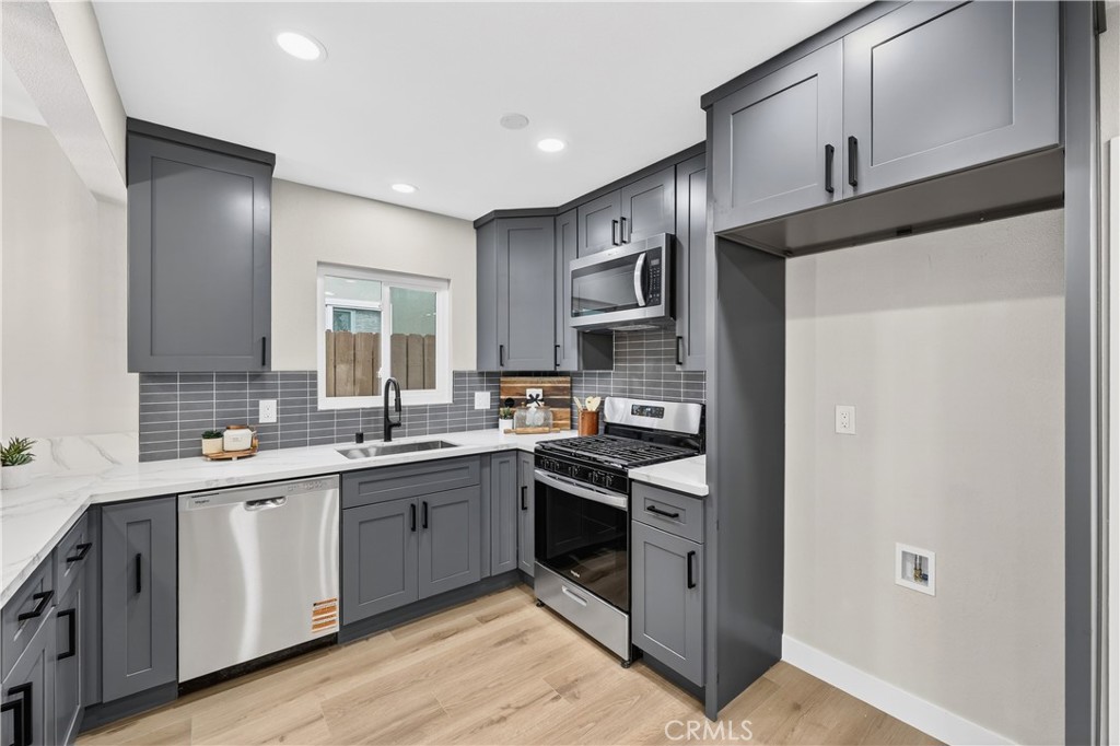 WELCOME TO YOUR DREAM HOME. COMPLETELY REMODELED 2-BEDROOM 1-BATH HOME IN THE BEAUTIFUL CITY OF HAWAIIAN GARDENS. THE HOME FEATURES NEW WATERPROOF FLOORING, RECESS LIGHTS, AND NEW PAINT INSIDE/OUTSIDE. THE KITCHEN HAS NEW CABINETS, QUARTZ COUNTER TOPS, AND NEW STAINLESS STEEL APPLIANCES. BATHROOM HAS BEEN COMPLETELY REMODELED WITH A NEW BATH TUB, TILES, AND VANITY. ALL NEW DUAL PANE WINDOWS. NEW DOORS AND NEW SPLIT AC IN EACH ROOM. ALL WORK DONE WITH CITY PERMITS.