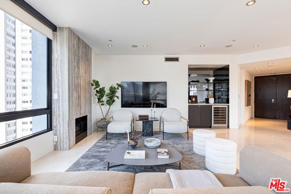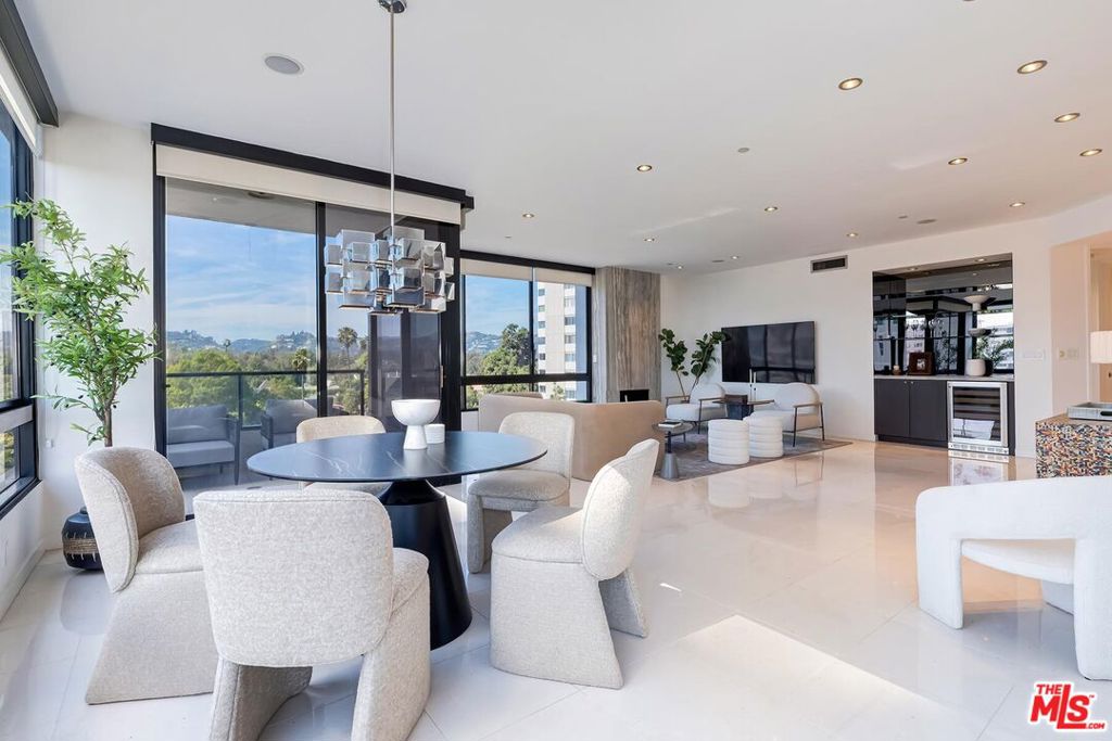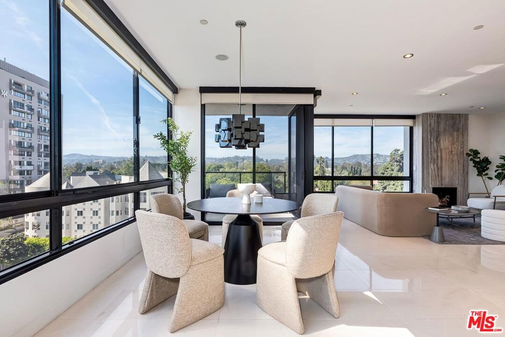 Positioned in the desirable northwest corner of The Diplomat, this elegant residence is framed by walls of glass that fill each room with natural light and capture sweeping views of the city skyline, ocean, and mountains with clear-day ocean views and mountain vistas from the north-facing windows.The layout includes a welcoming living area with a fireplace, a dining space, and a covered terrace ideal for relaxation and entertaining. The updated kitchen features quality appliances, excellent storage, and a convenient bar area with a wine cooler. Both bedrooms are spacious and feature hardwood floors. The primary suite includes a large walk-in closet and an updated bath. The second bedroom also includes an en-suite bath, offering comfort and privacy for guests or an ideal office setup.Additional highlights include marble floors in the main living areas, a powder room, and a dedicated laundry room with washer and dryer.The Diplomat is a prestigious full-service building on the Wilshire Corridor offering two parking spaces, 24-hour doorman and valet service, pool, spa, saunas, fitness center, and additional storage. A refined home combining comfort, privacy, and views in one of Los Angeles's most desirable high-rise communities.
