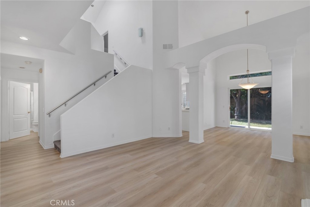 Set within a small privately maintained gated community in Granada Hills, this beautifully refreshed 4-bedroom, 3-bath home offers 2,352 sq ft of bright, airy living space with the feel of a stand-alone residence and the ease of a low-maintenance setting. A private front courtyard creates a welcoming space for landscaping or setting up a private spot for relaxing with morning coffee or a glass of wine in the evening. Inside, soaring vaulted ceilings, tall windows, plantation shutters, and an abundance of natural light give the home an open, uplifting feel from the moment you enter. The living room is both elegant and inviting, centered around a cozy fireplace and framed by a colonnade archway that defines the formal dining area, where a contemporary chandelier and sleek clerestory window add a stylish architectural touch. Fresh paint and new flooring throughout enhance the crisp, updated interior. The fresh, white kitchen feels especially cheerful and functional with recessed lighting, clean-lined cabinetry, white tile counters, breakfast bar seating, a walk-in pantry, and a sunny connection to the informal living area, creating a layout that works beautifully for both everyday life and casual entertaining. Sliding glass doors open to a sizable backyard with patio space, mature trees, and a grassy lawn, offering a private outdoor setting for dining, relaxing, or hosting friends. Upstairs, the impressive primary suite serves as a peaceful retreat with vaulted ceilings, an arched window, walk-in closet, and an en-suite bath with dual sinks, a soaking tub, and separate glass shower. Two additional secondary bedrooms are generously sized, and the fourth bedroom is currently arranged as an open loft overlooking the living area below, offering flexibility for a home office, den, or easy conversion to a true bedroom. With a dedicated laundry area, a convenient 3/4 bath on the main level, a full hall bath upstairs with dual sinks the home offers convenience and versatility to utilize to your preference. The excellent Granada Hills location close to shopping, dining, award winning schools, including Granada Hills Charter, and commuter routes make the location of the home unbeatable. This home blends warmth, light, and livability in a setting that feels both private and connected. Don’t miss out!