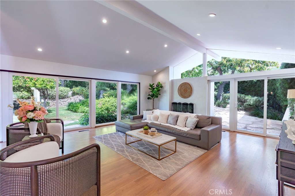 Tucked away on a serene cul-de-sac in Pasadena's coveted Eaton Canyon neighborhood, this beautifully renovated home sits on nearly half an acre of meticulously landscaped grounds — offering the rare combination of total privacy and effortless indoor-outdoor living.