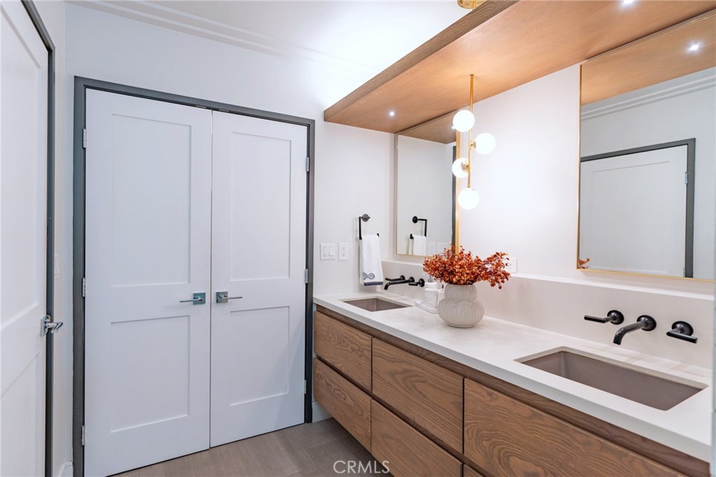 The home offers three bedrooms, three baths, and a sun-filled office that easily serves as a fourth bedroom. The primary suite features dual vanities, a generous walk-in shower, and direct pool access. A second bedroom enjoys its own dual-sink bath.