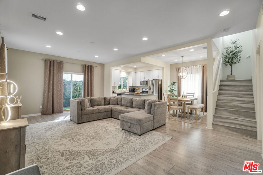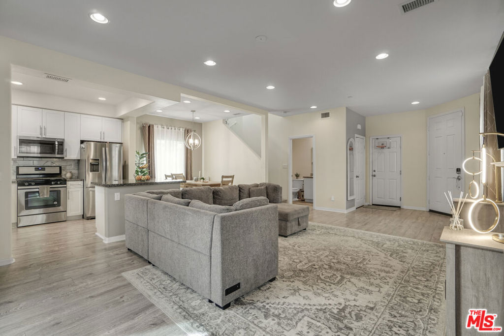 22755 Walnut Park Lane is located in one of Newhall's most desirable pockets, known for its newer construction and strong sense of community. Built in 2017 the home has been exceptionally well cared for over the years, with a level of upkeep that is evident throughout. The main level offers an open, comfortable layout, with the kitchen connecting directly to the dining area and living space. The kitchen is bright and updated, featuring white cabinetry, stone countertops, stainless steel appliances, lots of windows that bring in natural light. A full bathroom is also located on the main level, along with direct access to the attached garage. Upstairs, you'll find four bedrooms arranged with a good sense of separation, including a primary suite with its own bathroom and walk-in closet. Laundry room is also conveniently located on the upper level. Four-bedroom townhomes are rarely available in the area, making this a unique opportunity. The outdoor space is a standout feature, with a private yard that offers more room than typically found in this type of property. The community is well maintained and conveniently located near Old Town Newhall, local dining, shopping, and with access to the 5 and 14 freeways. Be the first one to check it out in person and make it your home!